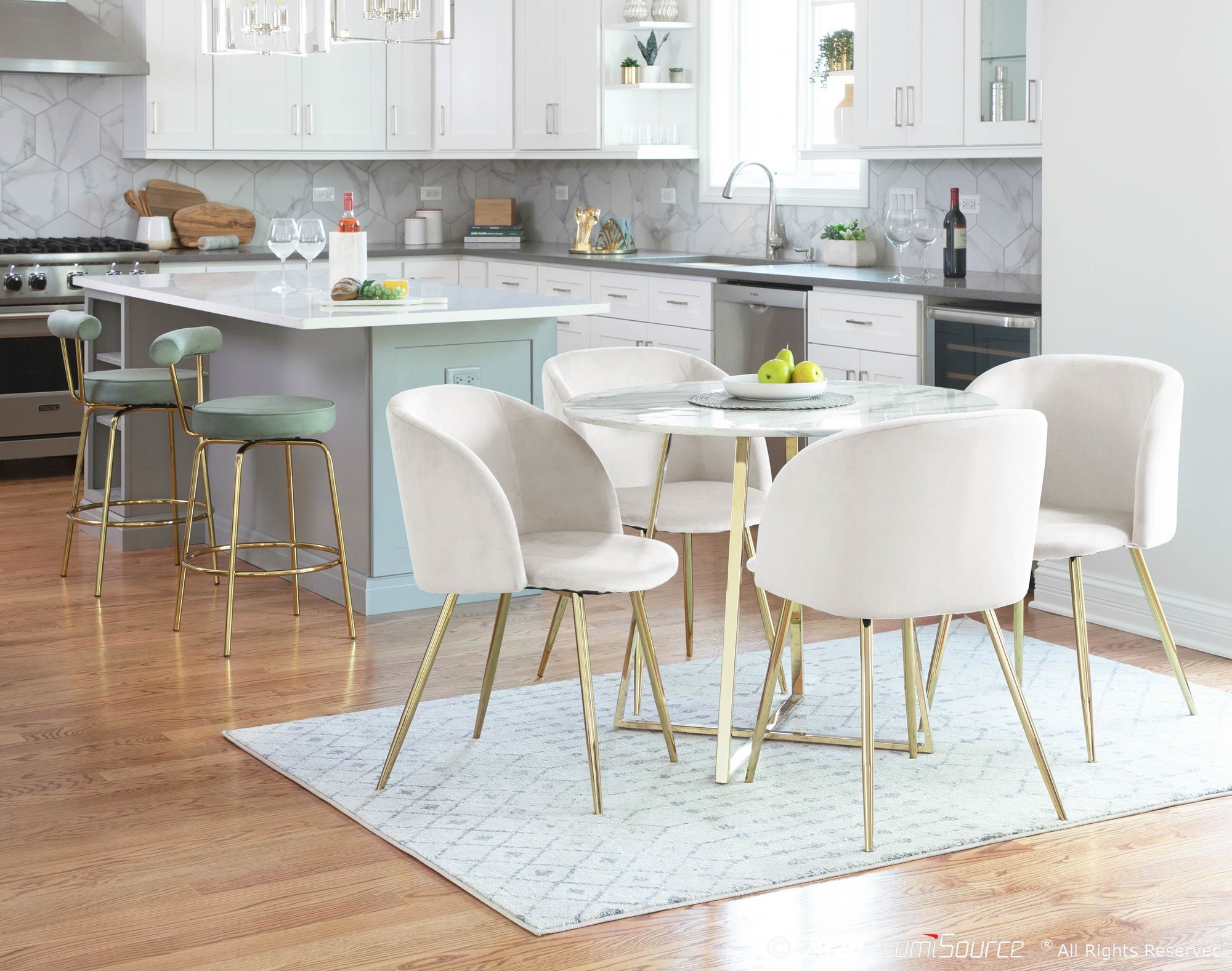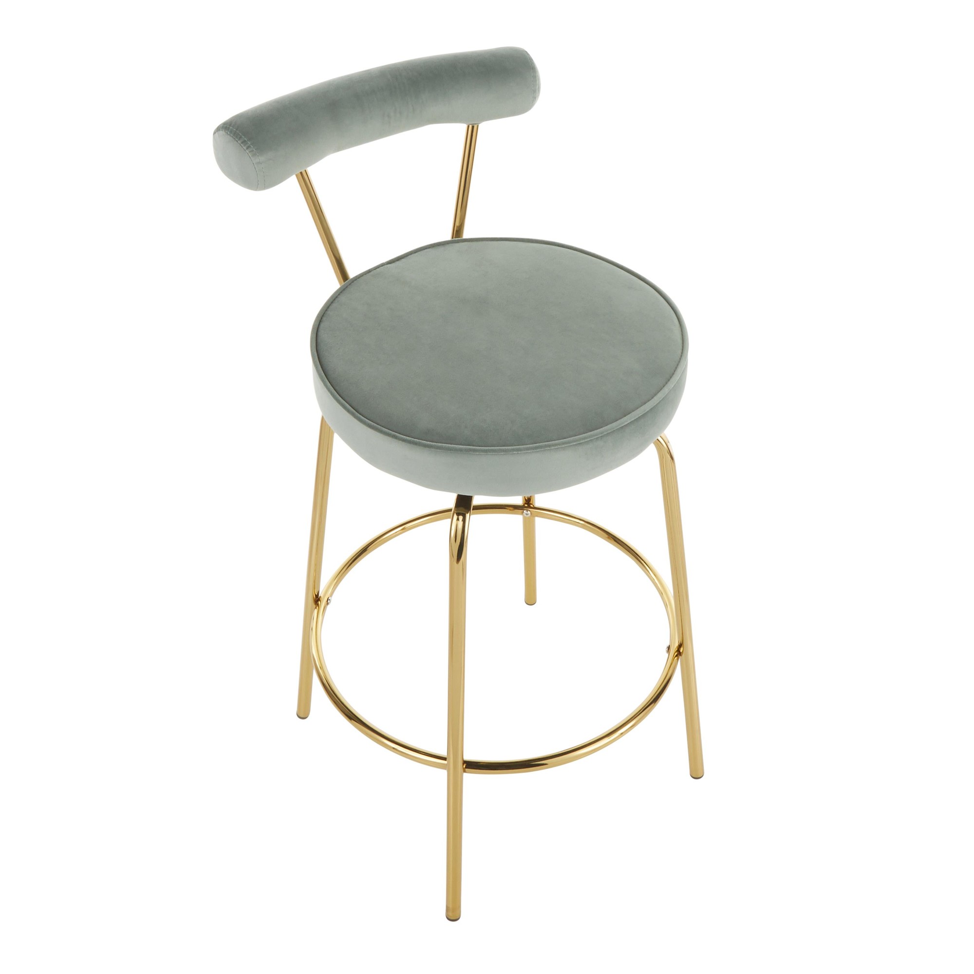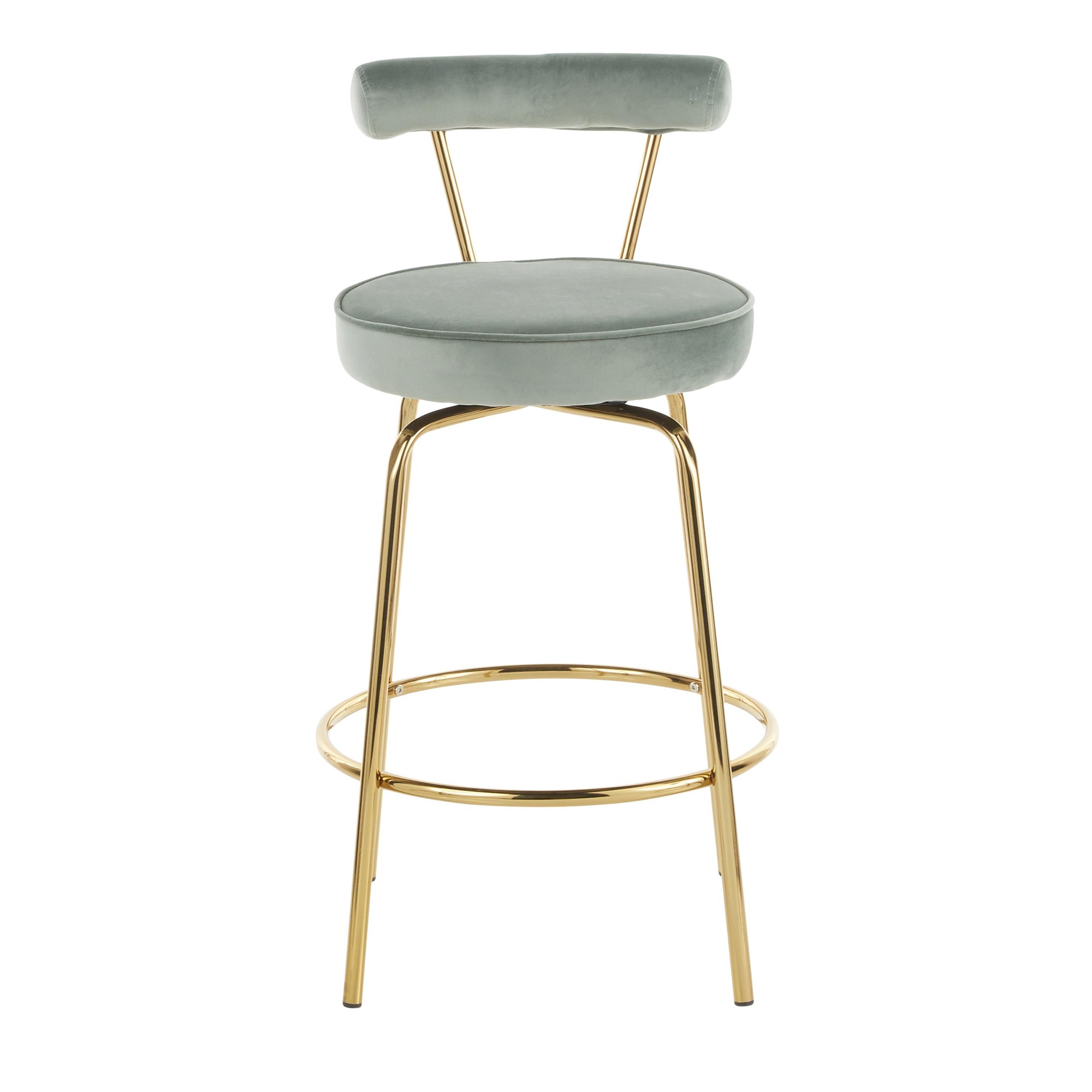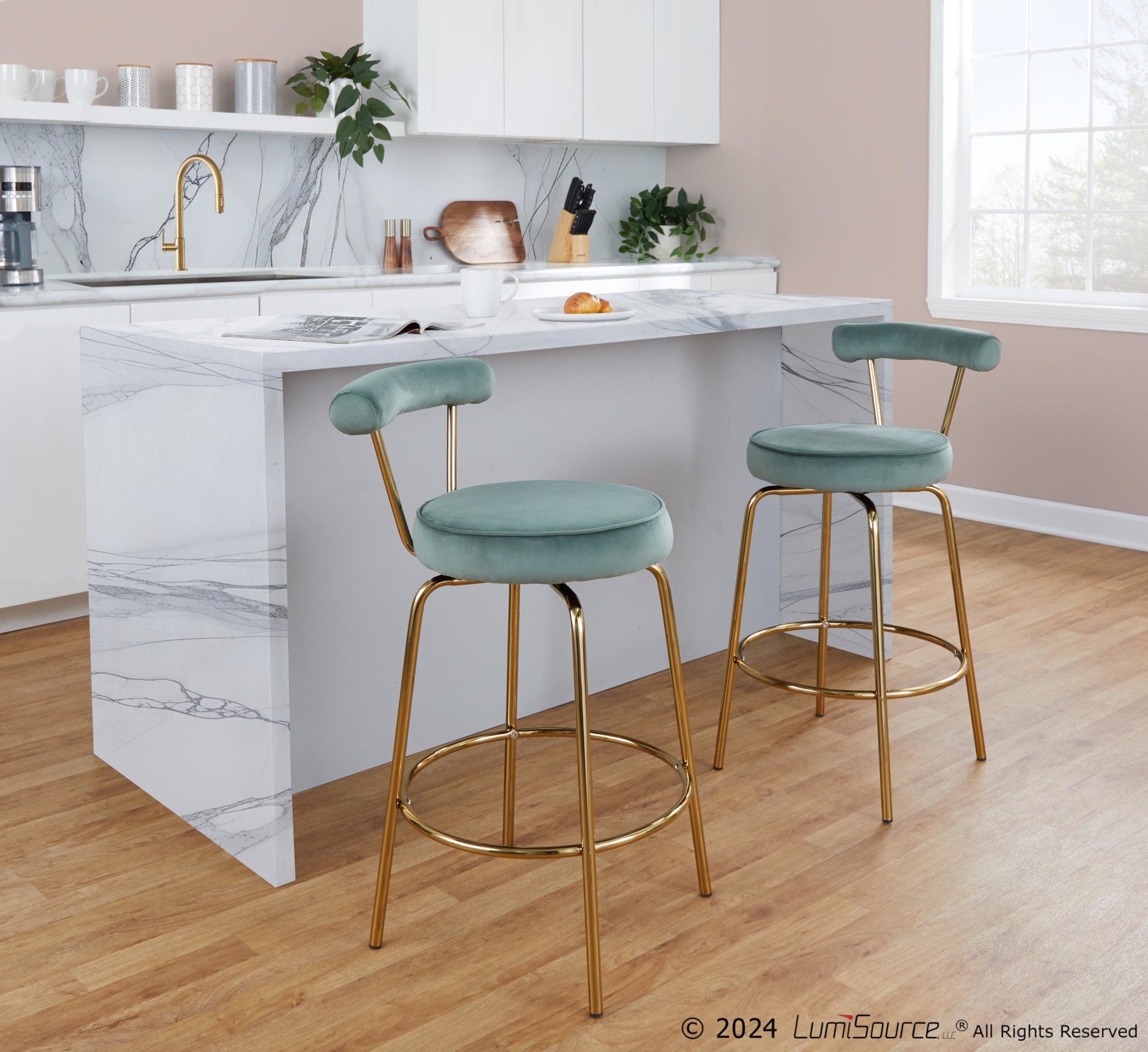 The Rhonda Gold and Green Art Deco Counter Stools bring an opulent and striking vibe to your space! These stools feature a sleek metal frame with tapered legs and a luxurious gold finish, complemented by plush velvet upholstery. Perfect for adding a touch of glam to your dining or counter area.