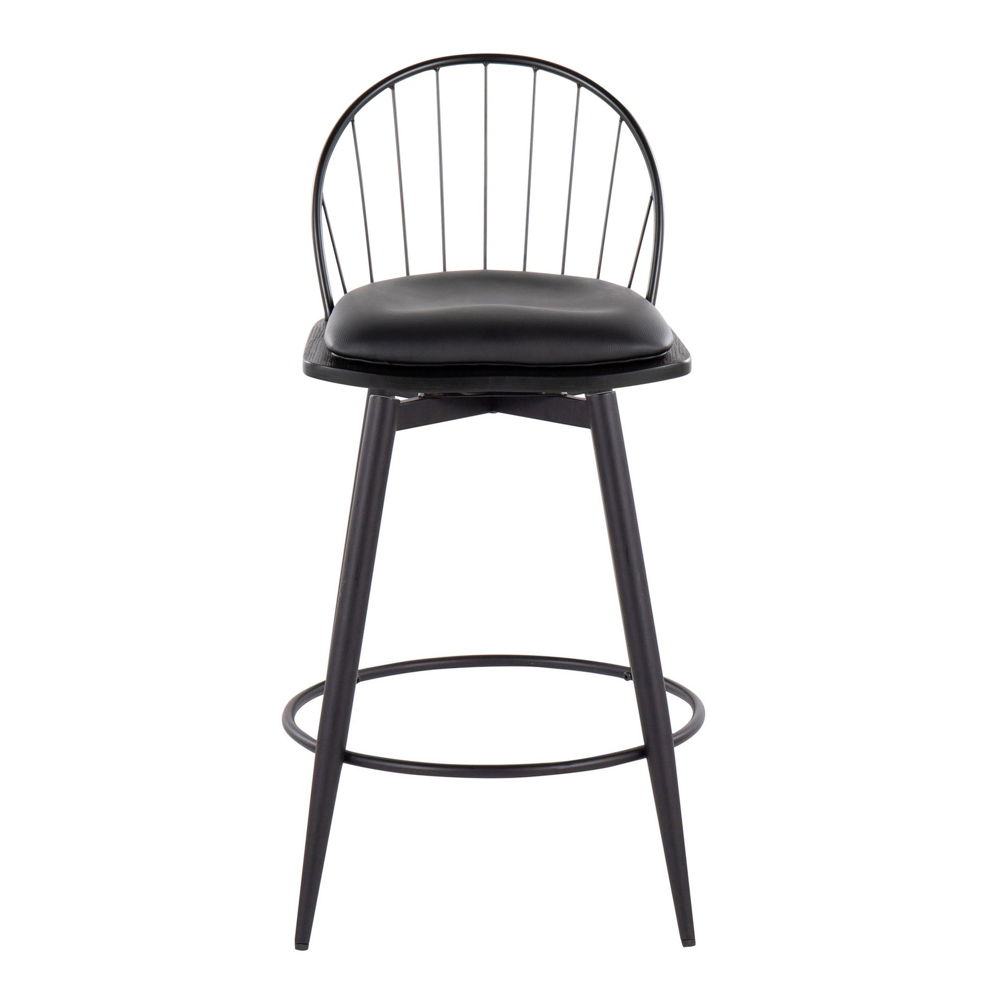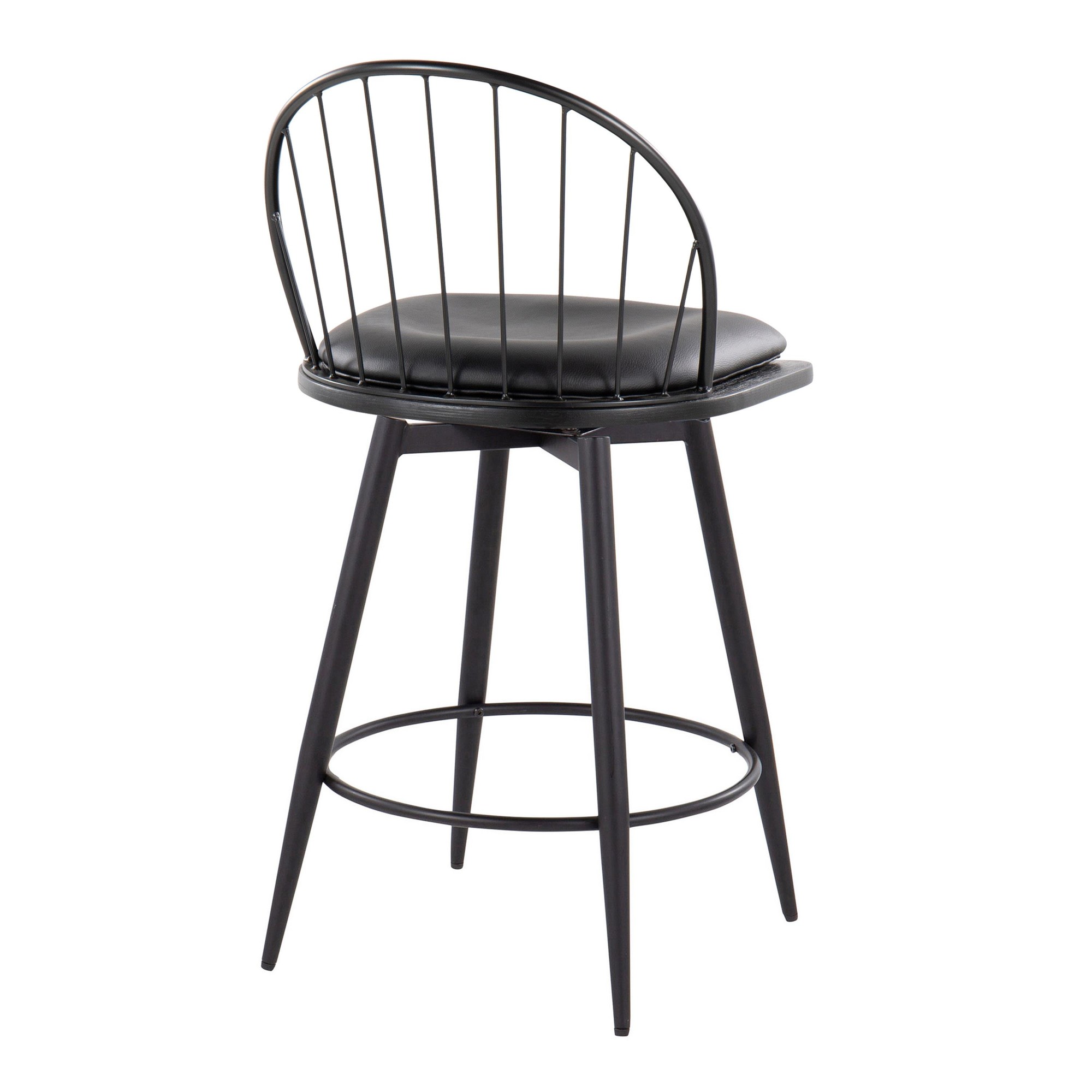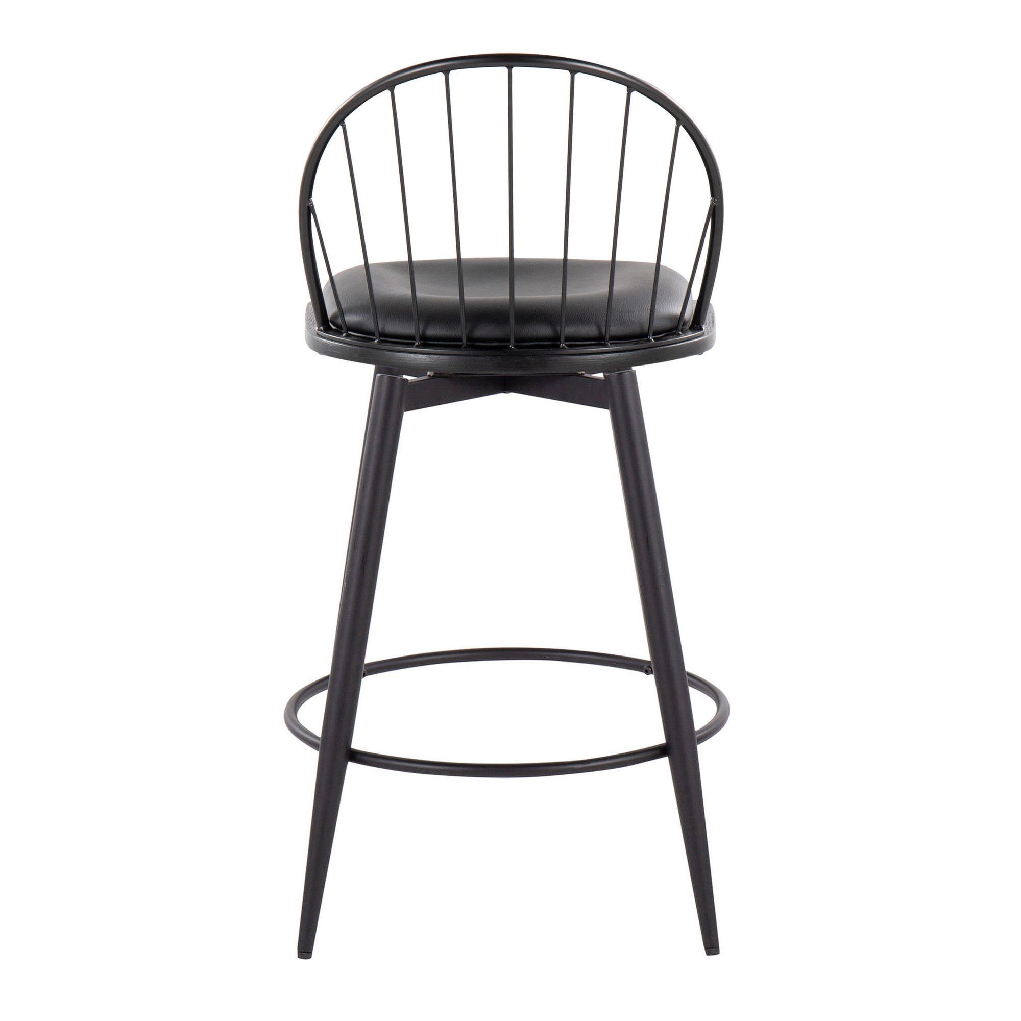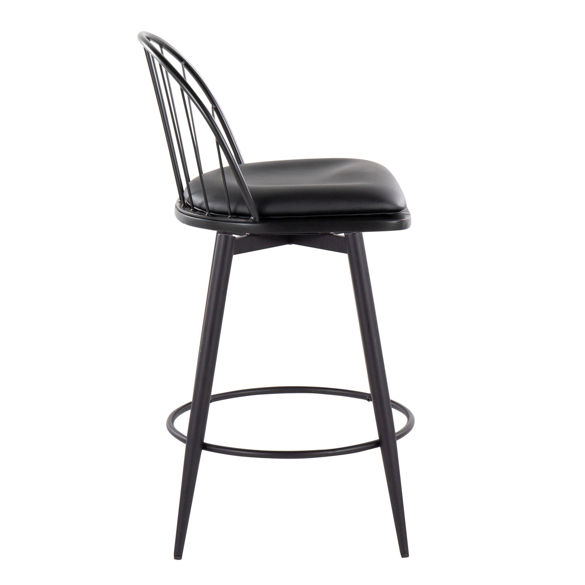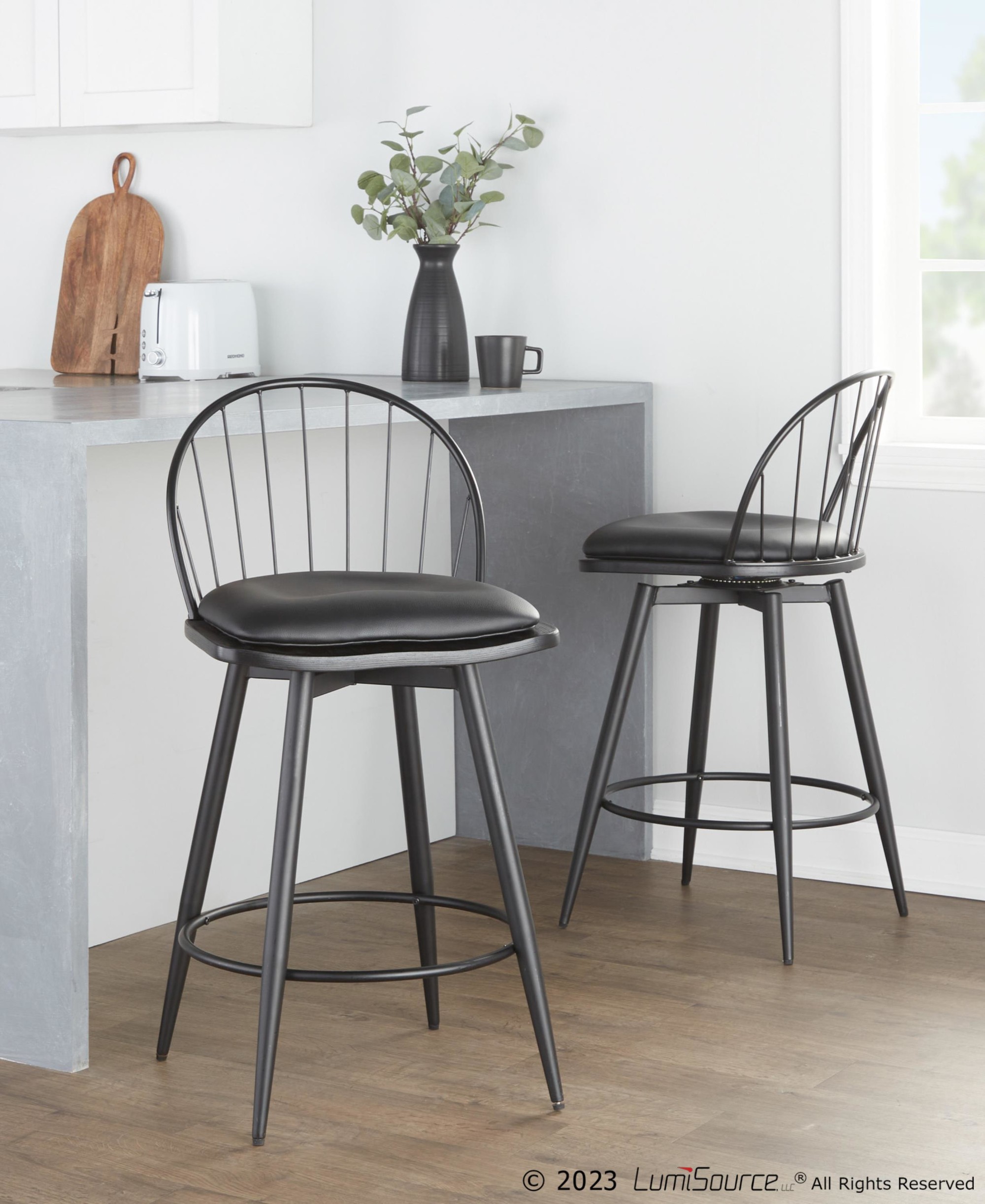 Enjoy the farmhouse styling with a 360-degree swivel for easy movement. The removable cushioned seat, upholstered in faux leather, provides comfortable seating, while the metal frame with a built-in round footrest adds stability and support. Sold in pairs, these counter stools are a great value and a stylish choice for your home.