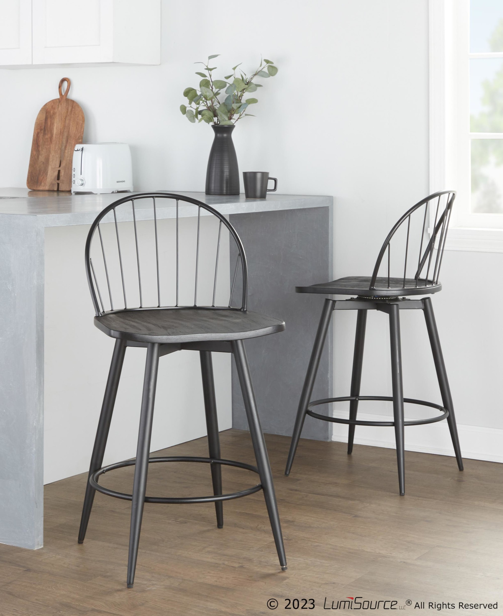 The Riley 26-Inch Black Farmhouse Swivel Counter Stools bring rustic charm to your kitchen or bar area. This updated take on a traditional spindle-back design combines farmhouse style with modern functionality. These stools offer both comfort and durability, making them a perfect addition to any counter or island.