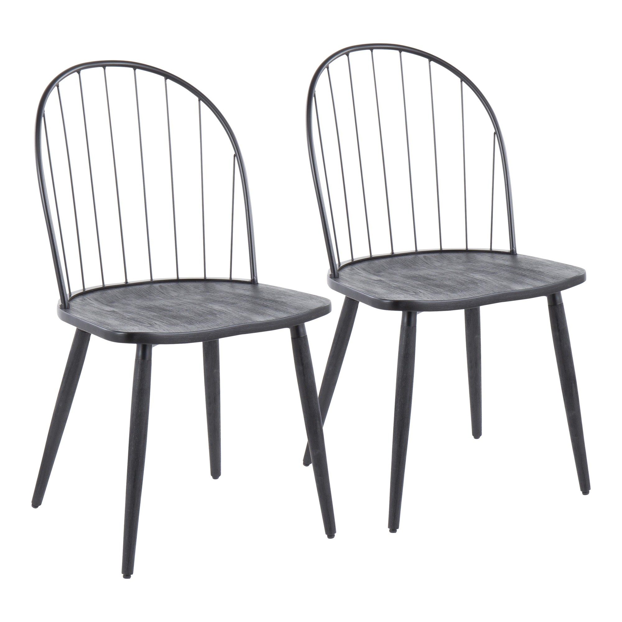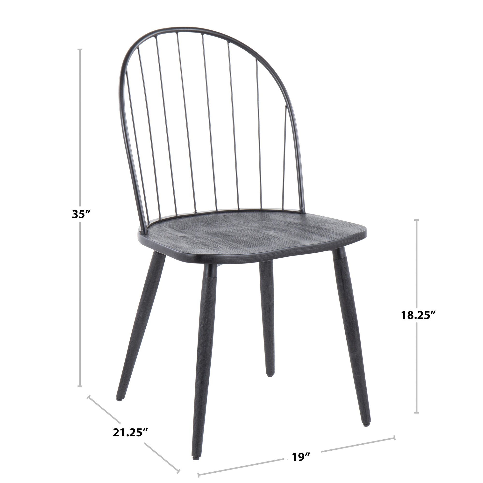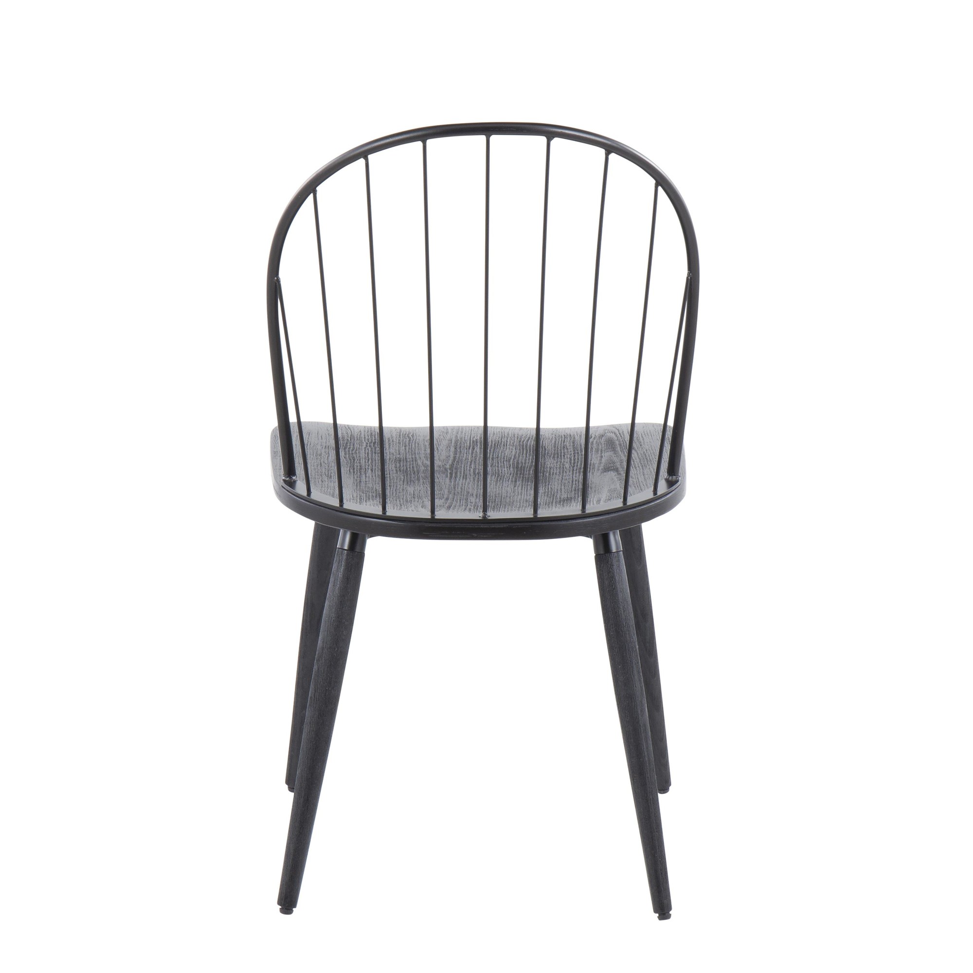 Add some edge to your dining space with these Riley Industrial Black Metal Wood High Back Chairs. This updated version of a traditional chair brings an industrial style to any room. Featuring a comfortable wood seat and a unique metal spindle backrest, these armless chairs are perfect for your dining table or as extra seating. Each chair has a weight limit of 250 lbs. These chairs are priced and sold in pairs. Dimensions: 21.25″L × 19″W × 35″H. Assembly Required: Yes. Material: Painted Steel, Bent Wood. Color: Black Metal, Black Wood.