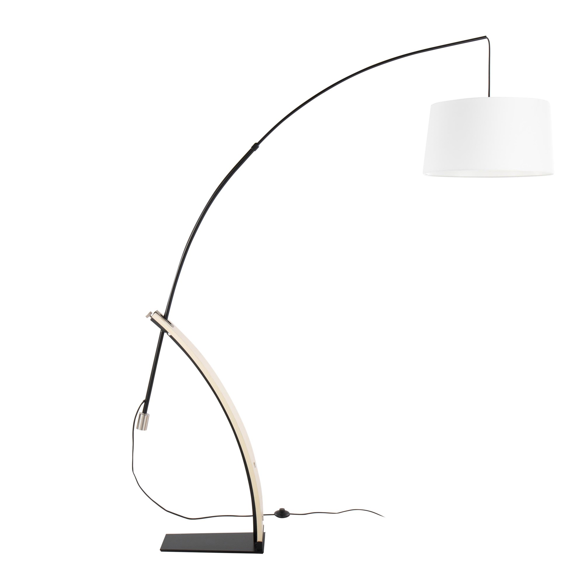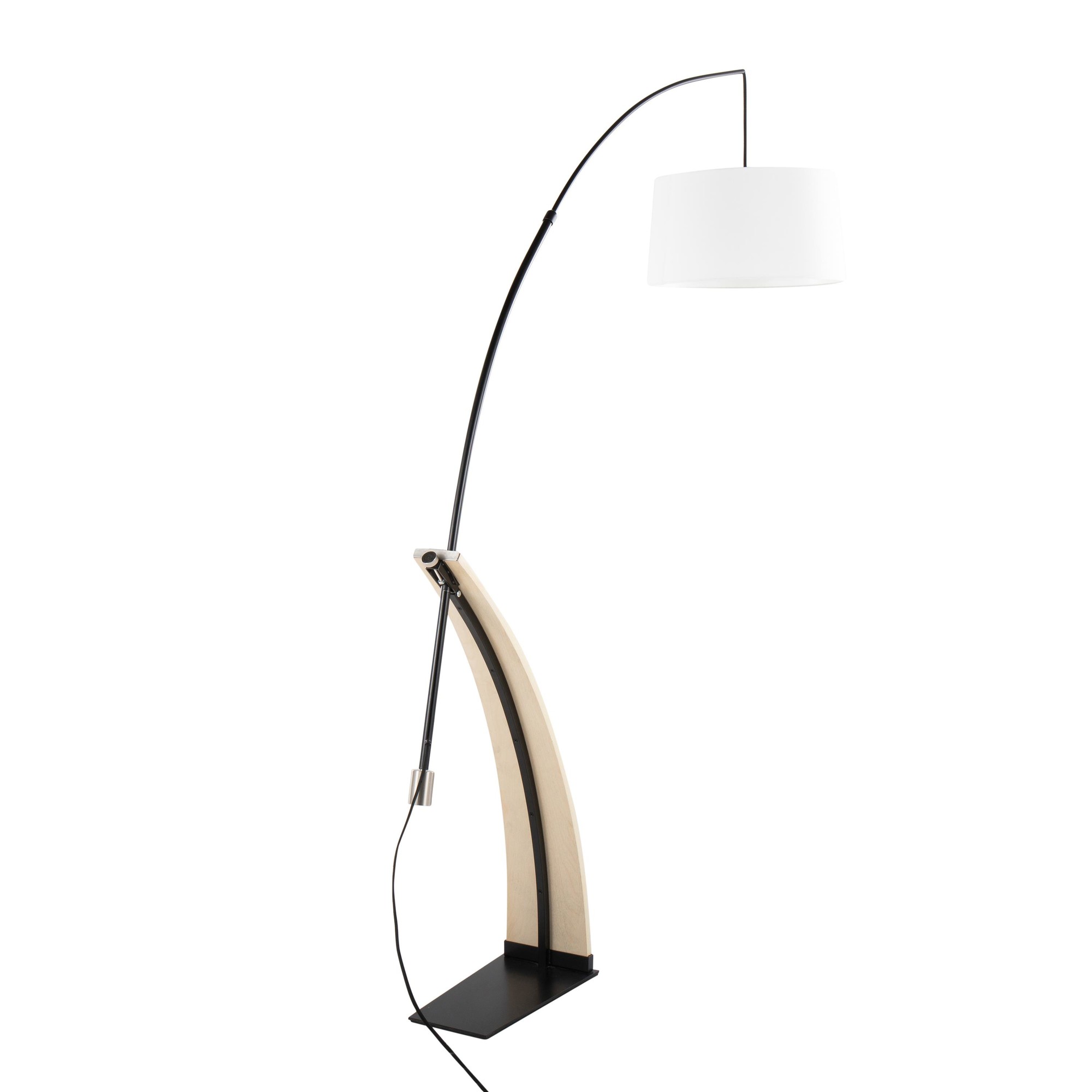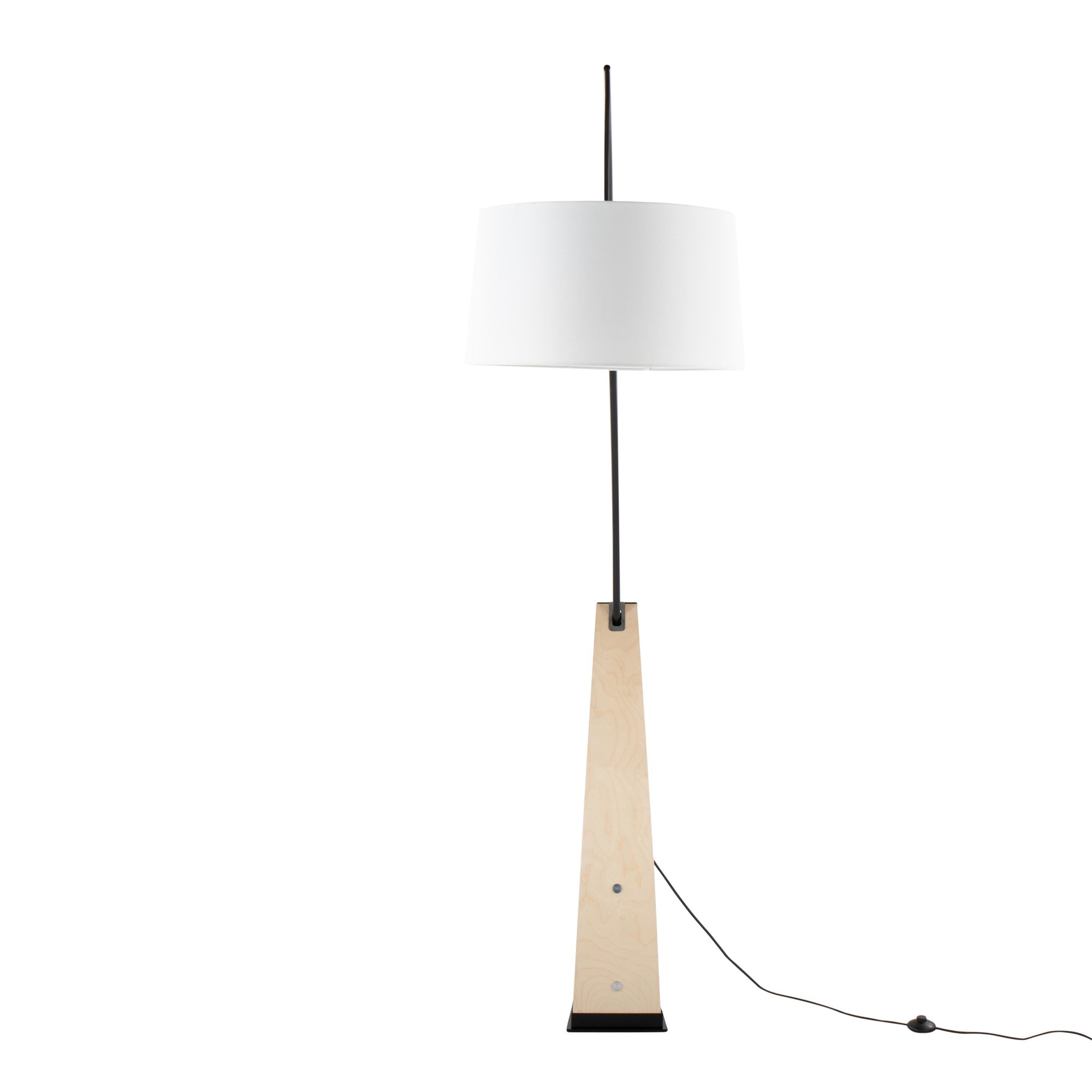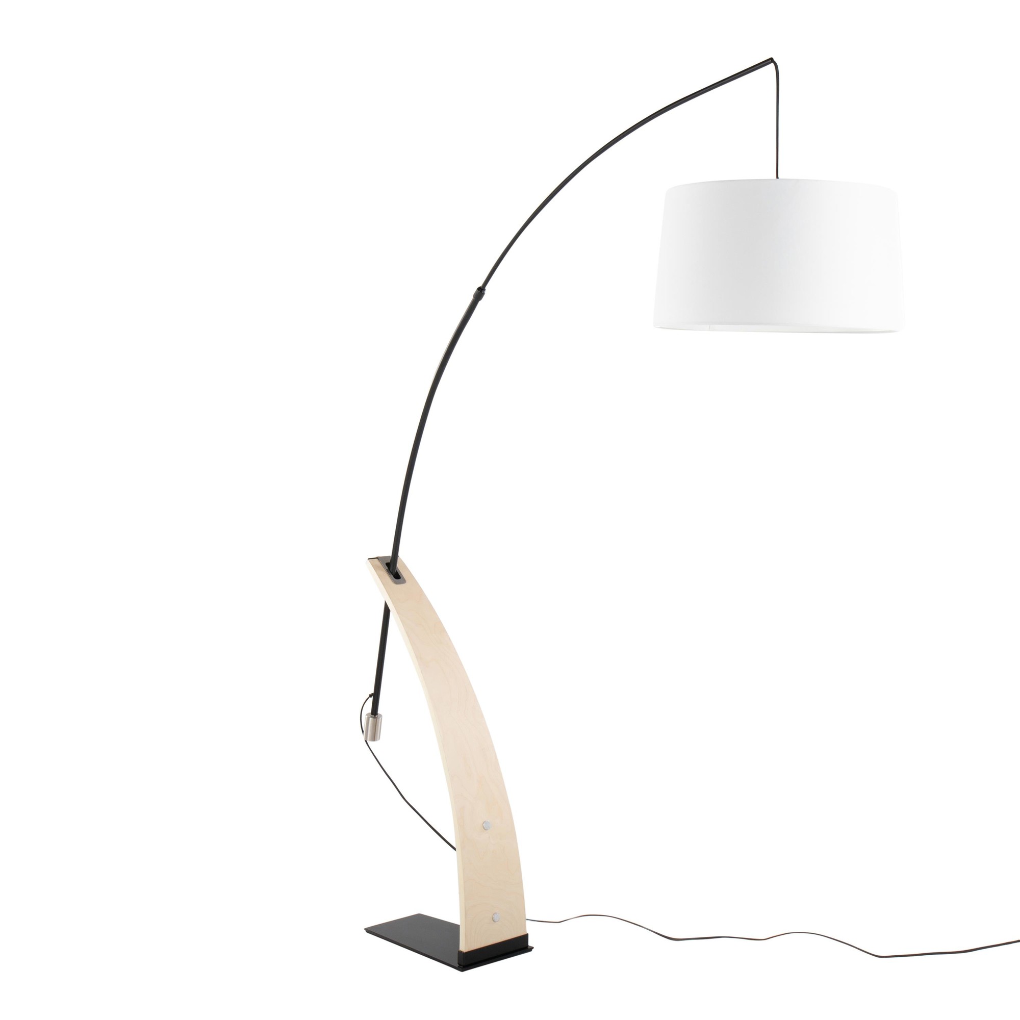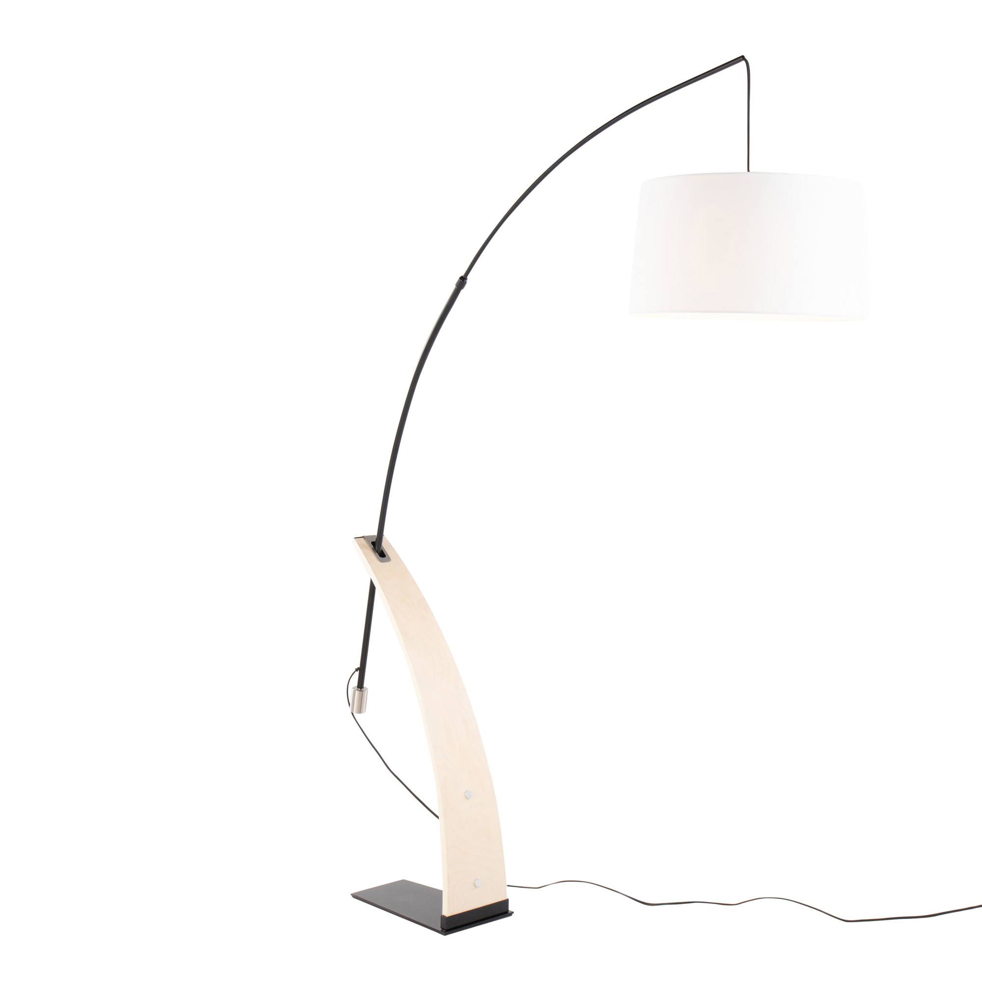 The Robyn Floor Lamp is a unique design that is the perfect piece to set off any living area. Ultra sleek with an arched metal neck is complimented by a stylish bent wood base and a sleek white linen shade, providing mid-century modern appeal.