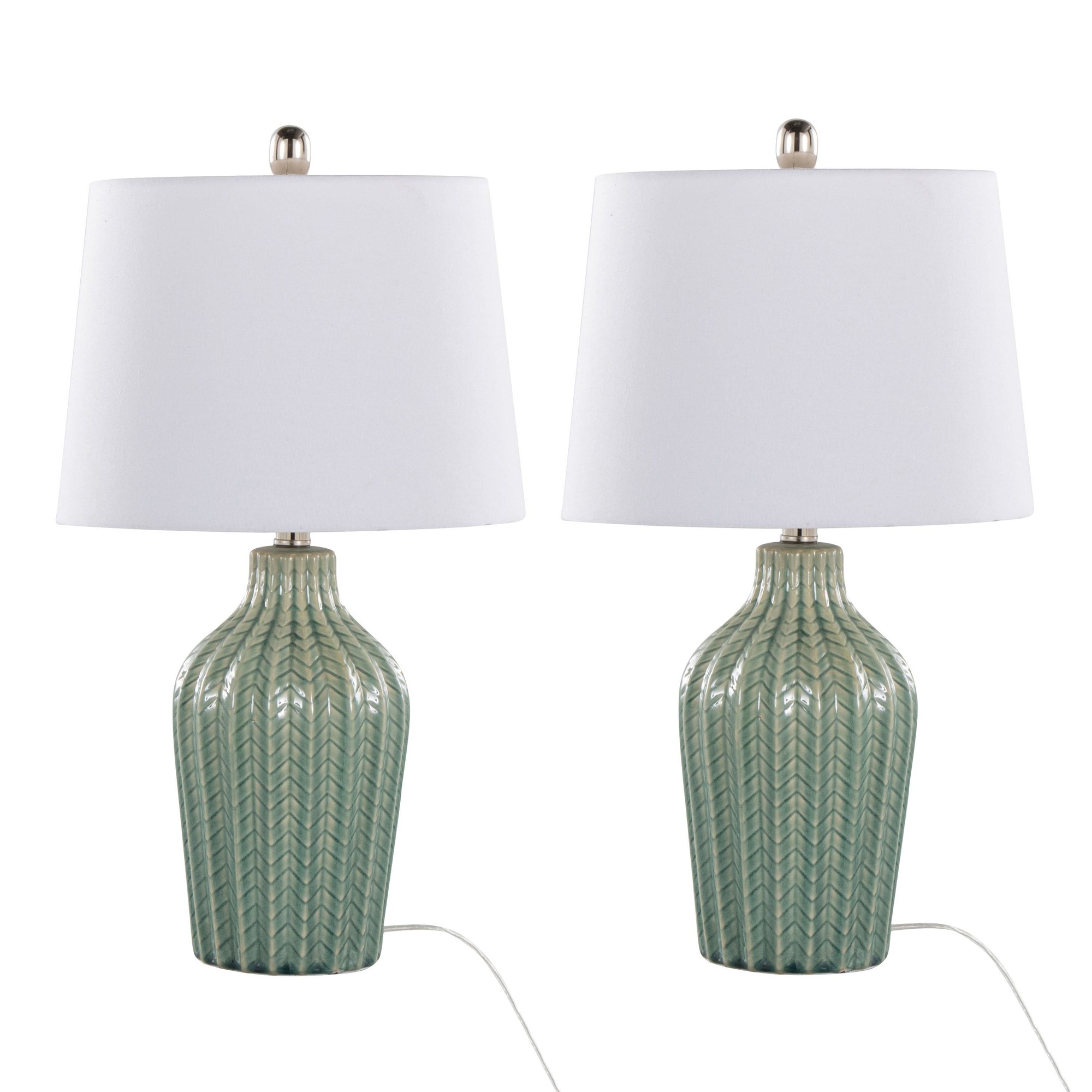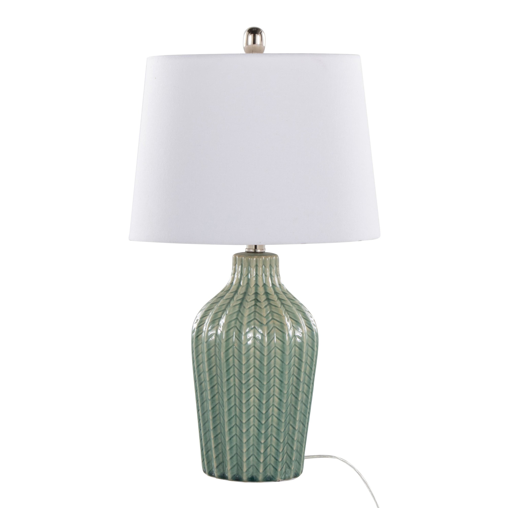 Bring a touch of color and contemporary style to your living space with the Rockwell Table Lamp. This eye-catching lamp features a stylish ceramic body with a glossy chevron pattern and a sleek, tapered drum shade. Perfect for the bedroom, living room, office, or entryway, the Rockwell lamp will brighten any room.