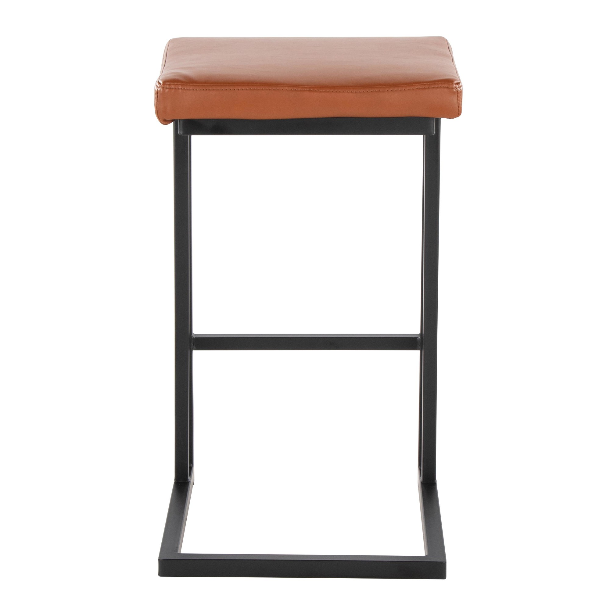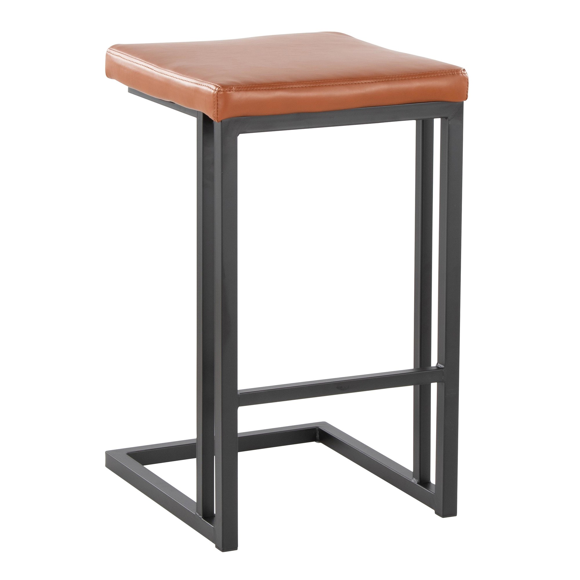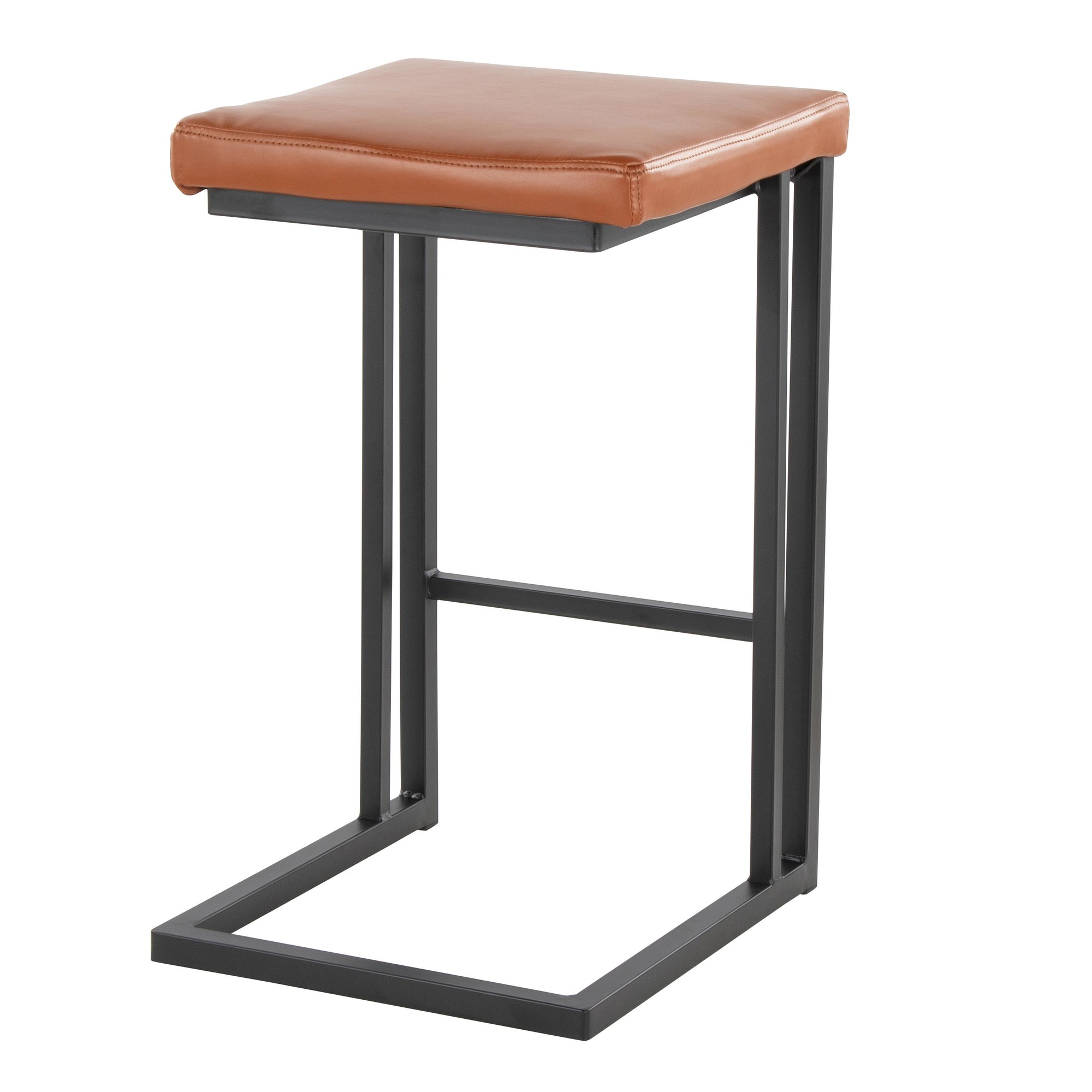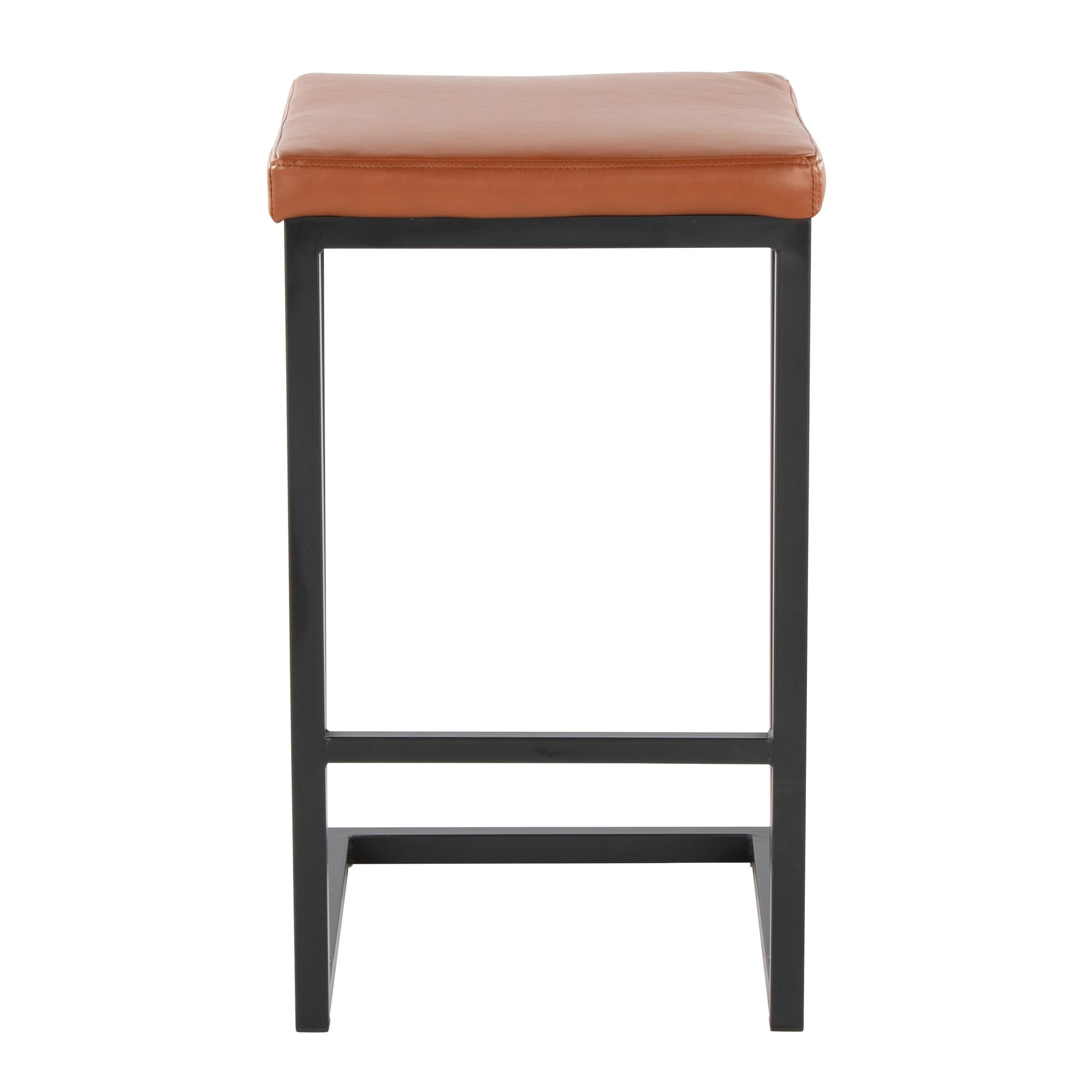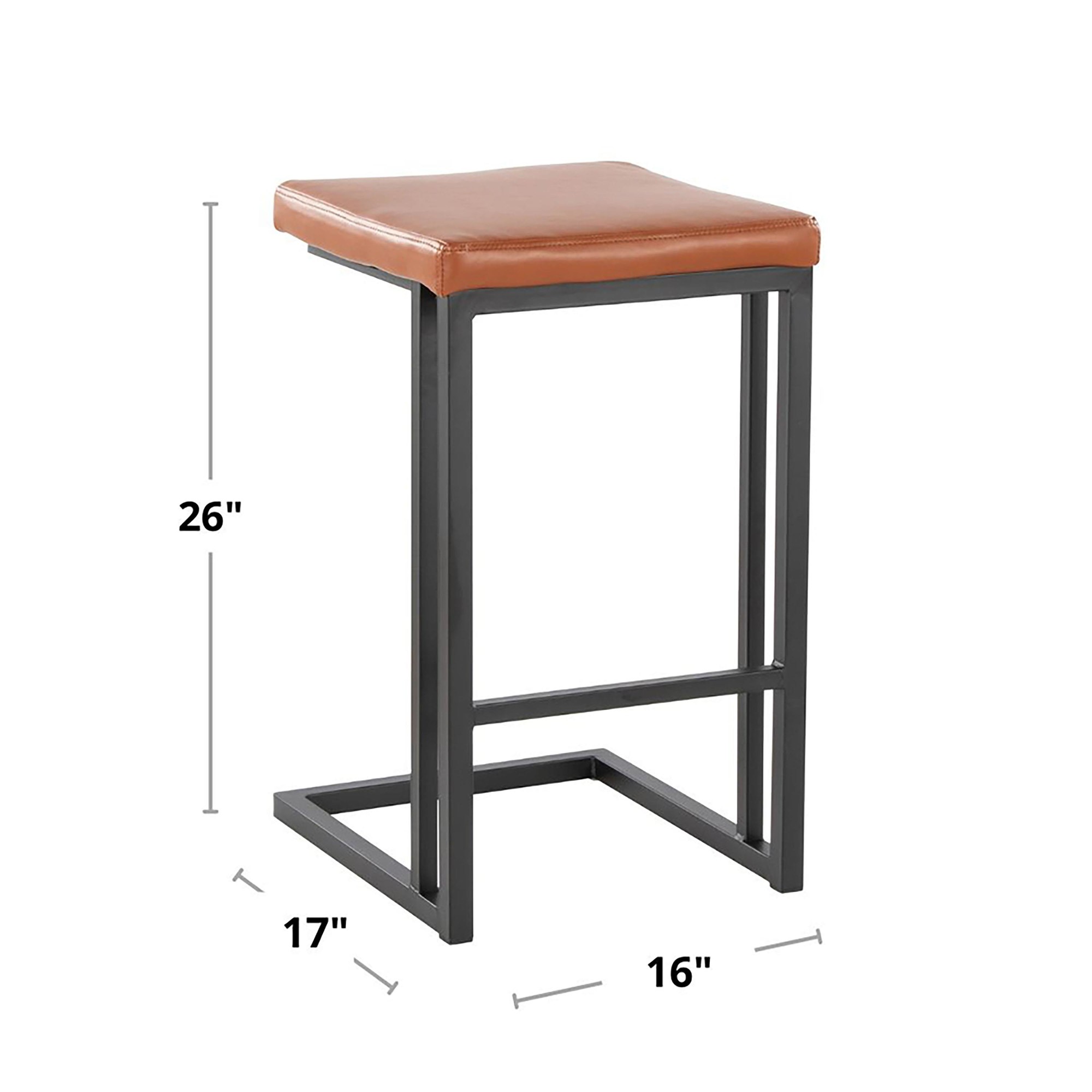 These Roman 26-Inch Counter Stools bring a sharp and clean aesthetic to any modern space. Their mixed-material design makes them a great addition to your home. Featuring an angular metal frame and comfortable faux leather upholstery, these backless stools offer a minimalist complement to your chic decor.