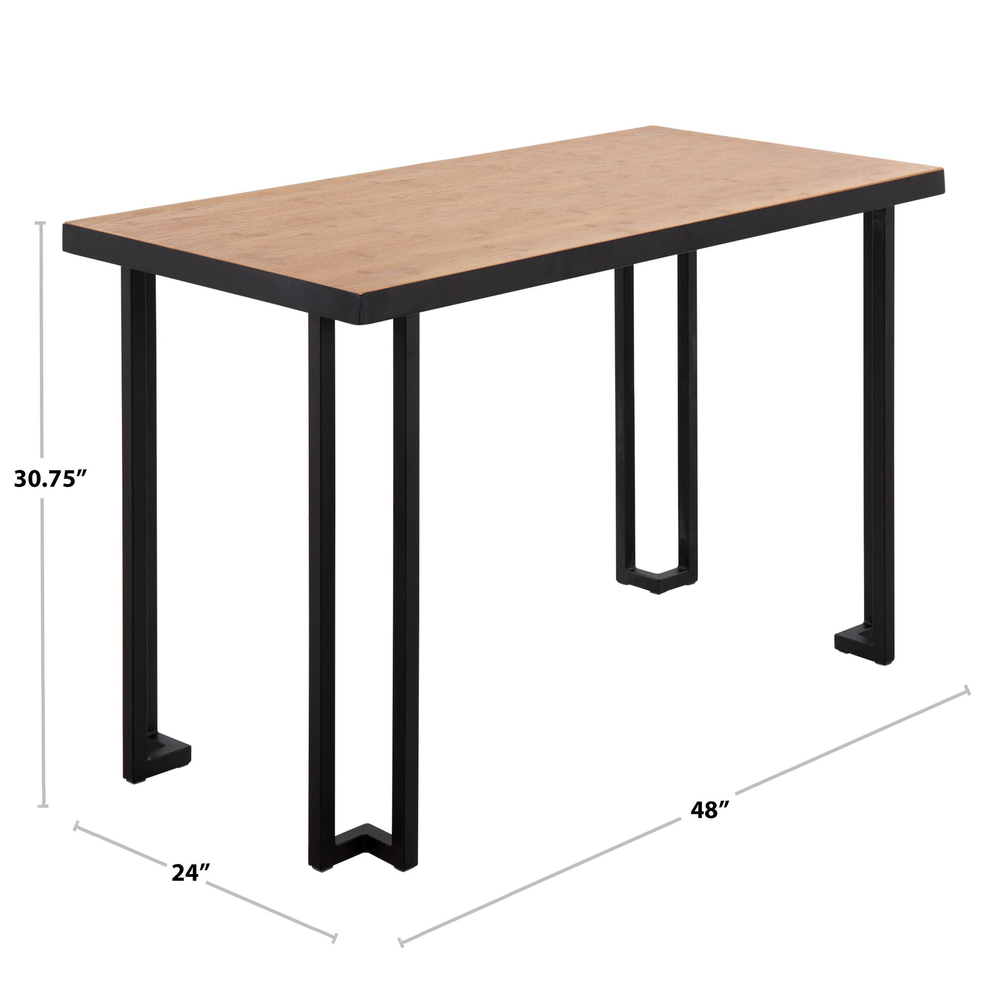 This desk blends sturdy metal with warm wood for a cool look. It’s a modern take on industrial style, perfect for your home office. The angular metal frame makes a statement. A bamboo wood top adds a touch of nature. This desk is just the right size for smaller spaces. Some assembly is needed. Product Specs: 24″L × 48″W × 30.75″H. Color: Black Steel, Natural Wood. Material: Painted Steel, Wood. You can even put your feet under it, because it has Floor To Apron: 29.25″. It can hold up to 100 lbs.