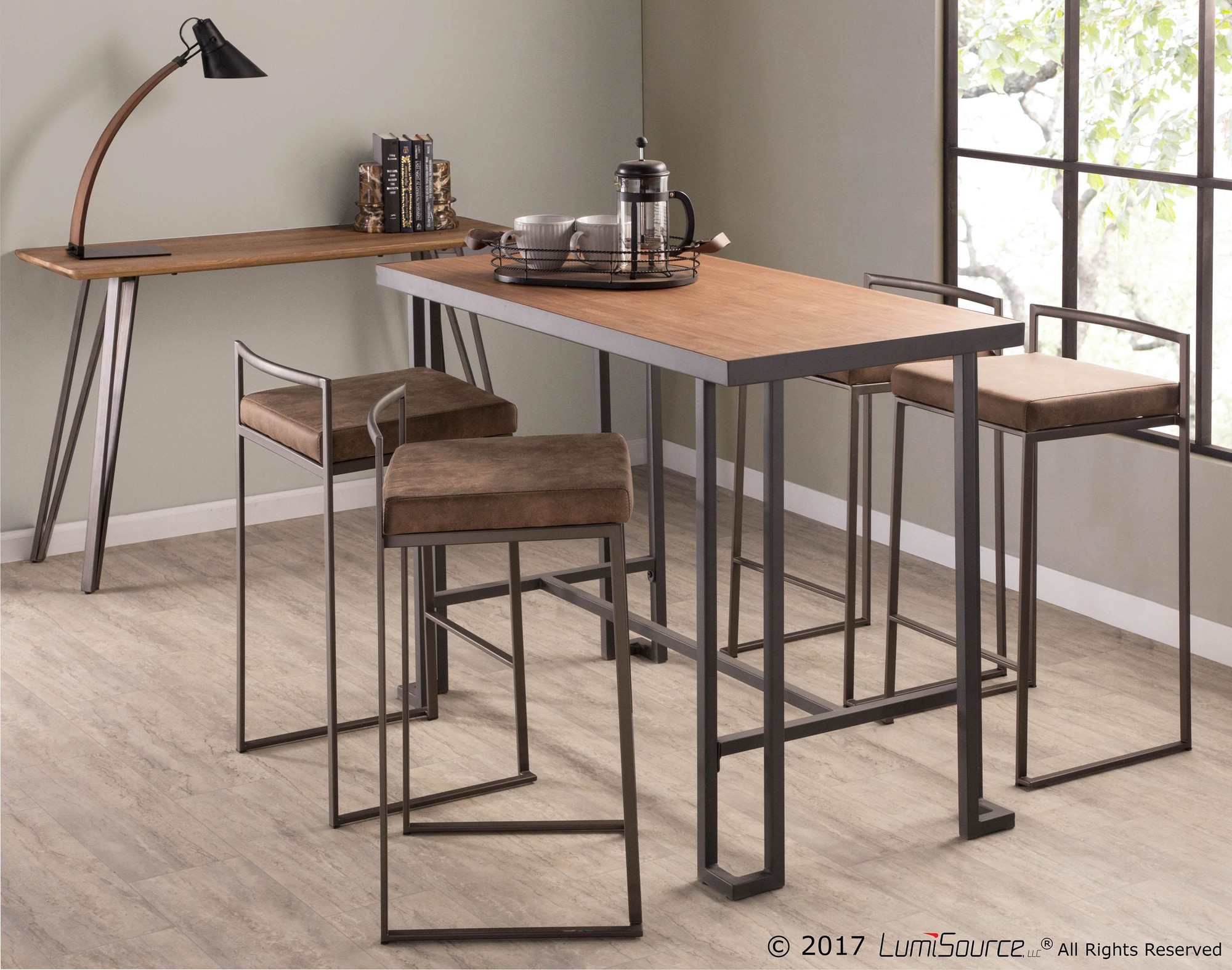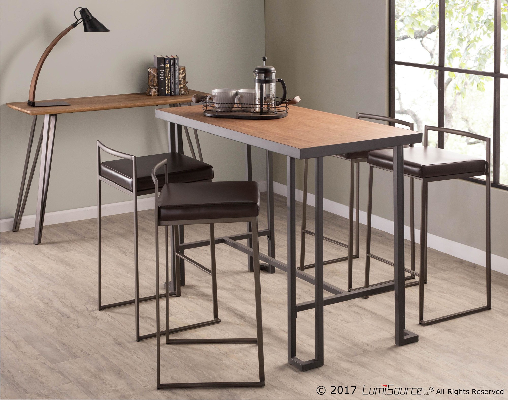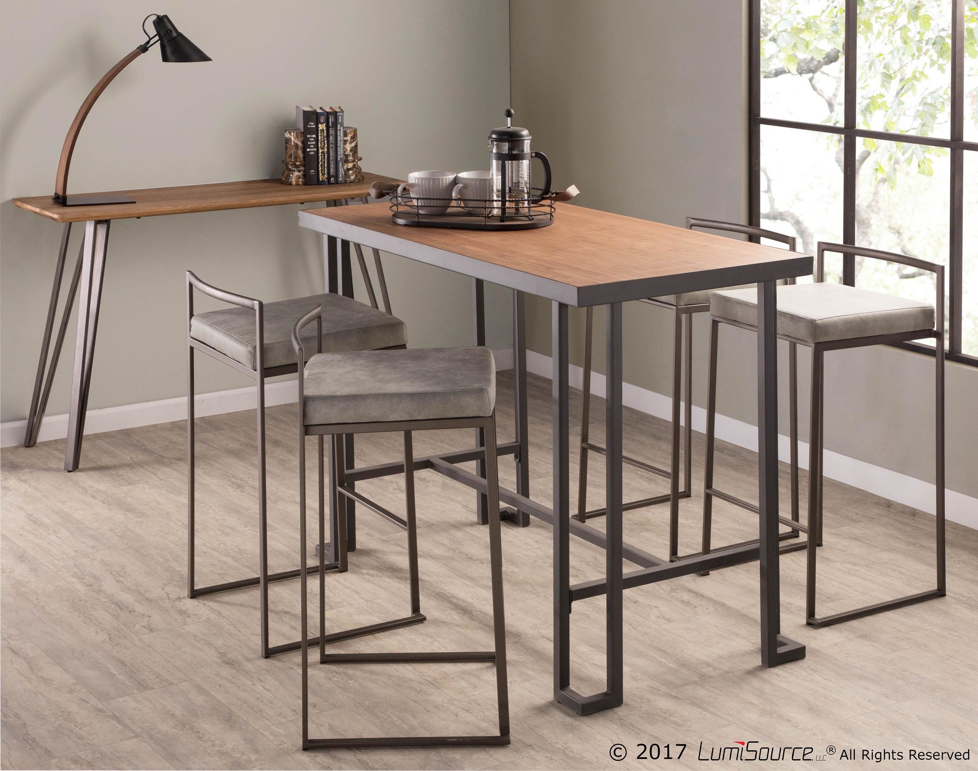 Enjoy the harmonious combination of the sturdy metal frame and the warm, natural wood tabletop. This table comfortably accommodates four, making it perfect for intimate gatherings or casual meals. Its fixed counter height adds to its versatility, making it a great addition to any home bar or dining area.