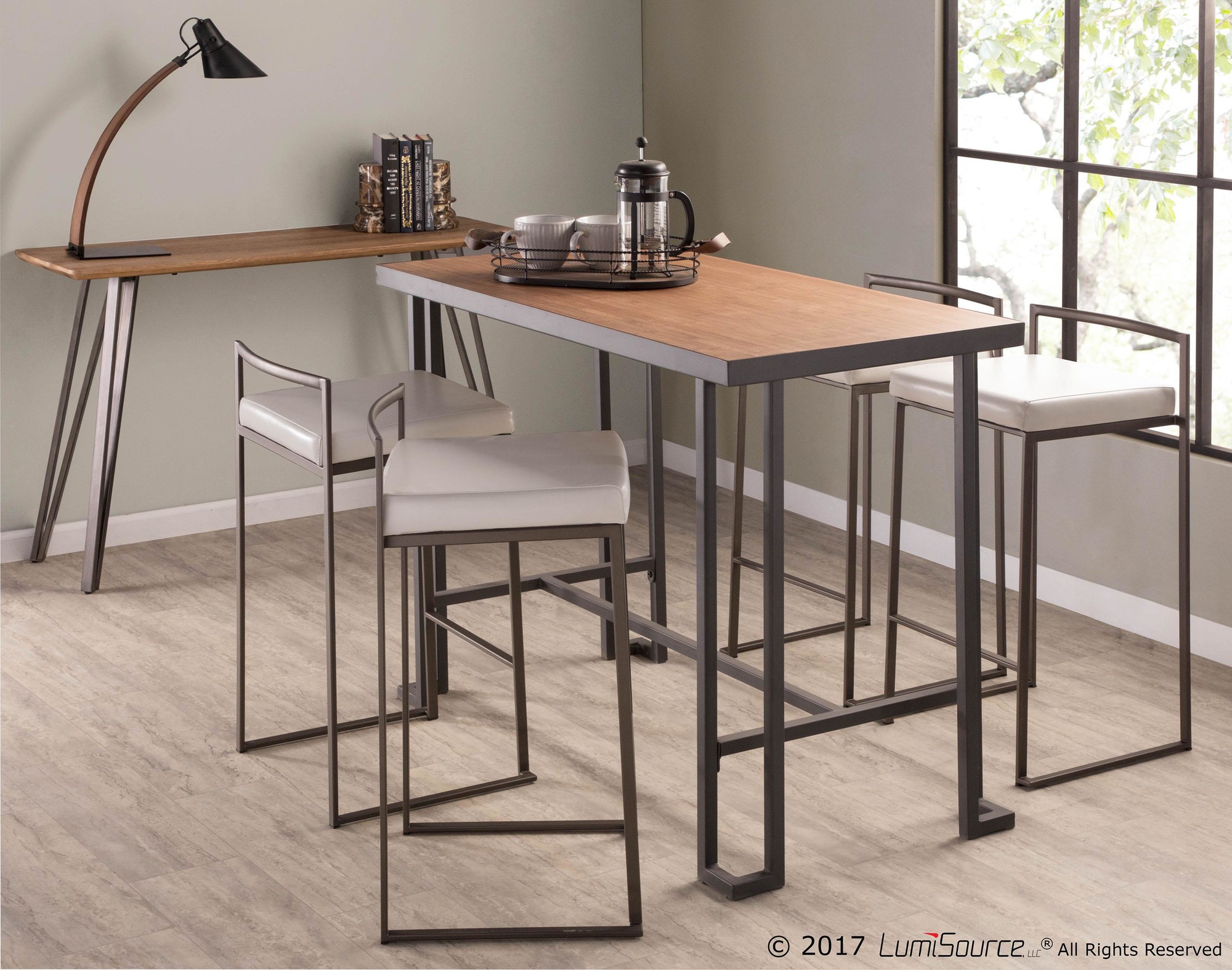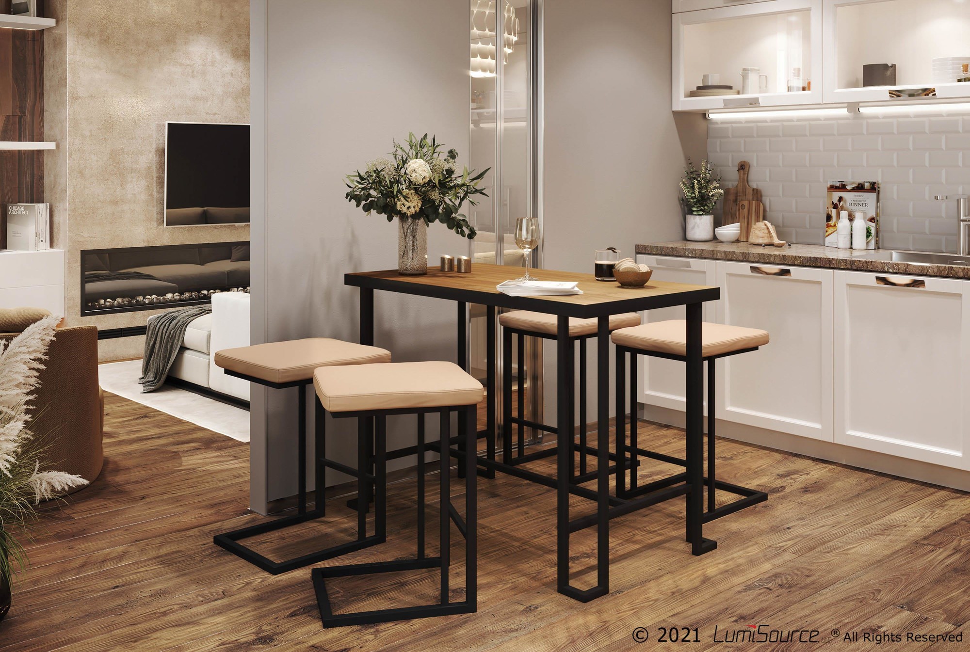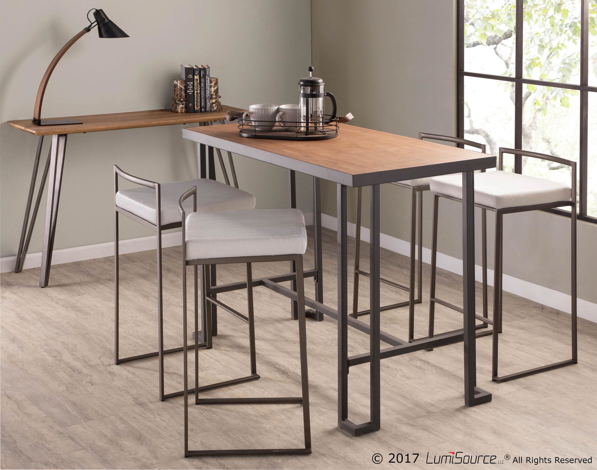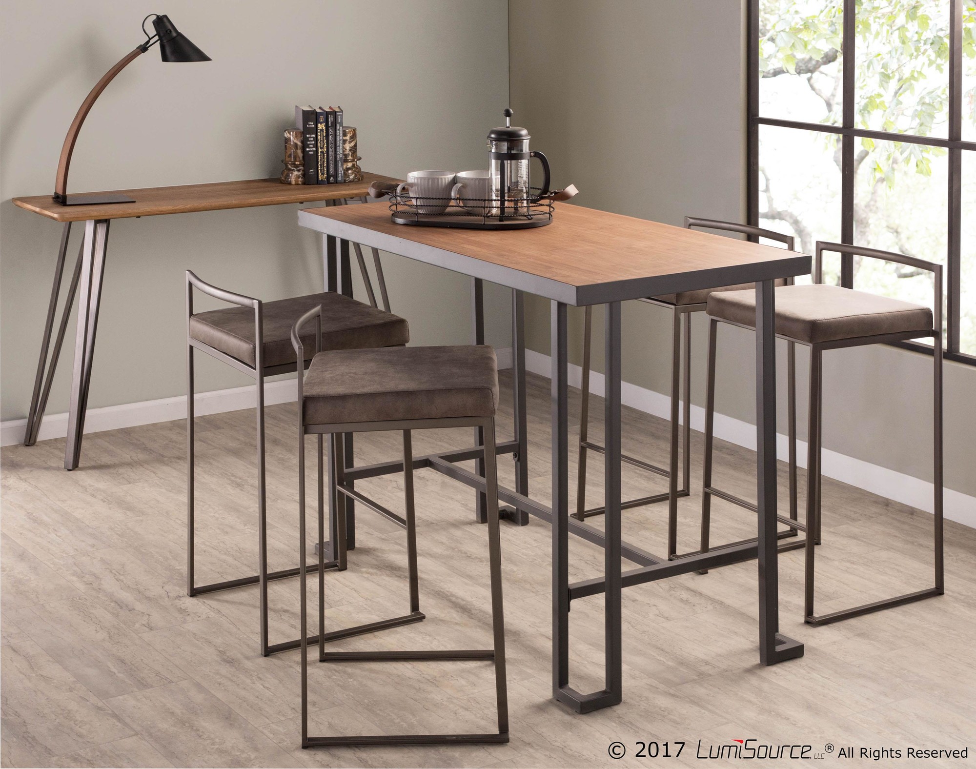 Enjoy the harmonious combination of the sturdy metal frame and the warm, natural wood tabletop. This table comfortably accommodates four, making it perfect for intimate gatherings or casual meals. Its fixed counter height adds to its versatility, making it a great addition to any home bar or dining area.