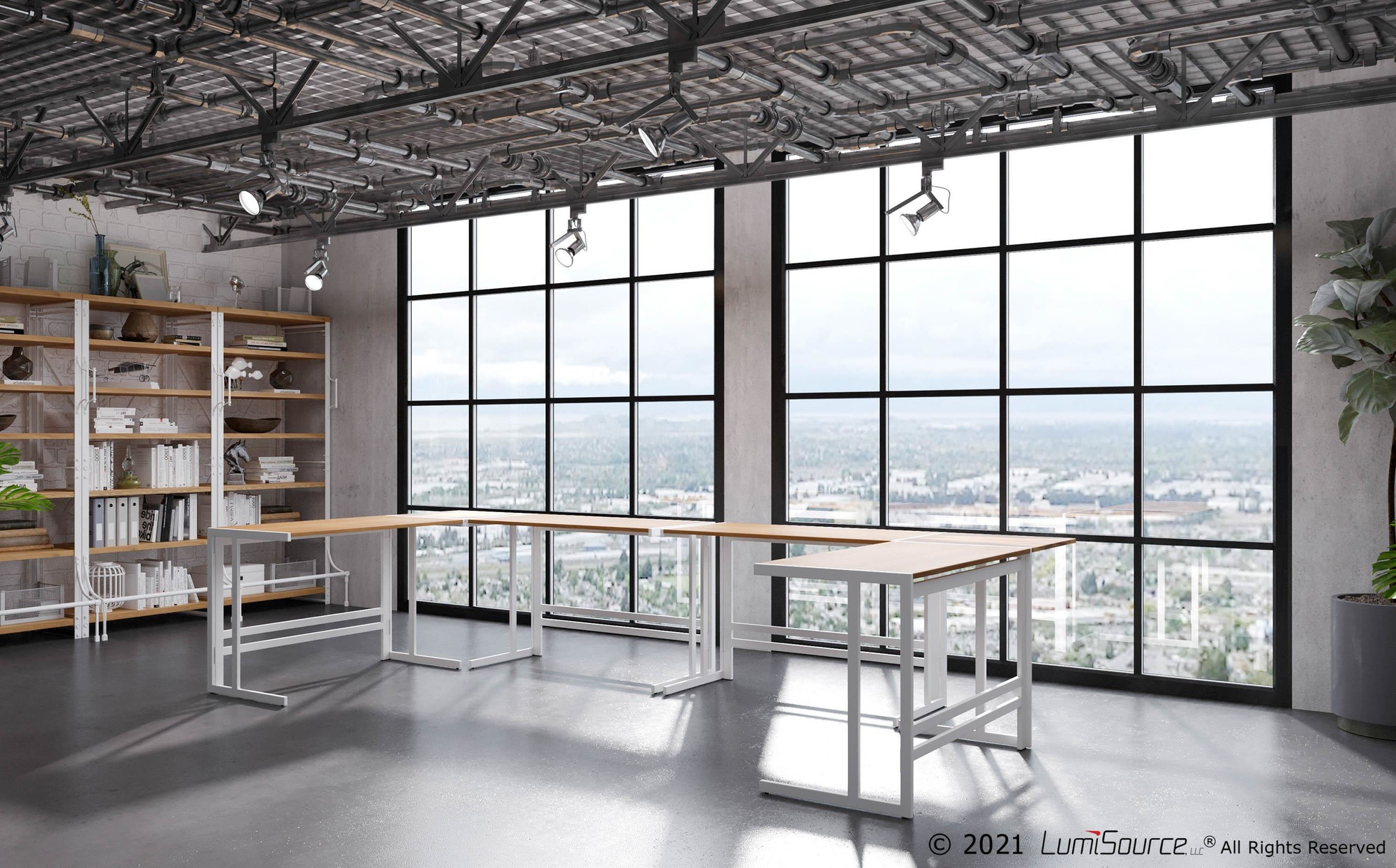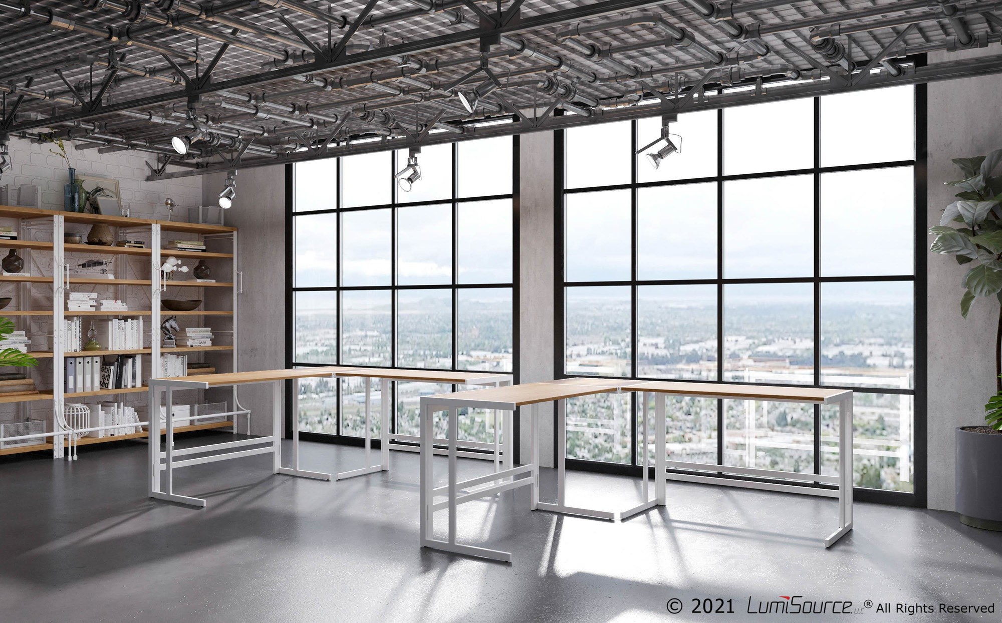 - Enjoy the industrial styling and L-shape design.