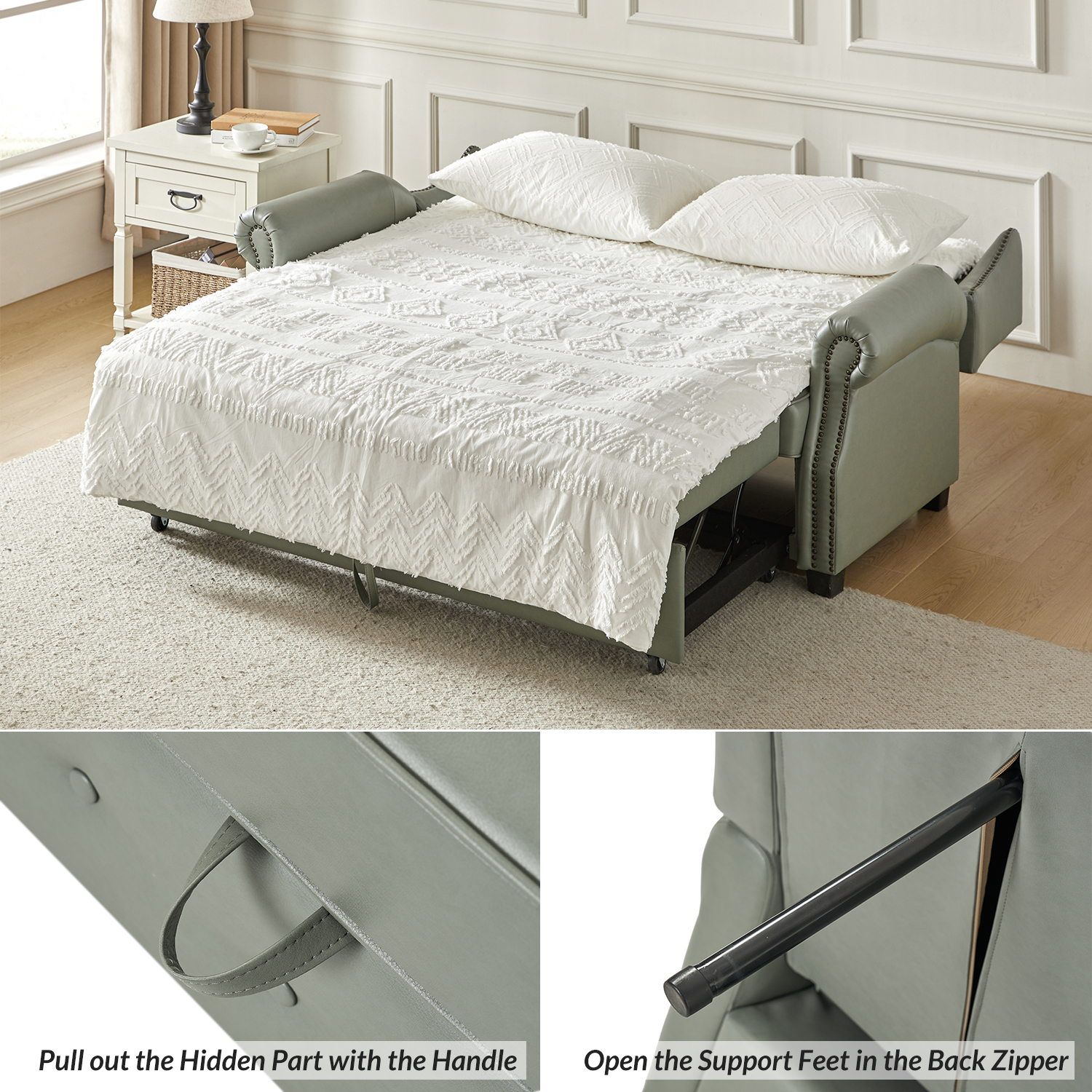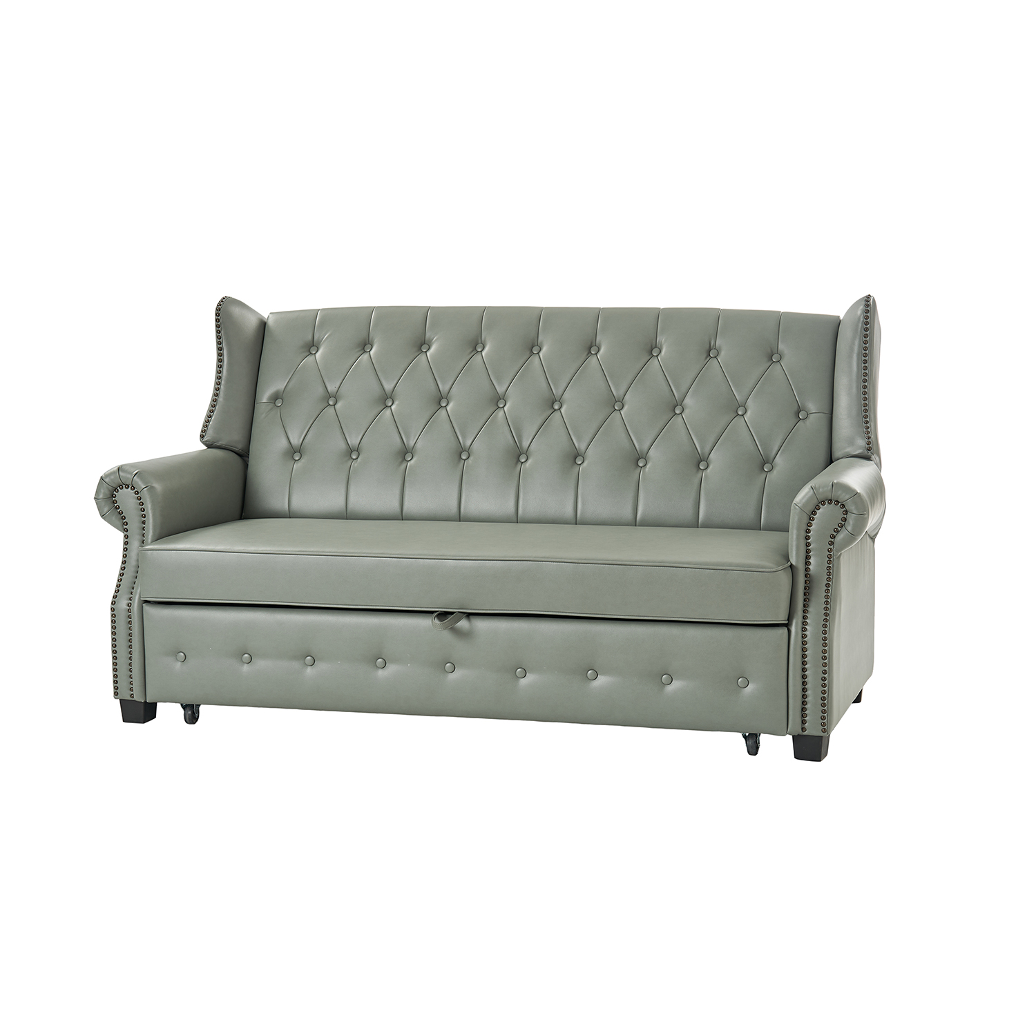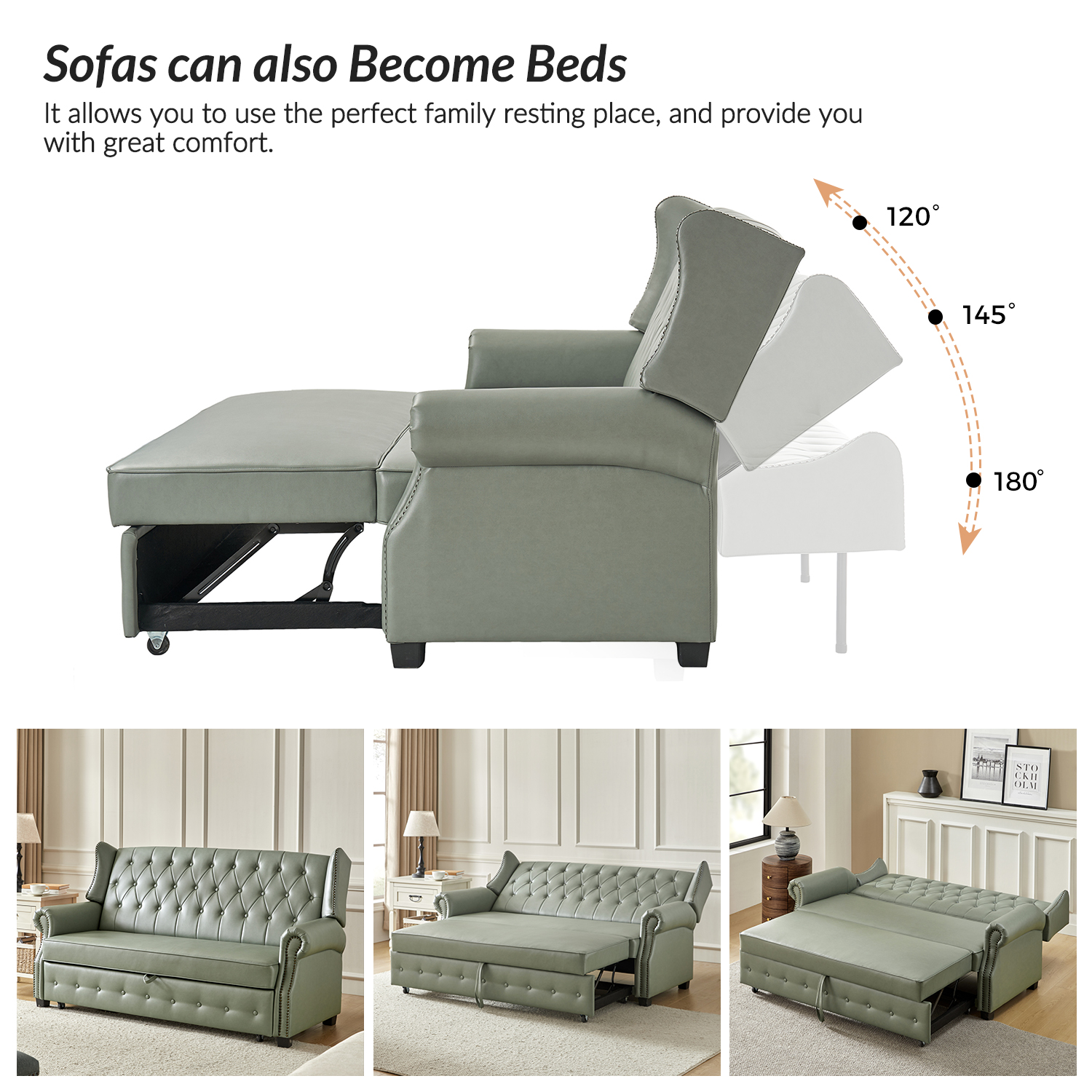 Ruedi Sage Faux Leather Chesterfield Adjustable Back Sleeper Sofa