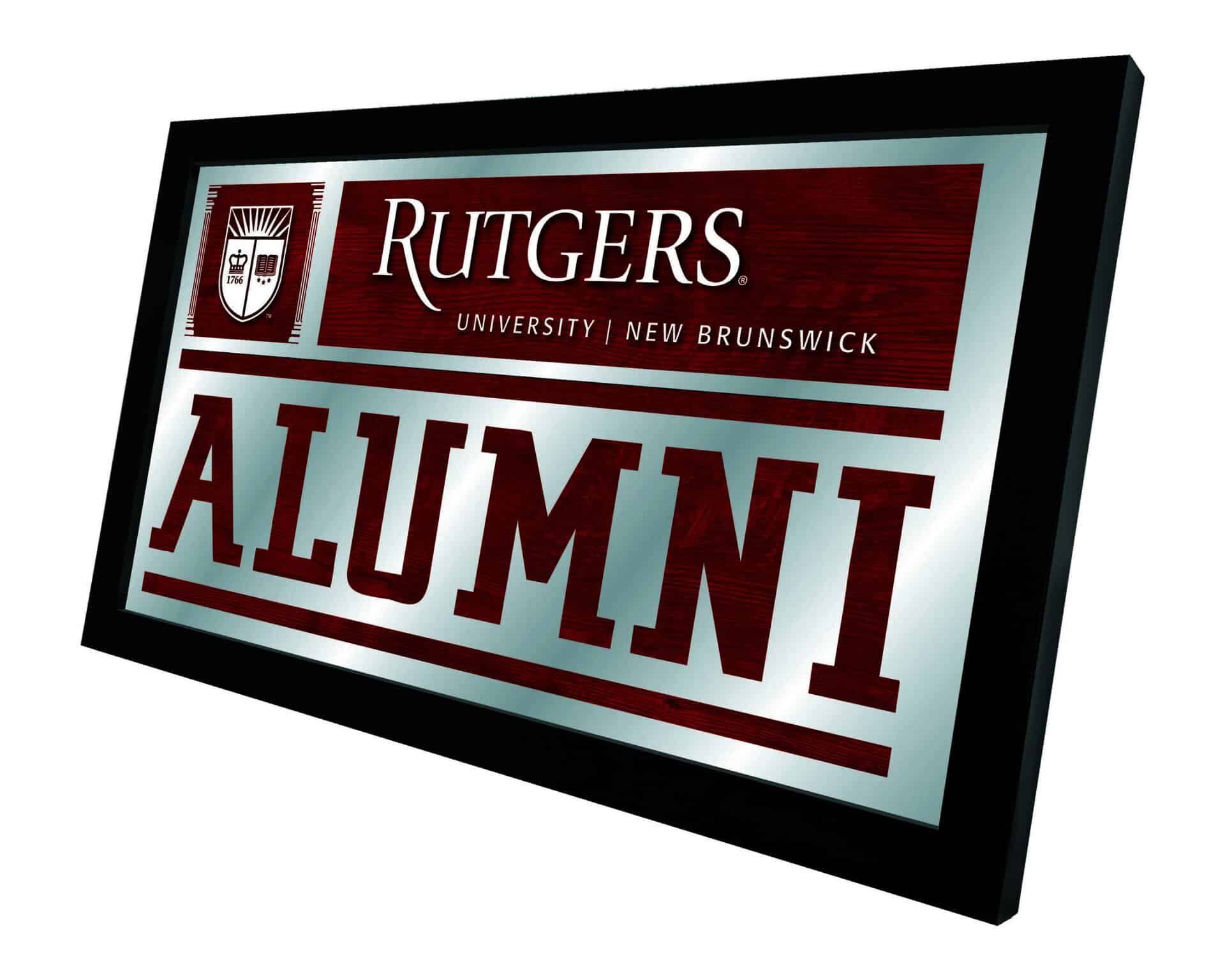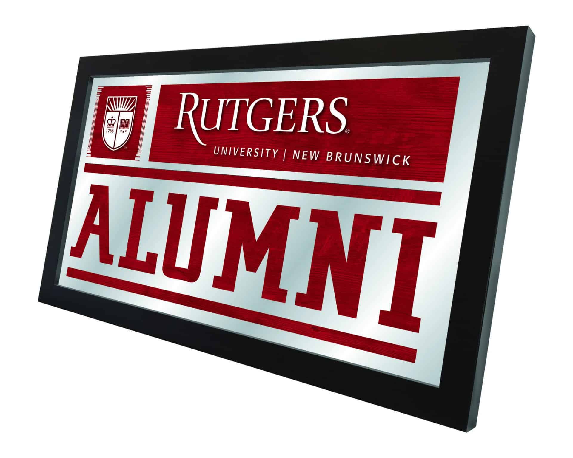 Show your school pride with the Rutgers 26×15 Alumni Wall Mirror. With its simple yet elegant design, this mirror features vibrant school colors that burst through the 1/8″ thick glass, beautifully highlighted by mirrored accents. The mirror is framed with a black, 1 1/4″ wrapped wood frame and includes saw tooth hangers, making it ideal for your office, garage, or any room in the house. Whether you’re purchasing it as a gift for a recent grad or for yourself, you can take satisfaction in knowing you’re buying a mirror that is proudly made in the USA.