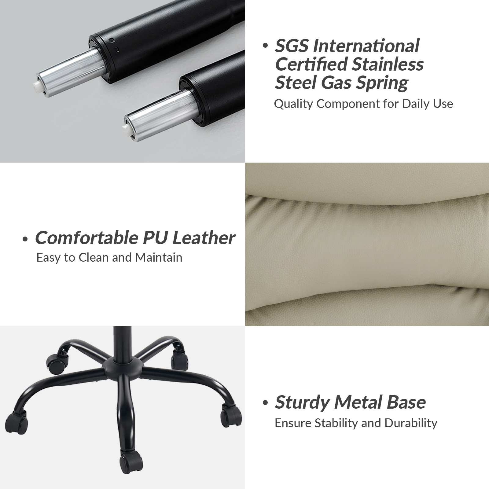 - Faux Leather Upholstery: Crafted from quality faux leather, adding a touch of sophistication to your workspace while ensuring durability and easy maintenance.