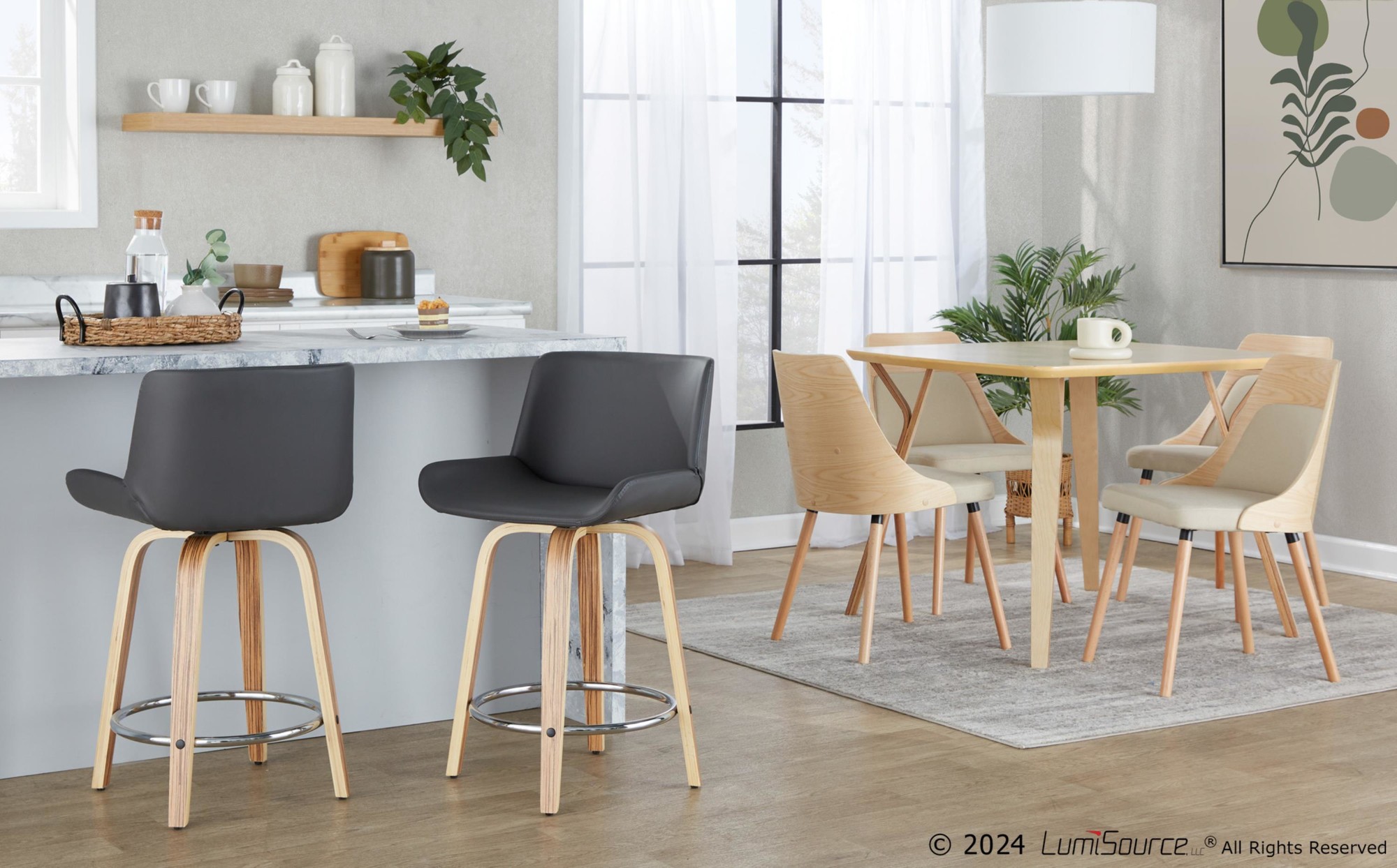 The Santi Fixed-Height Counter Stool brings modern sophistication to your space. With elegant bent wood legs and a plush faux leather seat, this stool offers a stylish, minimalist design. Enjoy the comfort of a gently curved back and contoured seat, perfect for your kitchen island or home bar.