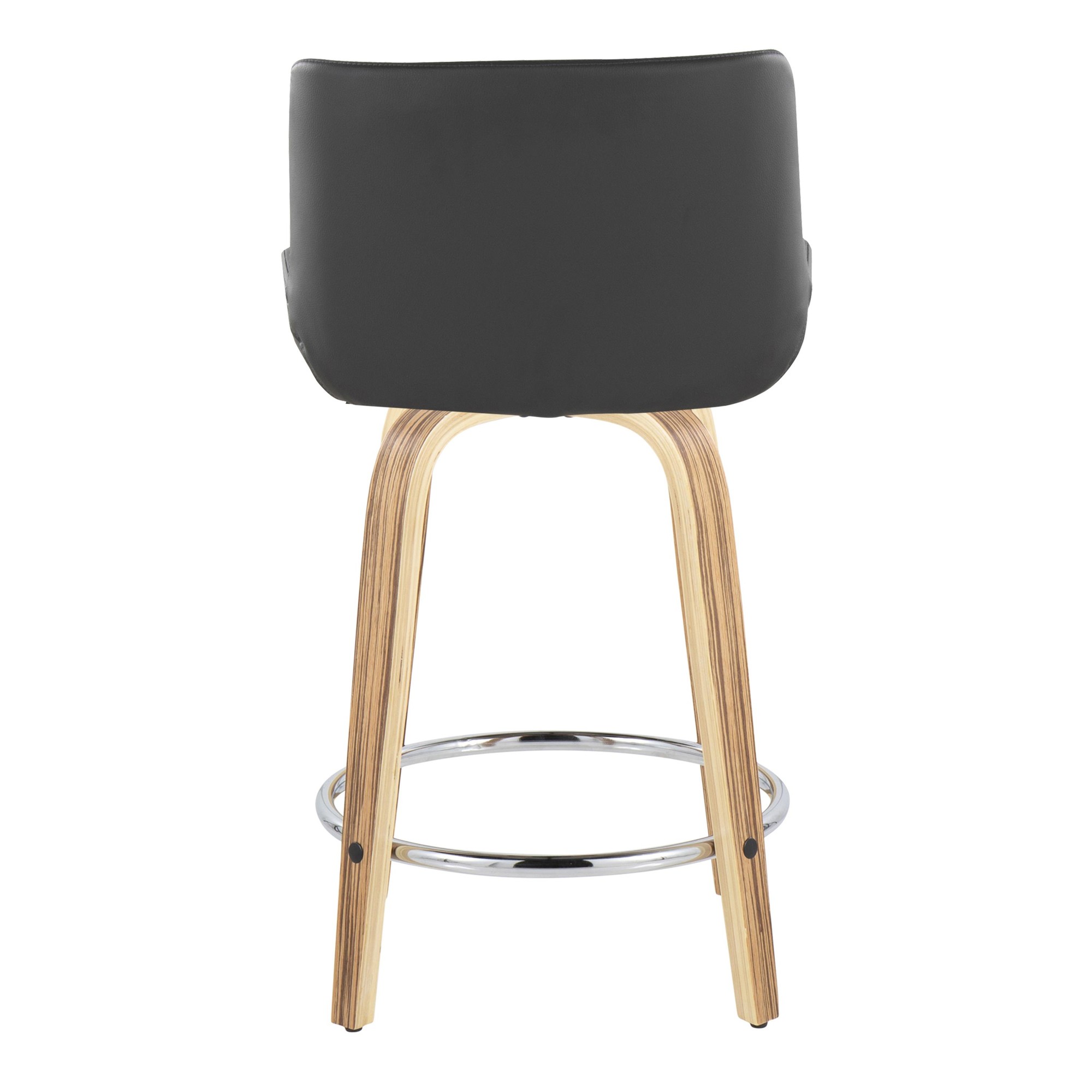 The Santi Counter Stool combines style and comfort, making it an ideal seating solution. Its 360-degree swivel adds functionality, while the round chrome footrest provides extra support. Available in a Zebra Wood, Chrome Metal, and Grey PU finish, this stool is sure to complement any décor.