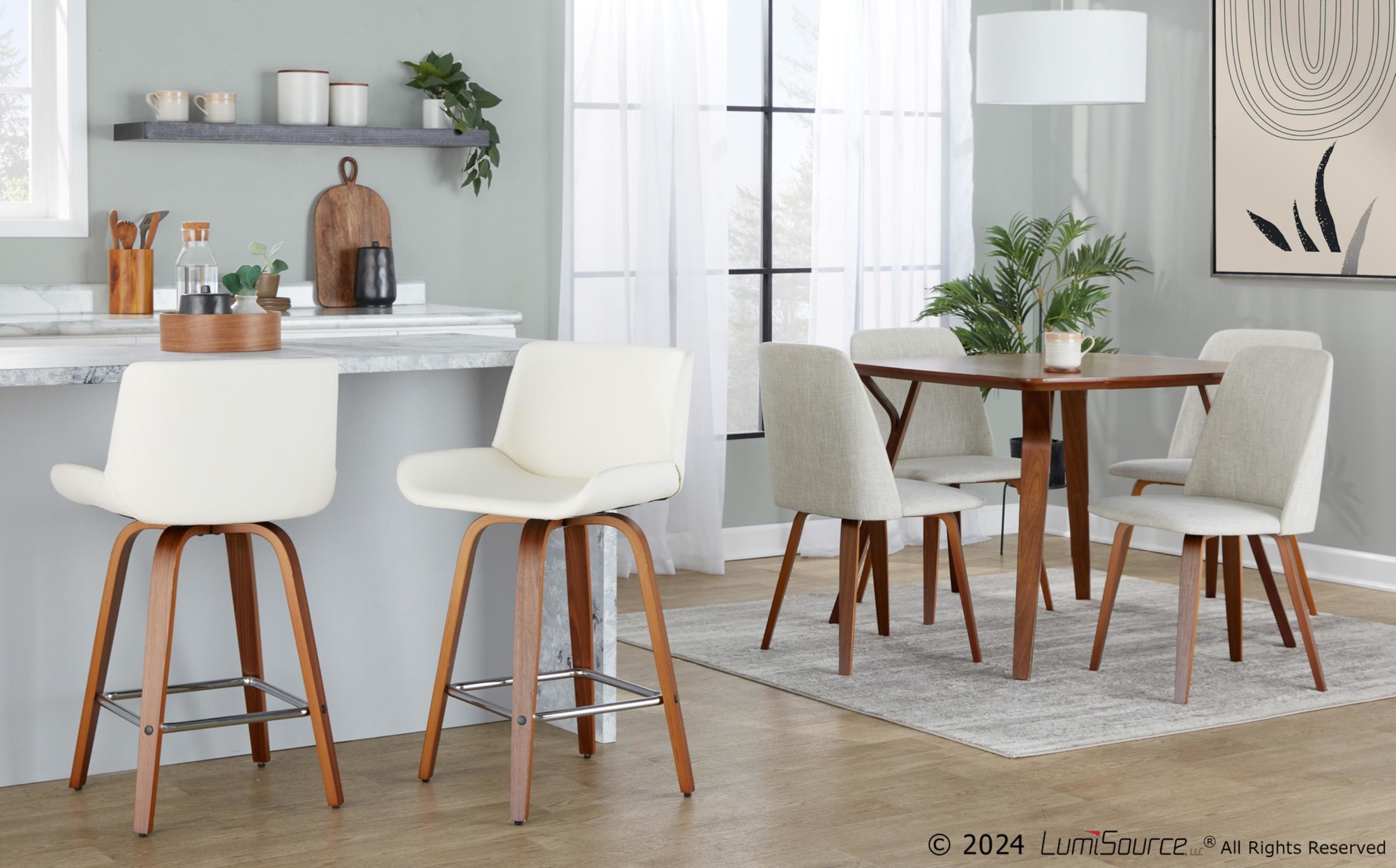Santi 25 Mid-Century Modern Walnut White Swivel Counter Stools (Set of 2)
