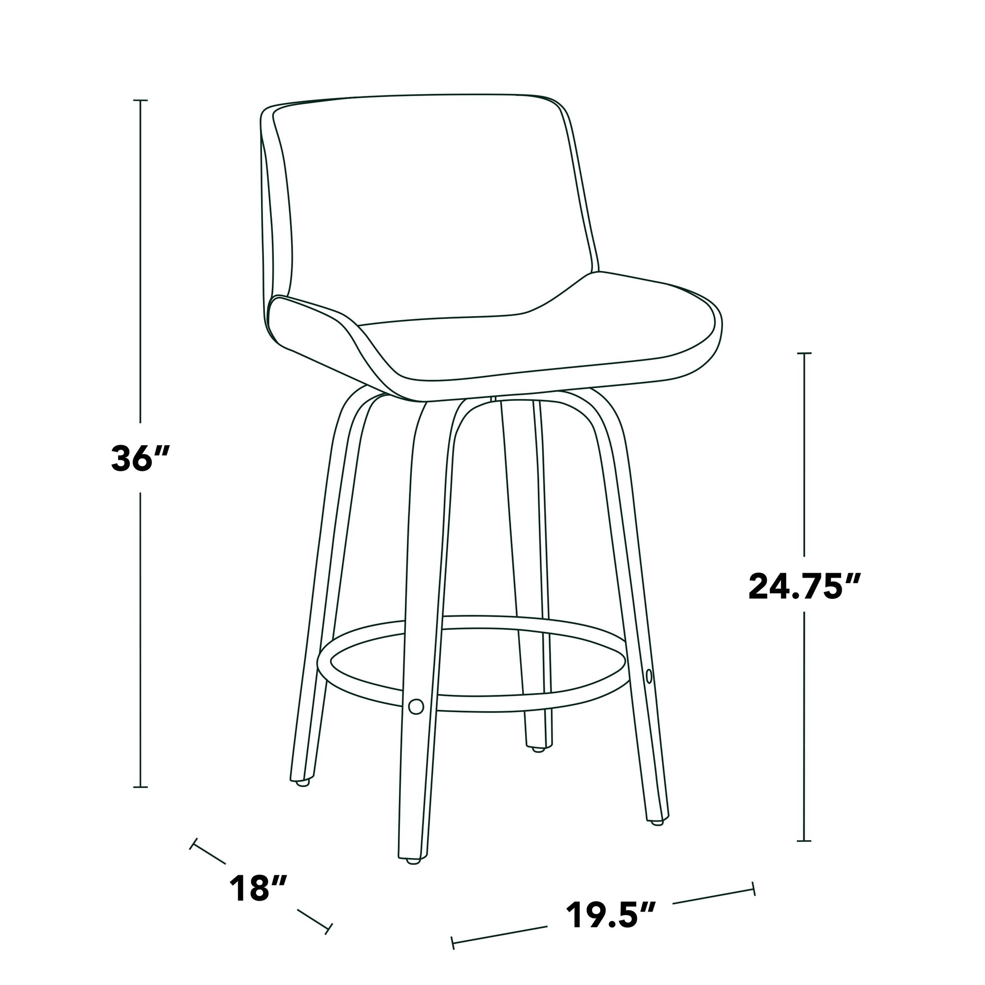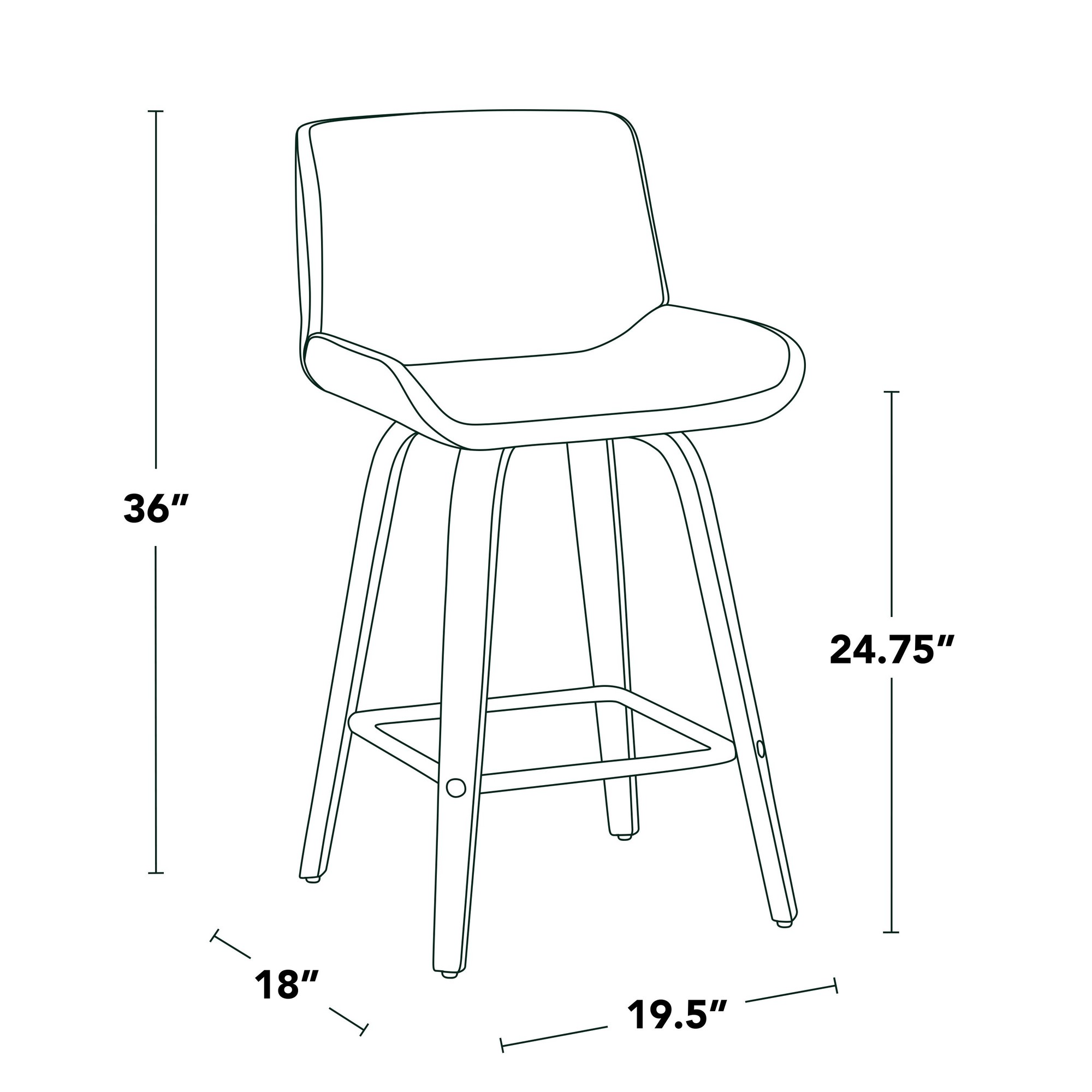 Introduce a touch of refined style to your bar area with these fixed-height counter stools. These bar stools offer a mid-century modern styling that enhances any space. You’ll appreciate the 360-degree swivel, and the seat is covered in a stylish faux leather upholstery. The bent wood legs are strong and sturdy, and there is a square chrome footrest for comfort. This product includes two counter stools. Assembly Required: Yes. Product Specs: 18″L x 19.5″W x 36″H. Color: Walnut Wood, Chrome Metal, White PU. Material: PU Leather, Foam, Metal, Bent Wood.