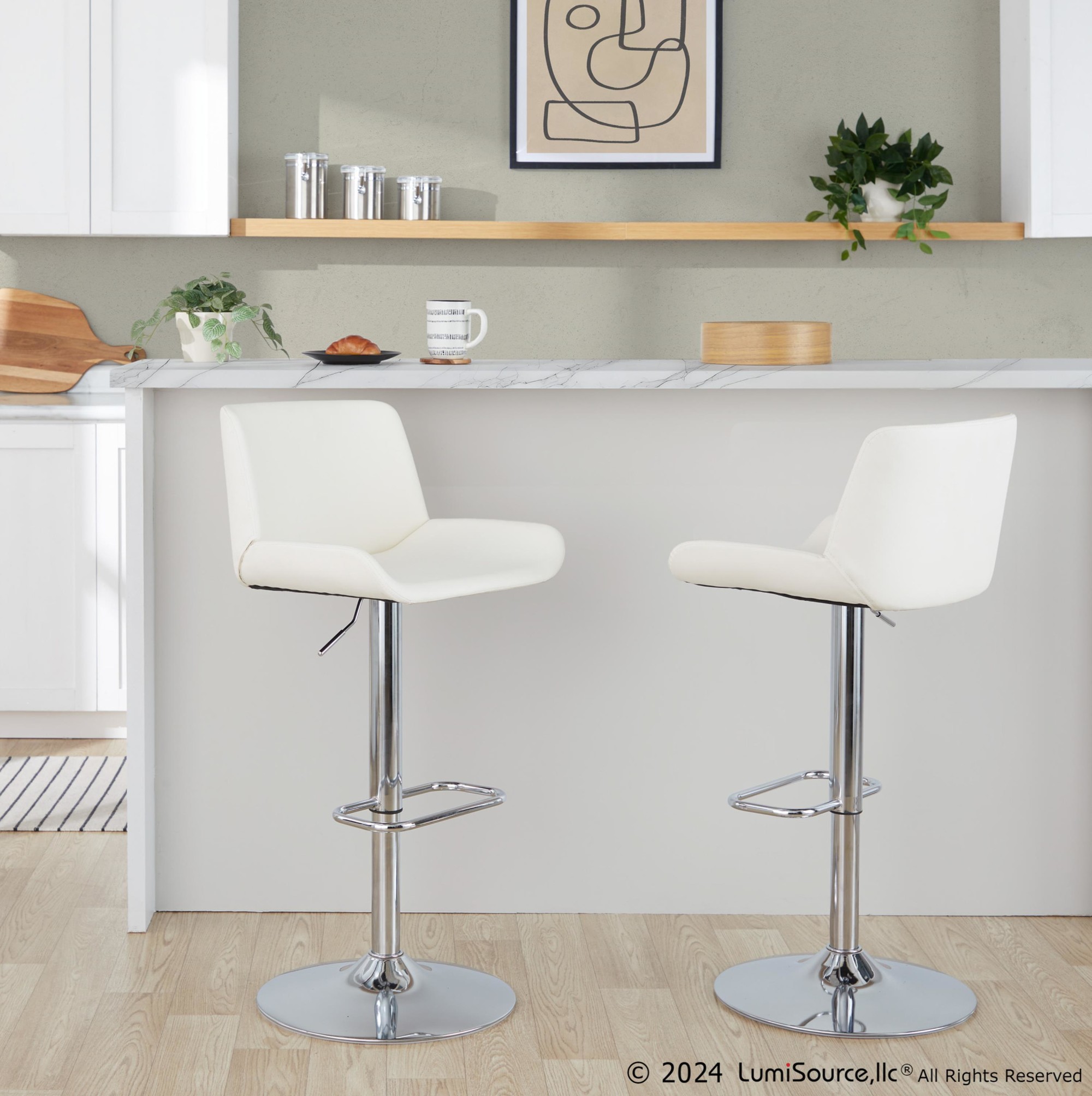 The Santi Upholstered Adjustable Barstool elevates any space with its sleek design and comfortable features. This stool combines modern sophistication with practical functionality, making it an ideal addition to your kitchen island or home bar. The plush faux leather seat, gently curved back, and contoured edges provide both style and support.
