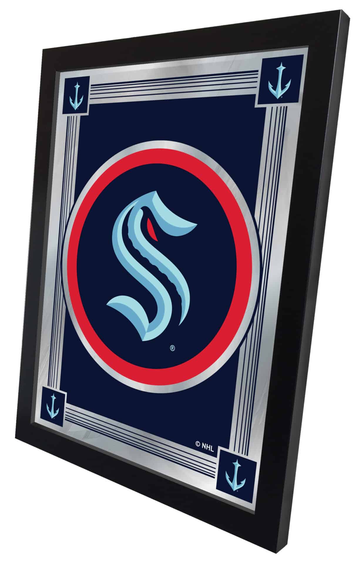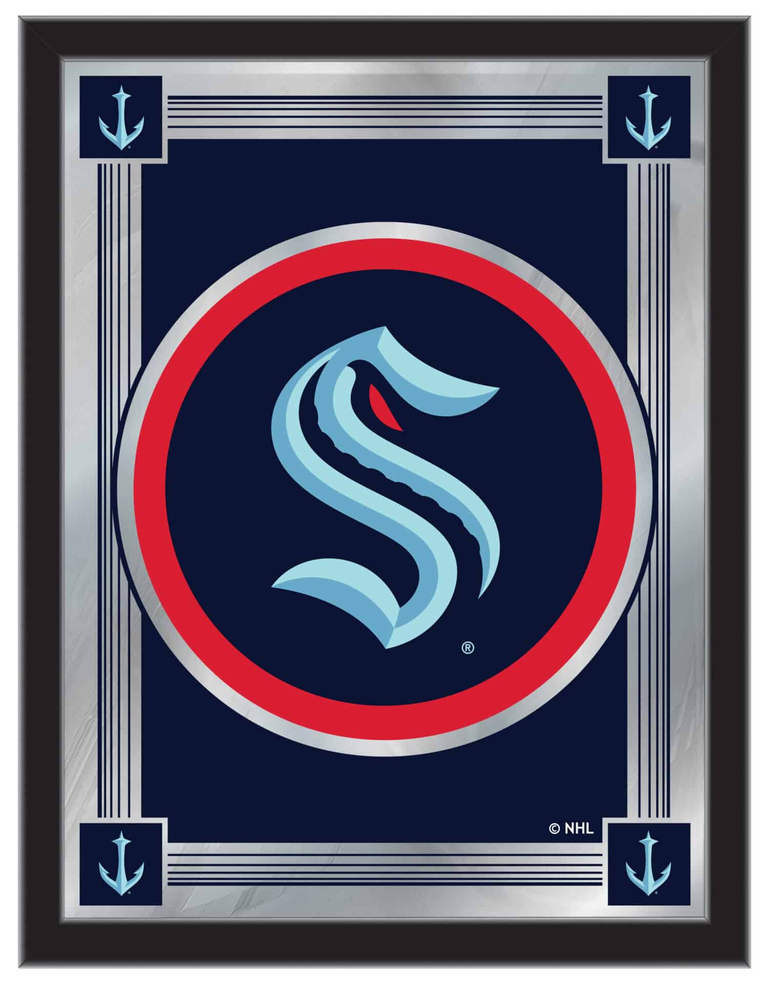Show your team pride with the Official Licensed NHL Logo Mirror. This mirror features a simple yet elegant design, showcasing vibrant colors through the 1/8″ thick glass, beautifully highlighted by mirrored accents. The mirror is framed with a sleek black, 1 1/4″ wrapped wood frame, complete with saw-tooth hangers for easy installation. Measuring 17″ wide by 22″ high, it is perfect for your office, garage, or any room in your home. Whether you’re treating yourself or gifting a superfan, this mirror is a stylish way to display your team spirit.
