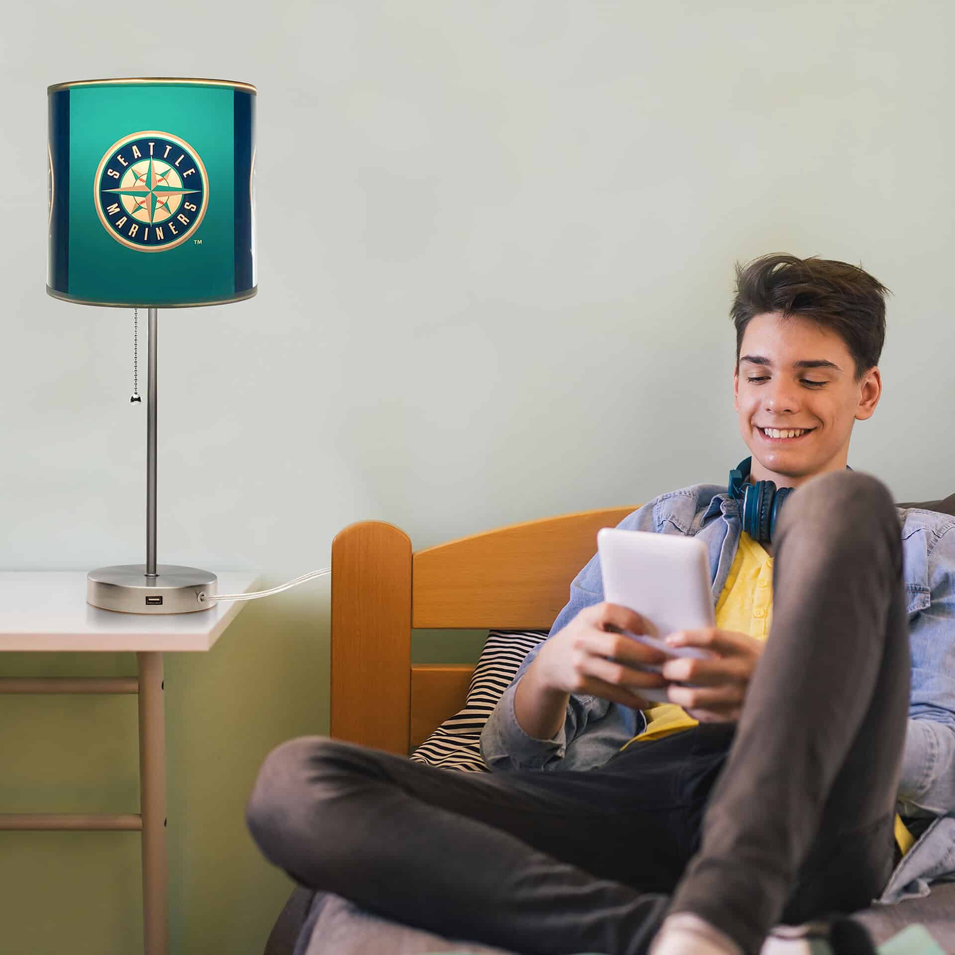 This sleek chrome lamp with a USB charging station is a perfect addition to any room in your home or office. It comes complete with a clear vinyl lamp shade and a printed insert featuring your favorite team’s design. The unique, patented lamp shade program allows you to easily update your room’s décor by purchasing new stand-alone inserts with different designs. This offers a fast and affordable way to refresh your space. The included lampshade insert features a high-resolution design and is officially licensed. The USB charging station keeps your devices charged and ready to go.