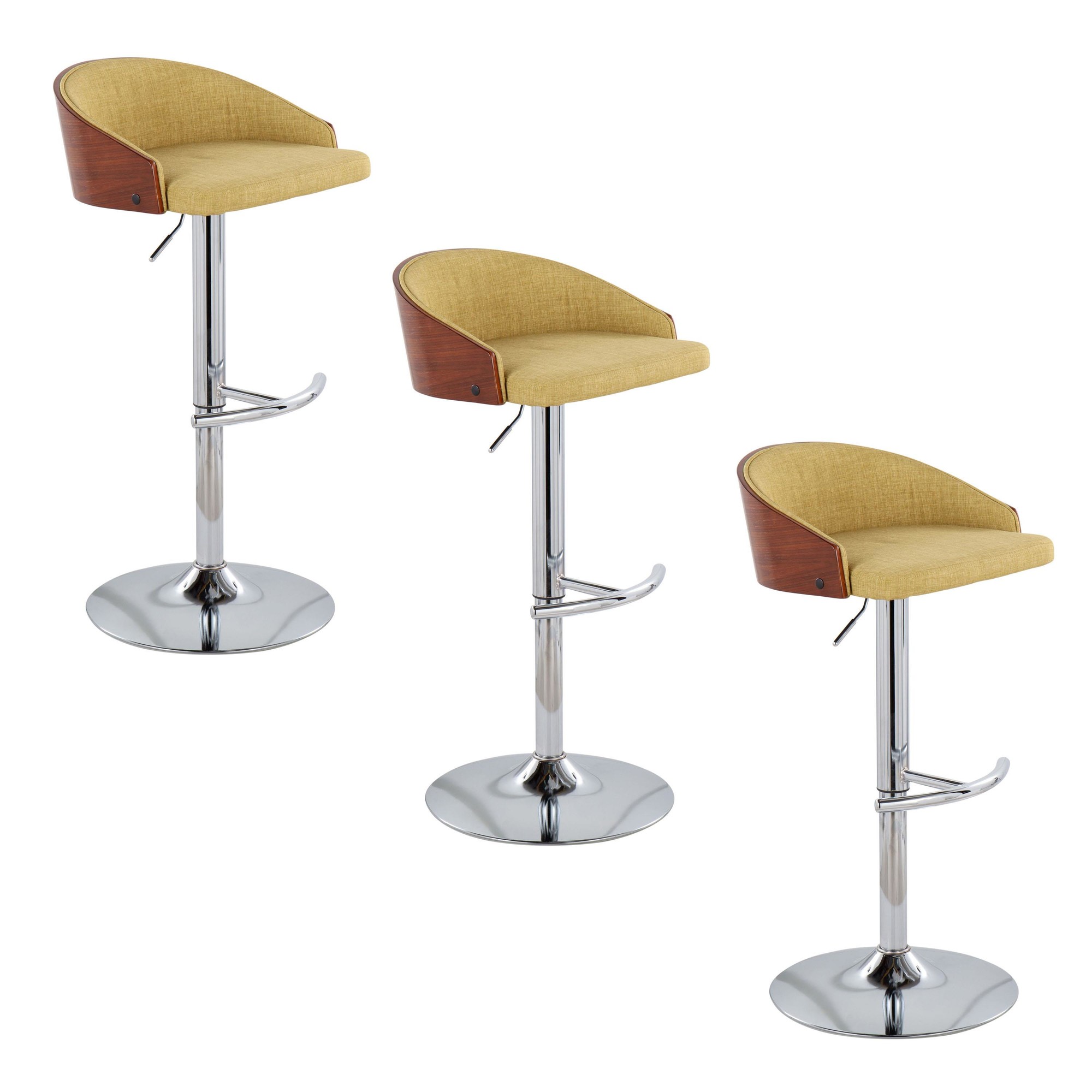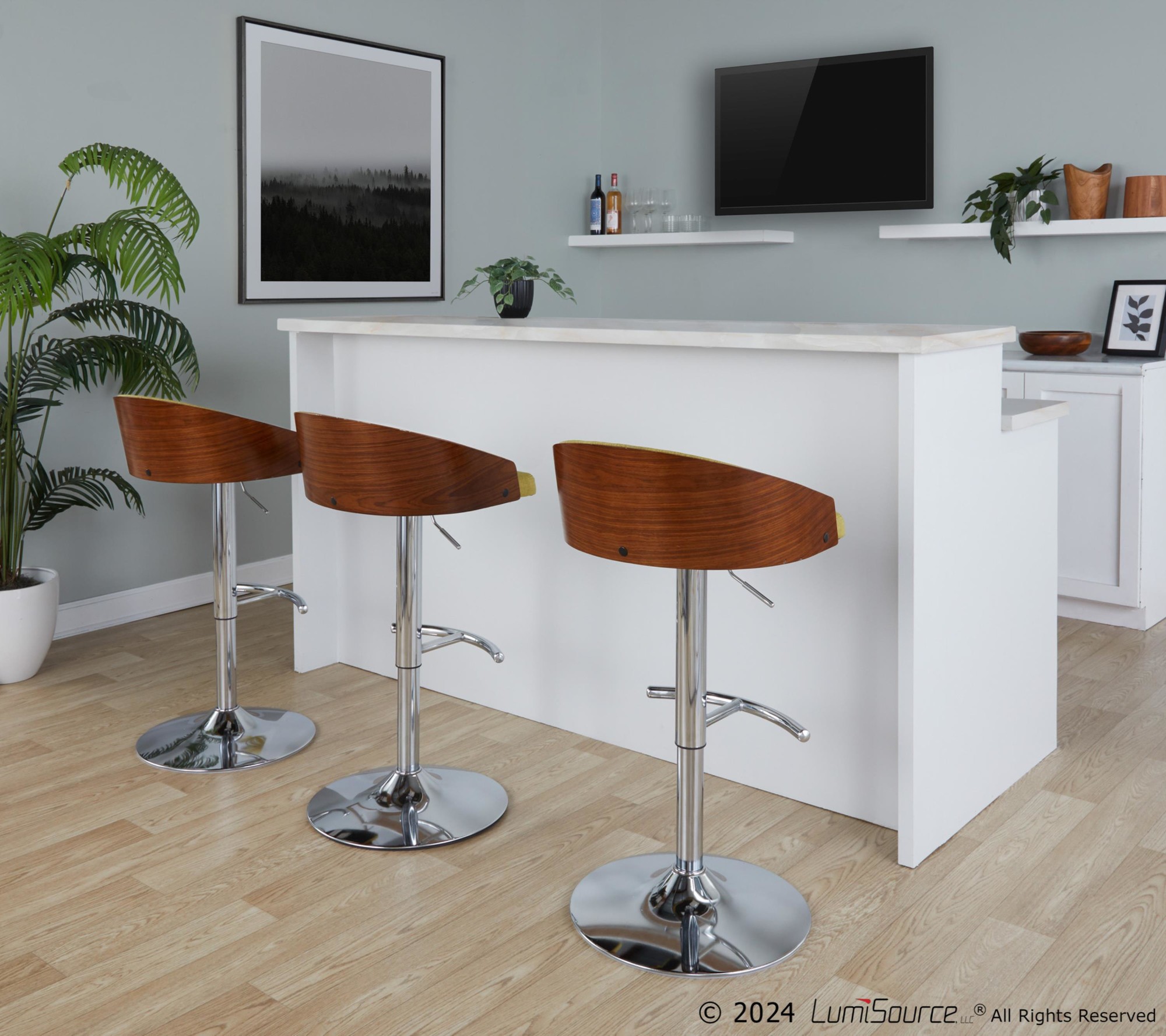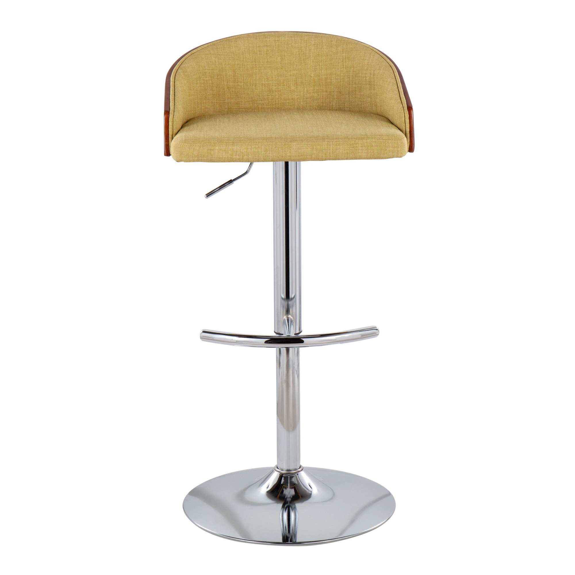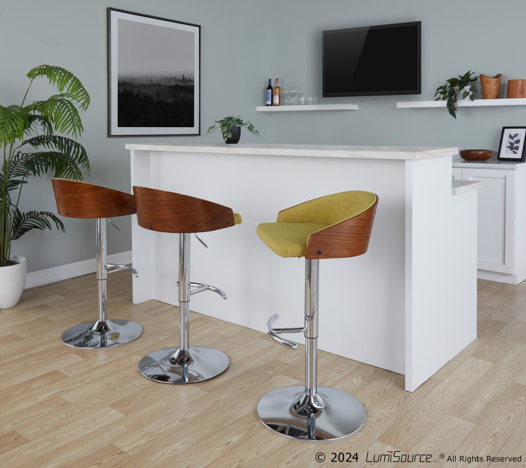 The Shiraz Barstool adds a dynamic twist to any bar or counter area. Enjoy the stylish combination of woven fabric upholstery and walnut-finished bent wood. The adjustable chrome base makes this barstool a versatile and perfect option for any space.