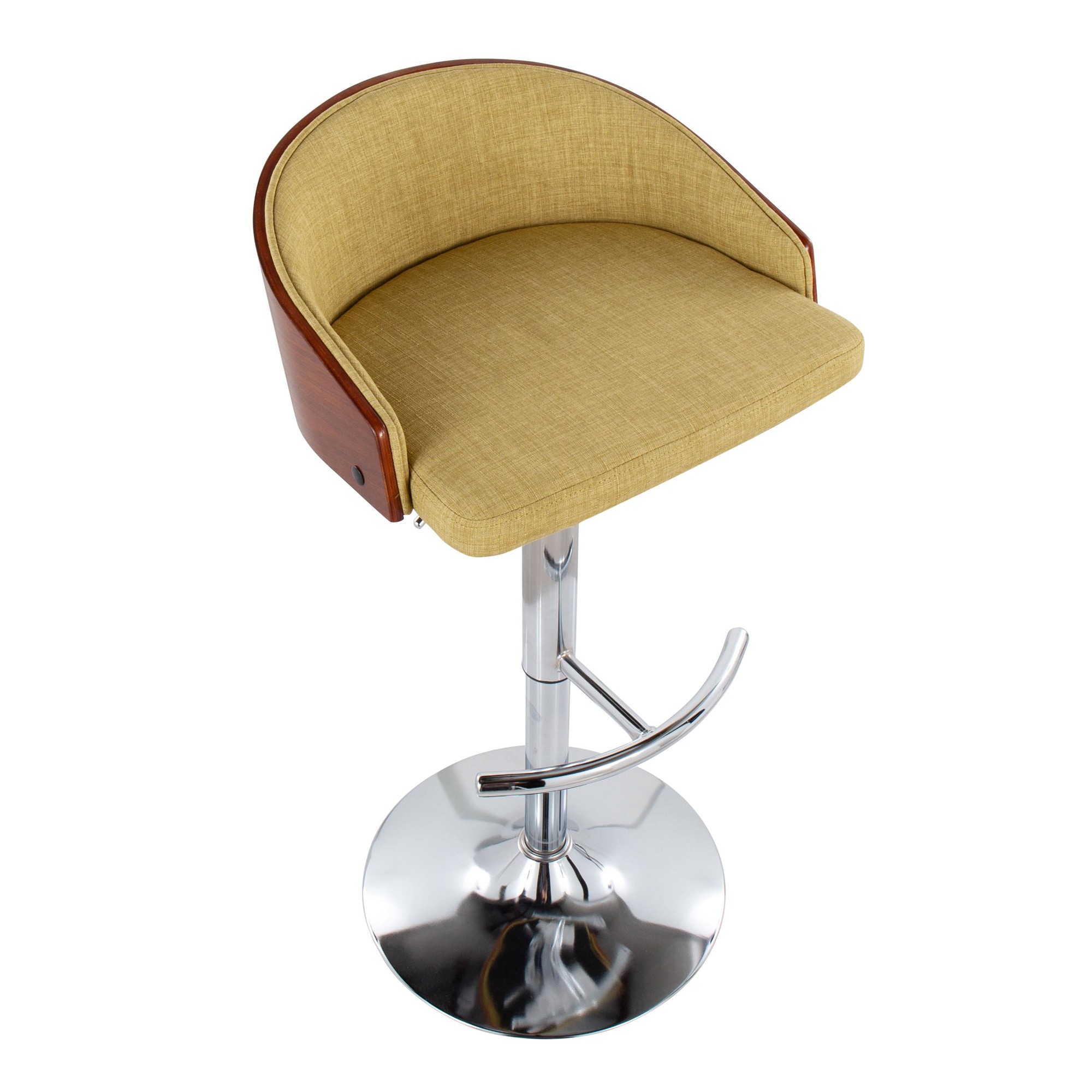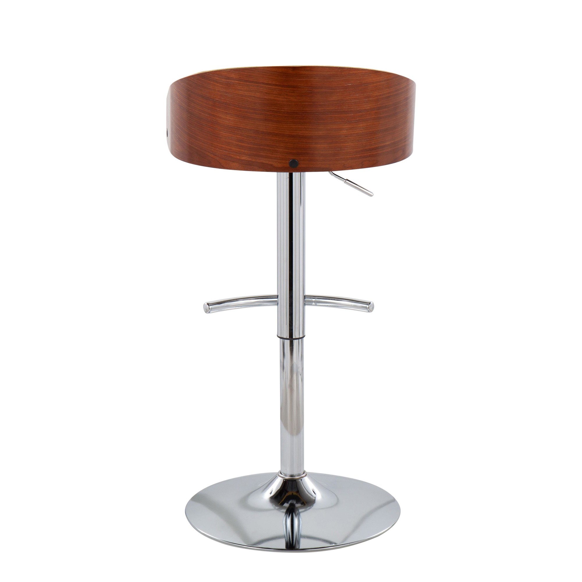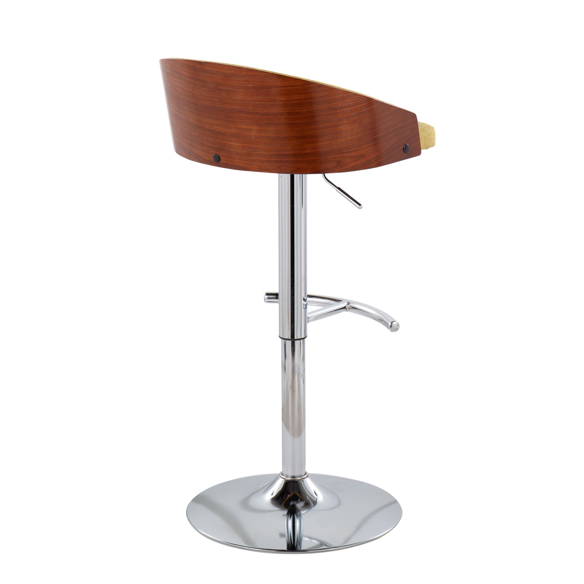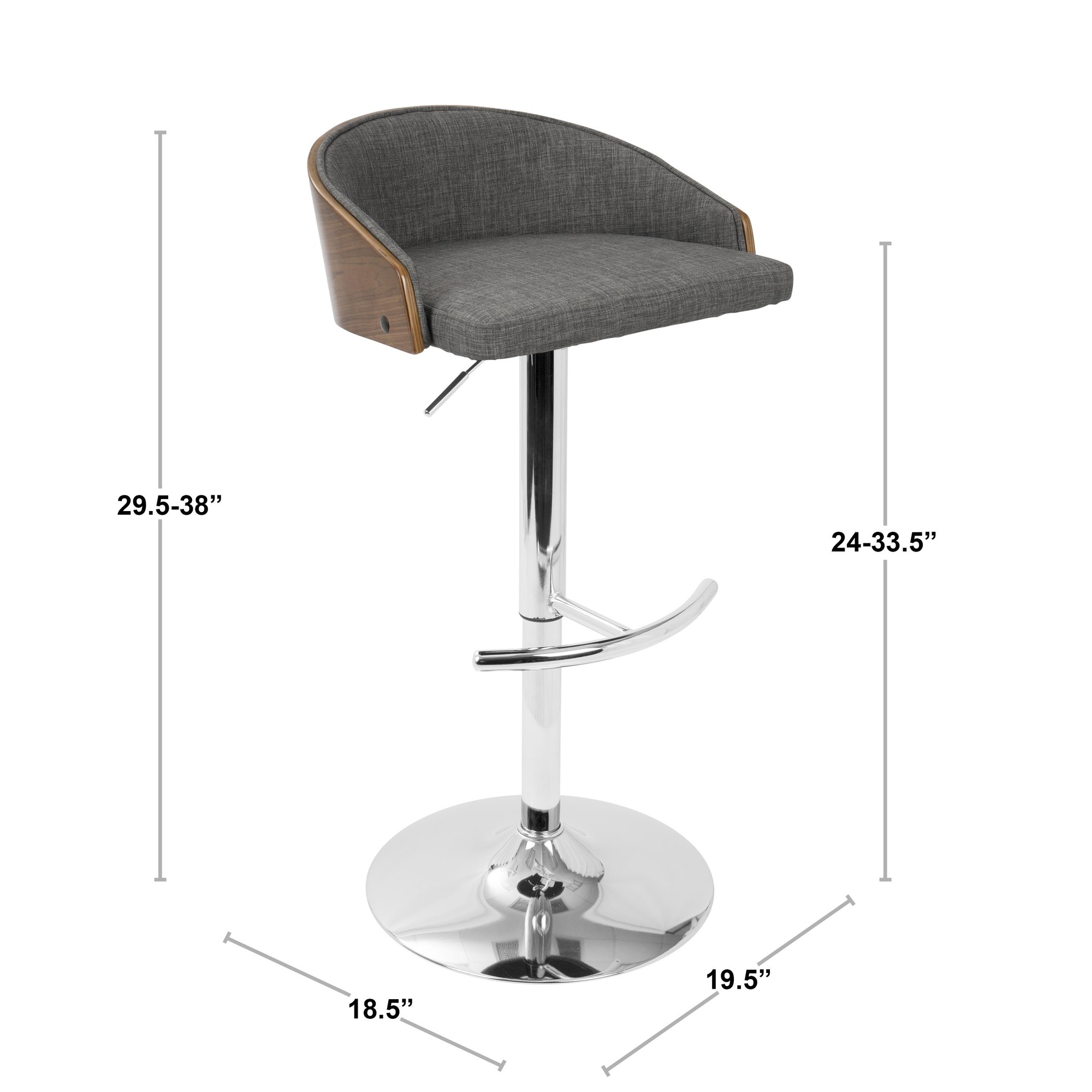The Shiraz Barstool adds a dynamic twist to any bar or counter area. Enjoy the stylish combination of woven fabric upholstery and walnut-finished bent wood. The adjustable chrome base makes it a perfect fit for any space.