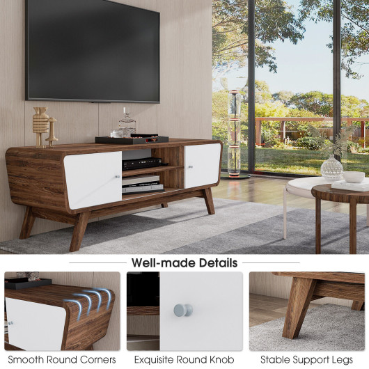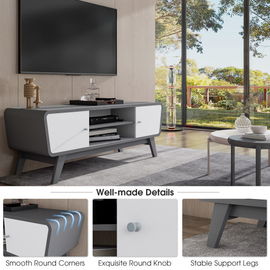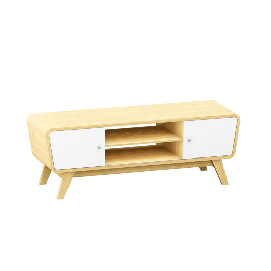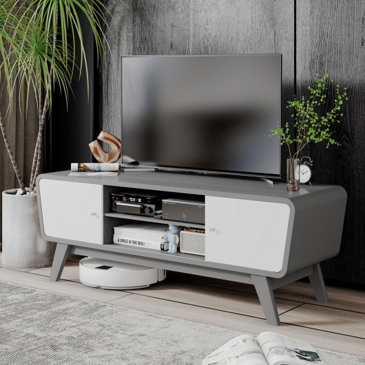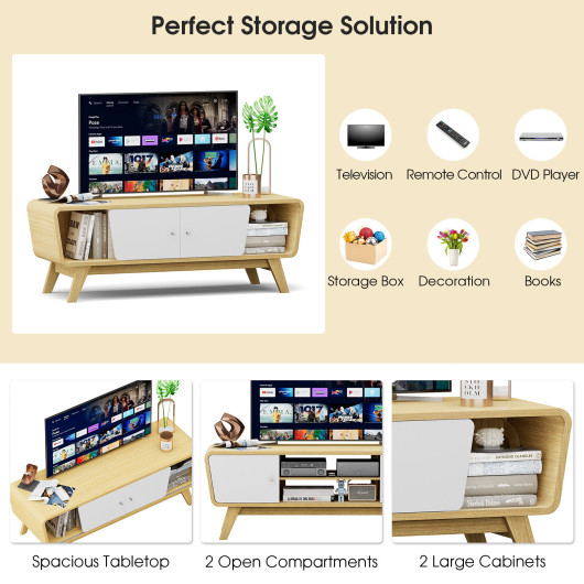 This well-designed TV stand is a perfect combination of practicality and aesthetics. It features a spacious desktop that supports TVs up to 55 inches, along with sliding doors and an adjustable open shelf to provide versatile storage options. Its modern design and elegant appearance make it an excellent addition to any living space, adding both functionality and style. Whether used as a TV table or a display stand, this piece is sure to enhance your home decor while keeping your space organized.