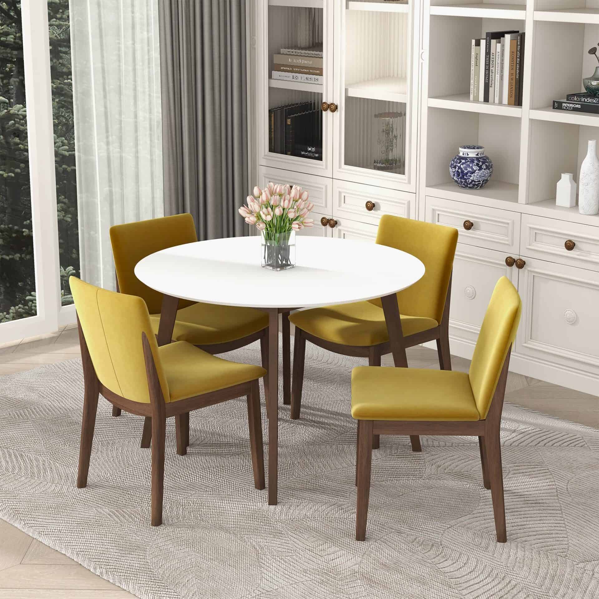 The Solid Wood White Dining Table with Walnut Base Finish combines modern design with dependable durability, making it a perfect centerpiece for your dining area or man cave. Crafted from 100% kiln-dried solid wood, this table features a smooth, easy-to-clean white top paired with a contemporary dark walnut-stained base, providing both style and practicality. The sturdy construction ensures strength and longevity, while its sleek finish complements a variety of interior aesthetics. Minimal assembly is required, allowing you to enjoy your new table in no time.