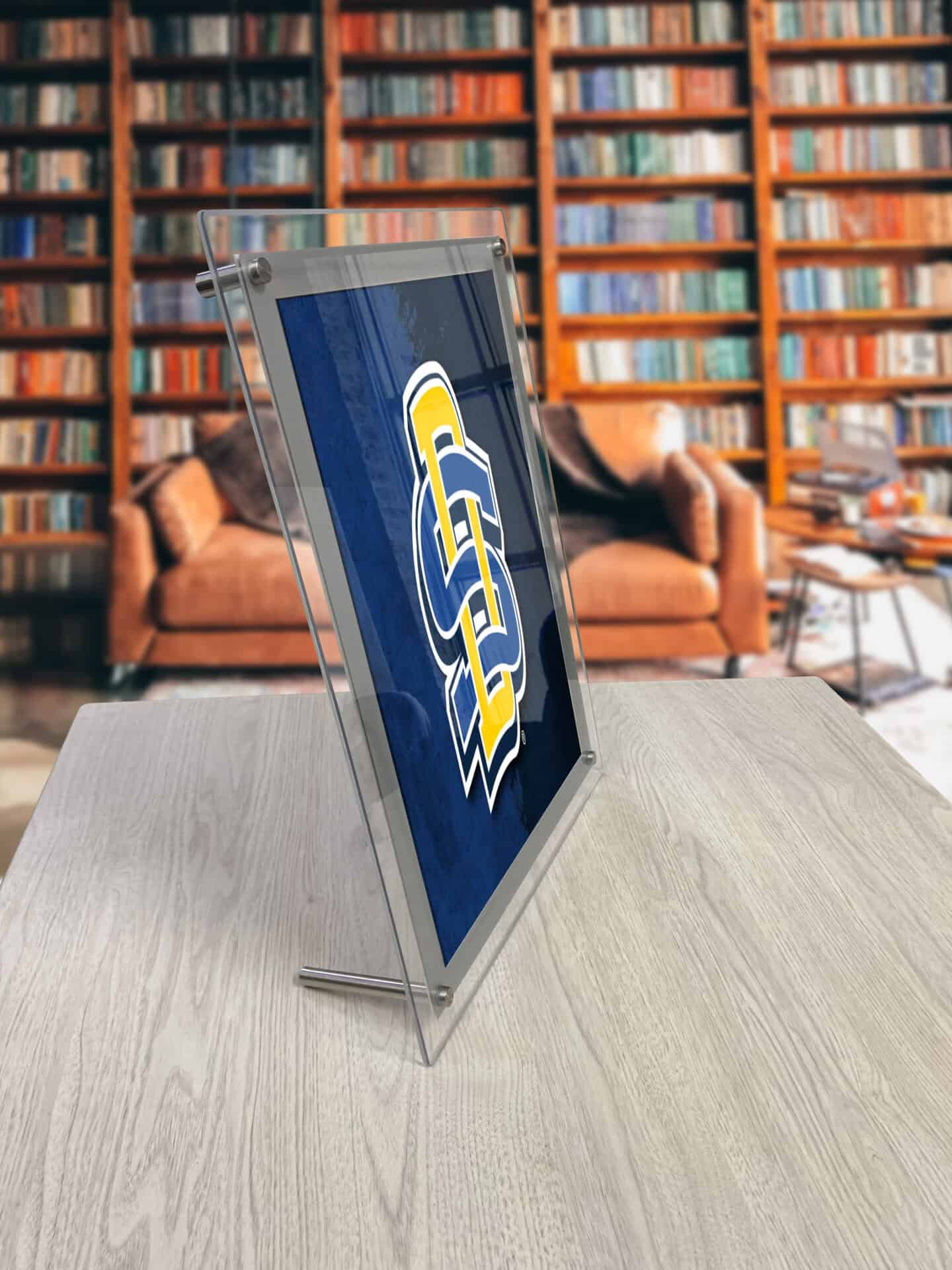 - Mounting: Includes hardware for wall mounting (1″ Stand-offs) or desktop display (3 3/4″ foot).