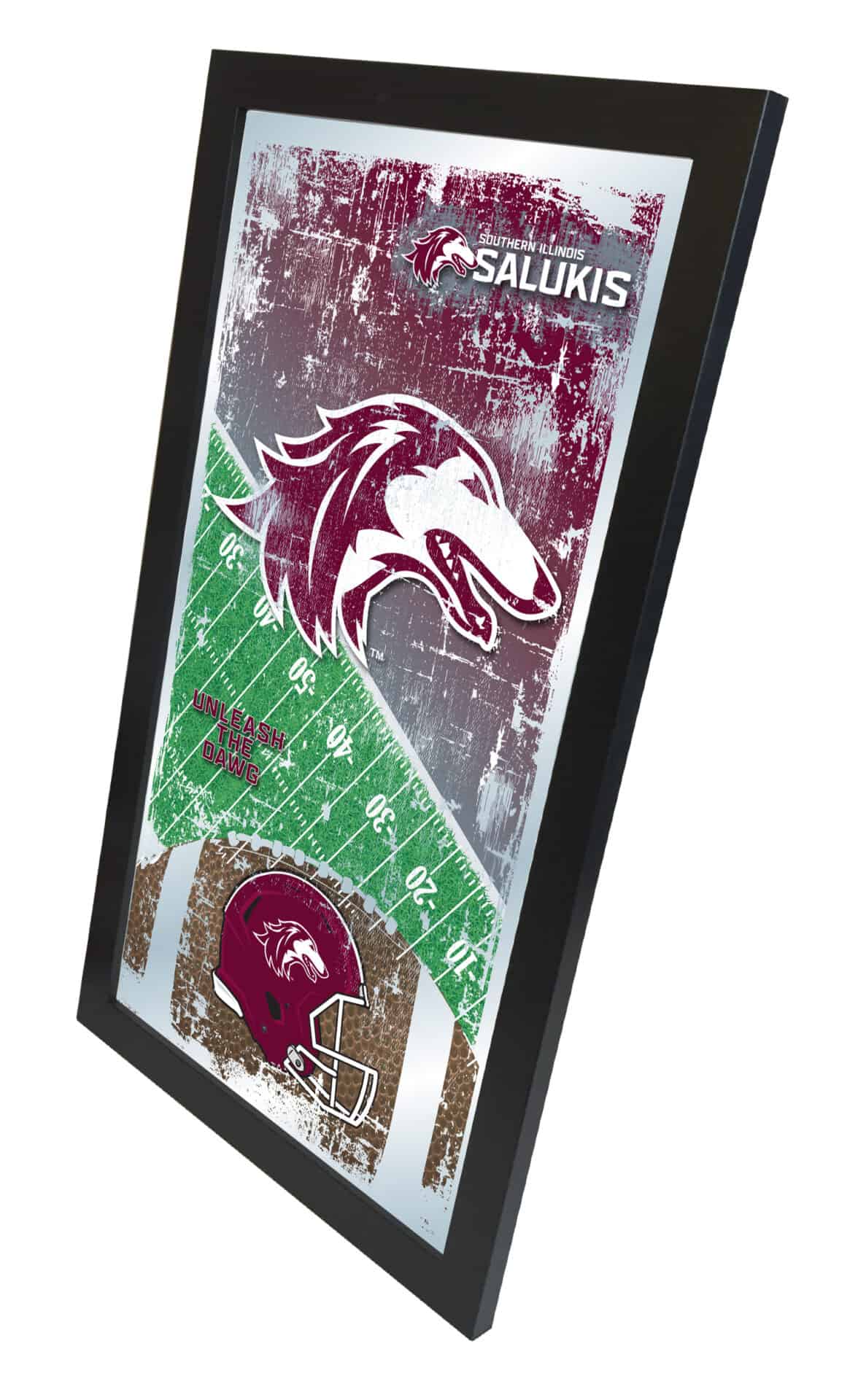 Show your school pride with this Official Licensed Football Mirror. With its simple yet elegant design, colors burst through the 1/8″ thick glass and are highlighted by mirrored accents. Framed with a sleek black, 1 1/4″ wrapped wood frame and equipped with saw tooth hangers, this mirror, measuring 15″(H) x 26″(W), is perfect for your office, garage, or any room in the house. Whether as a gift for a recent graduate, a sports super fan, or for personal use, this mirror adds a touch of style and pride to any space.