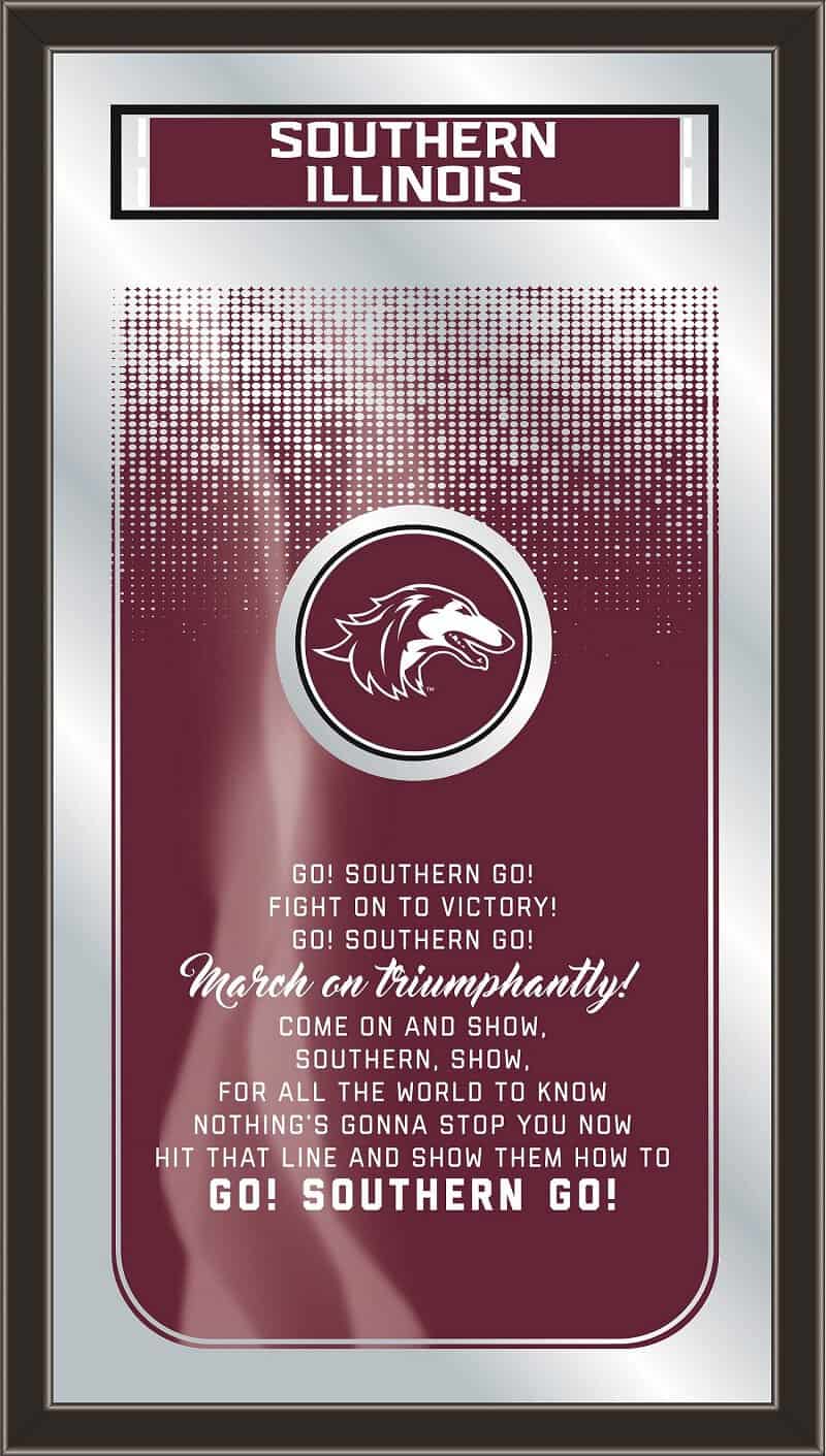 The Southern Illinois University 26×15 Fight Song Wall Mirror is the perfect way to showcase your school pride. Featuring vibrant full-color artwork and the inspiring verses that energize fans on game day, this mirror combines functionality with style. The elegant design, highlighted by mirrored accents, enhances any room’s decor, whether it’s your office, garage, or man cave. The robust black wood frame and saw tooth hangers make installation a breeze, making it an ideal gift for recent graduates or sports enthusiasts alike.