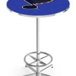 Elevate your bar, game room, or man cave with this high-quality, officially licensed pub table that combines style, durability, and functionality. Designed with a sublimated, full-color, scratch-resistant laminate top, this table makes a bold statement while ensuring long-term usability. The sturdy star base is constructed from plating-grade steel and triple chrome-plated for a sleek, long-lasting finish. Its adjustable floor glides provide stability on uneven surfaces, making it a perfect addition to any setting. Simple assembly ensures you can enjoy this table in no time.