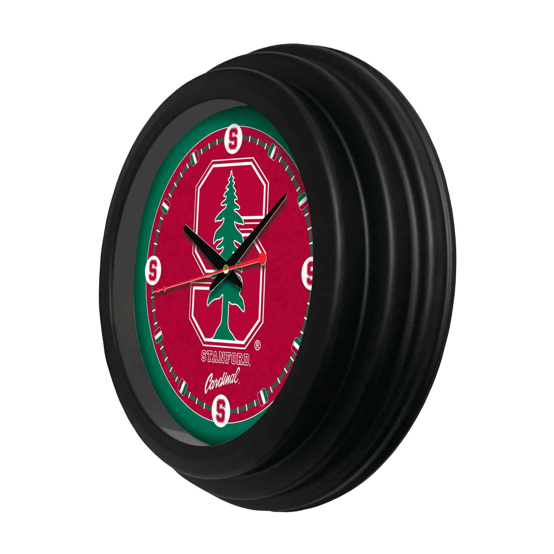 This black cased 15-Inch Traditional Logo Clock is the ideal addition to showcase your school pride. Featuring vibrant, full-color digitally printed graphics that are protected by a glass lens face, this officially licensed clock combines style with functionality. The accurate quartz movement ensures precise timekeeping and operates on a single AA battery (not included). The recessed hanger allows for a flush mount against the wall, creating a clean and polished look. Whether as a gift for a recent graduate, a sports super fan, or for personal use, this clock is a statement piece that reflects your enthusiasm.