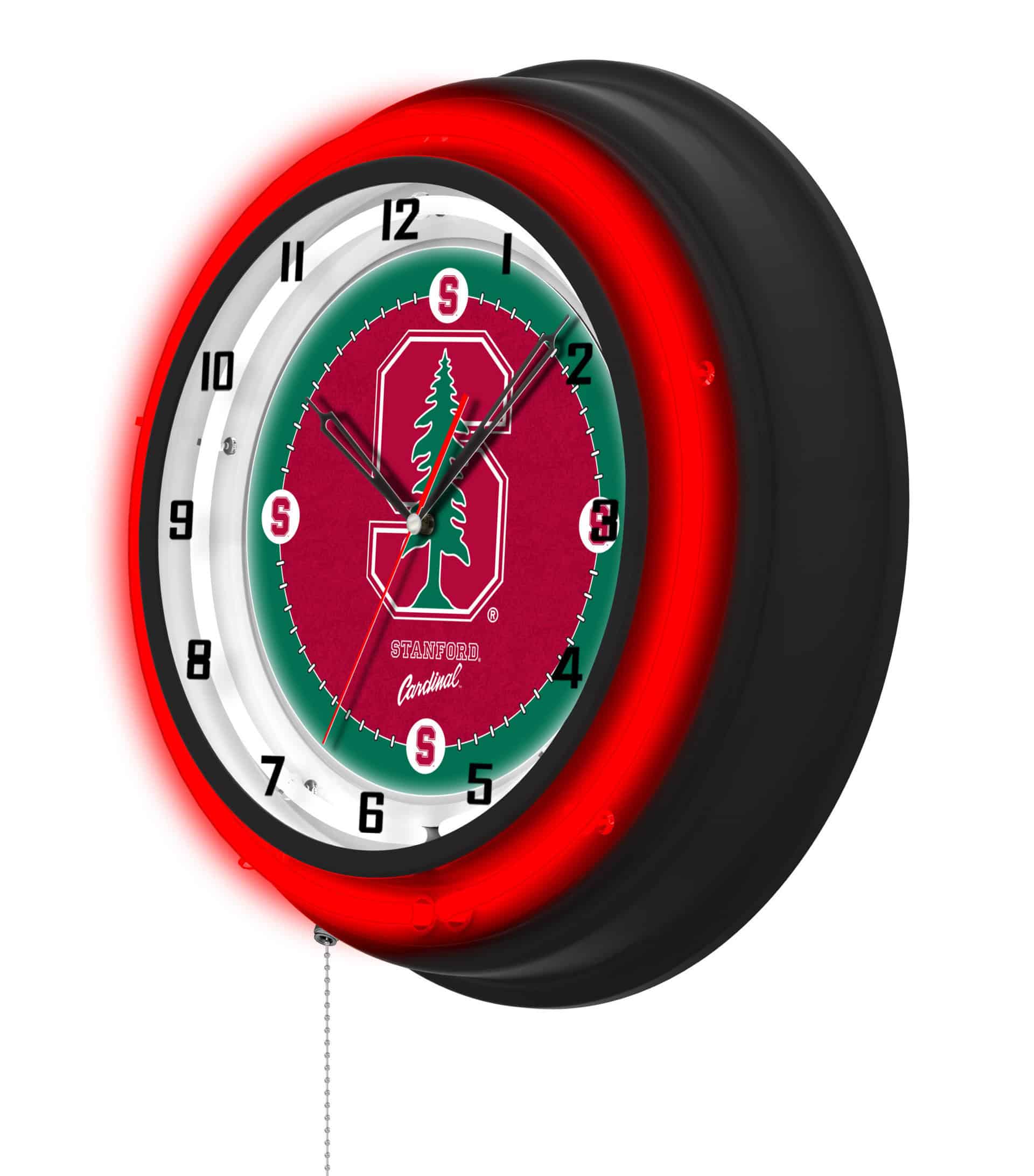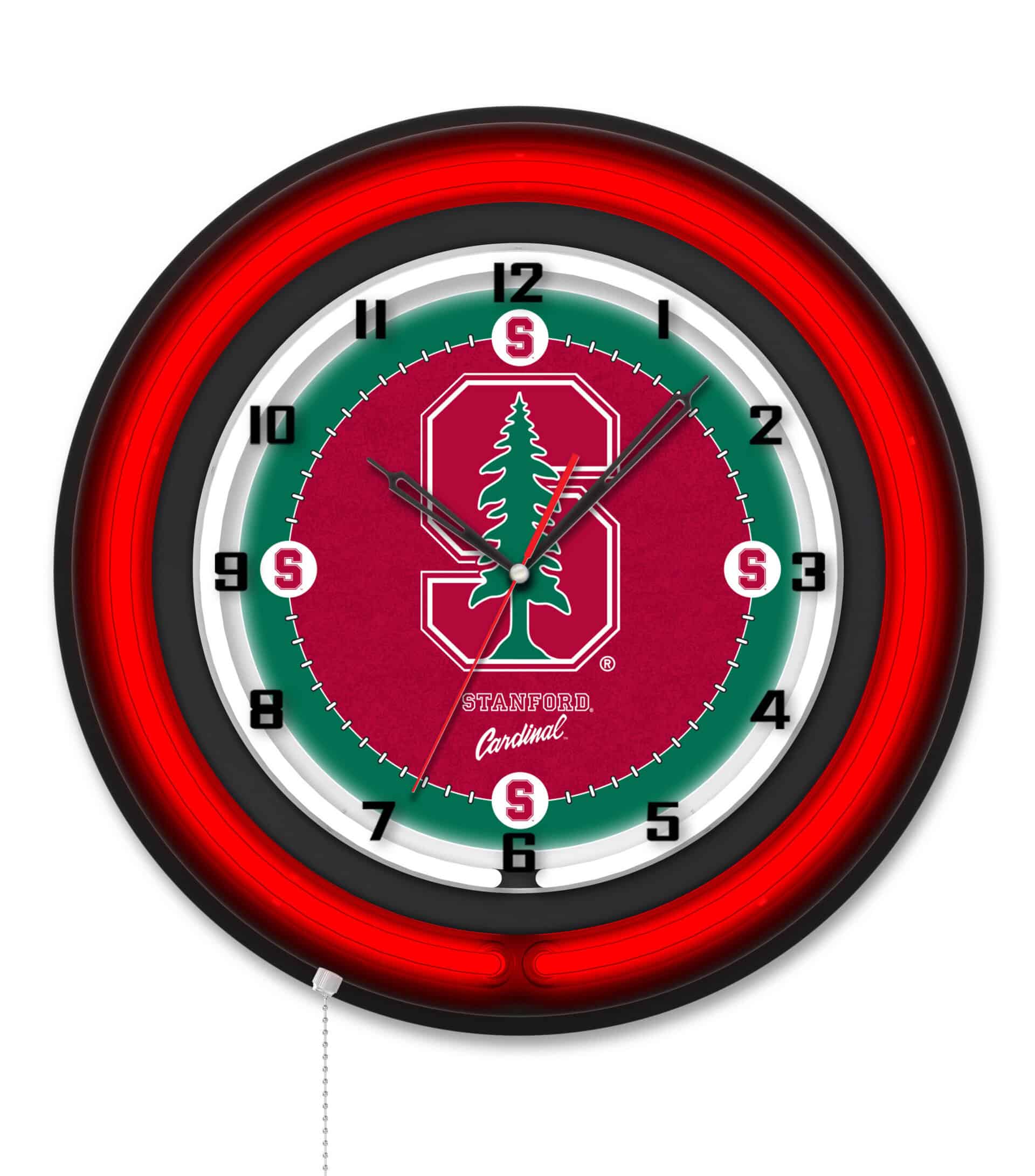 The “Stanford University 19-Inch Neon Logo Clock in Black” is a stylish and functional addition to any space, perfect for showcasing your school pride. This clock features a sleek black casing with a vibrant neon outer ring that complements the custom printed clock face, illuminated by a brilliant white inner neon ring. The neon rings can be easily activated or deactivated with a convenient pull chain, making it simple to create the perfect ambiance. Powered by a standard 120V outlet, this clock also utilizes accurate quartz movement for precise timekeeping, requiring only a single AA battery (not included). Ideal as a gift for graduates, sports enthusiasts, or as a standout piece for your own collection, this clock is sure to impress.