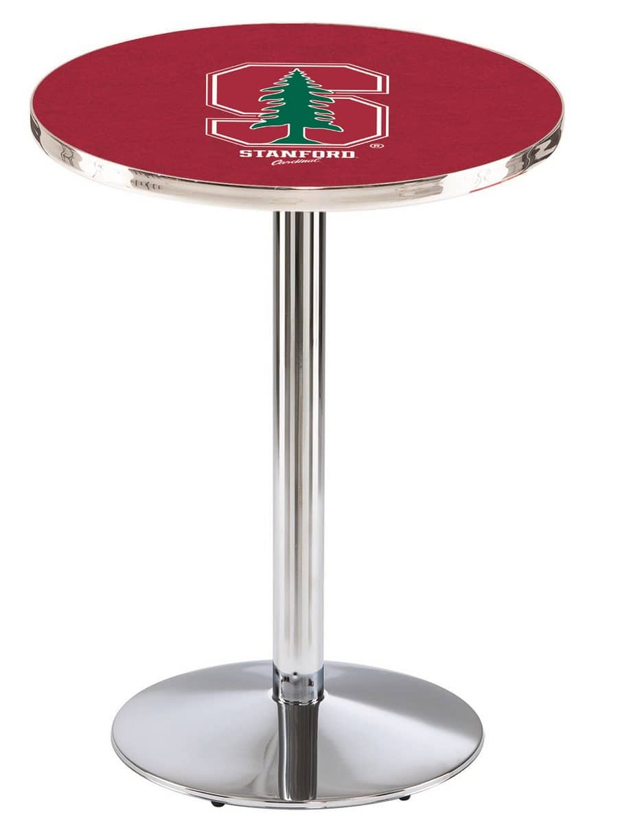 Enhance your bar, game room, or man cave with this stylish and durable pub table. Designed for the ultimate fan, this high-quality table includes a scratch-resistant, vibrant laminate top and a sleek chrome-finished base. The commercial-grade construction ensures long-lasting stability and functionality, while the modern design adds a touch of class to any setting.