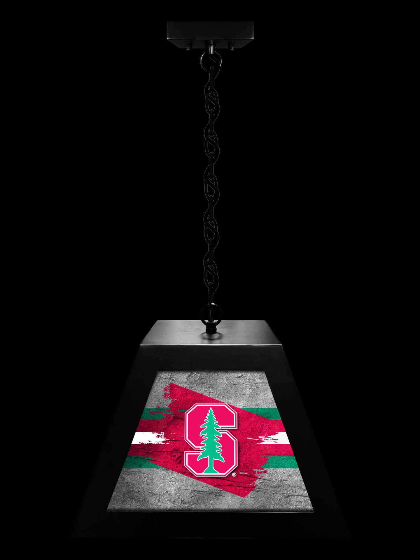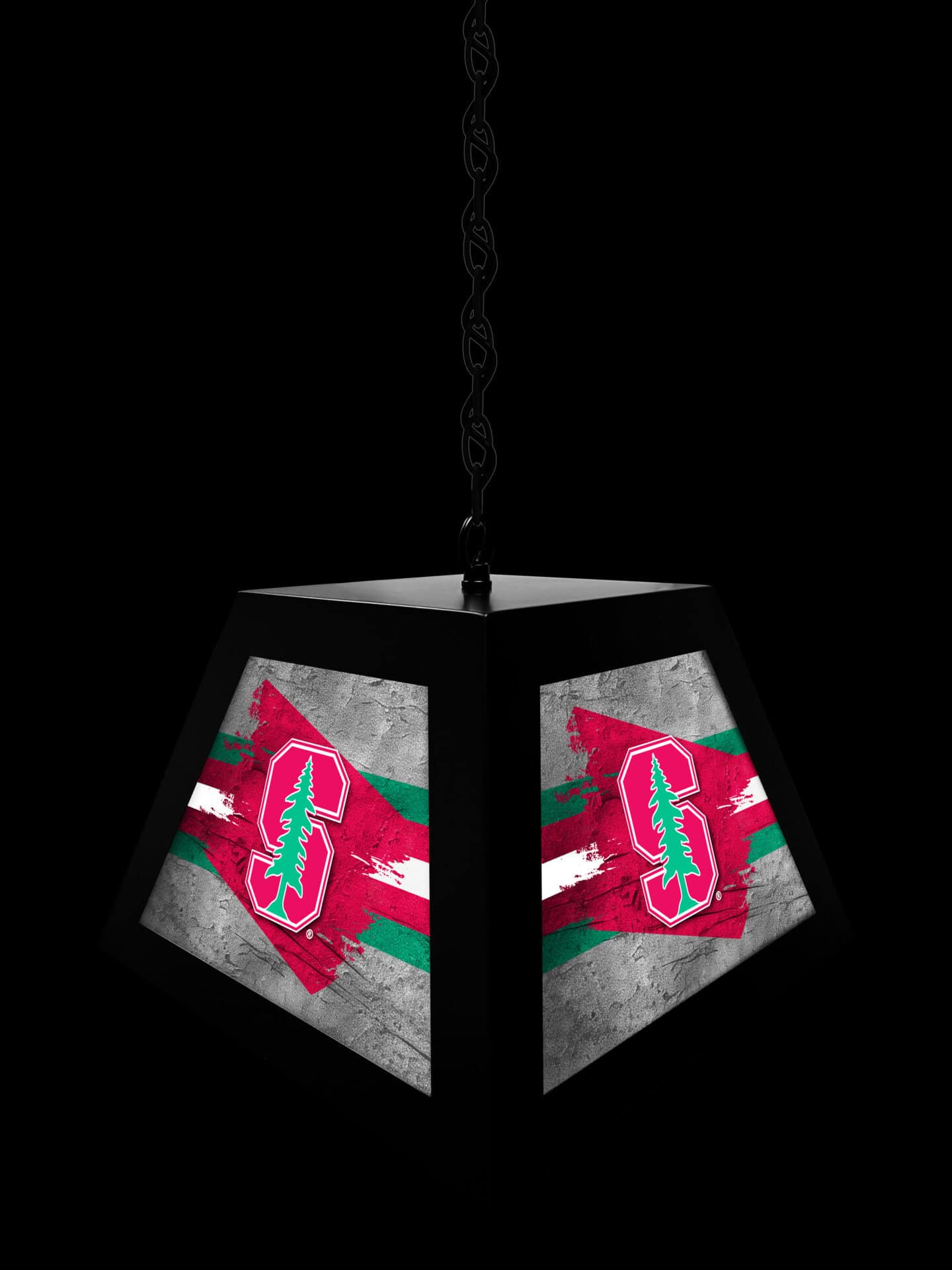 Add a touch of class and team spirit to your game room, bar, or billiard area with the Stanford University Pendant Box Light. This suspended light fixture combines a robust metal frame with a bright, backlit design, making it perfect for illuminating your favorite game tables, bars, and pub tables. The vibrant, digitally printed graphics and durable construction ensure years of enjoyment.