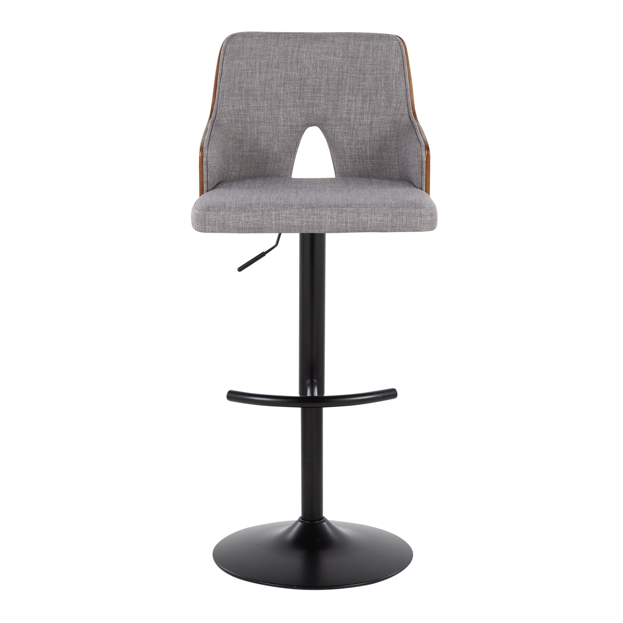 The Stella Adjustable Barstool offers a playful yet refined design, blending spirited style with sophisticated elements. Its distinctive peek-a-boo wood back, complemented by understated wood armrests and a comfortable fabric seat, makes it a perfect addition to any space. The adjustable metal base enhances its versatility, easily adapting to various counter heights and decor styles. This design is perfect for any space or decor style.