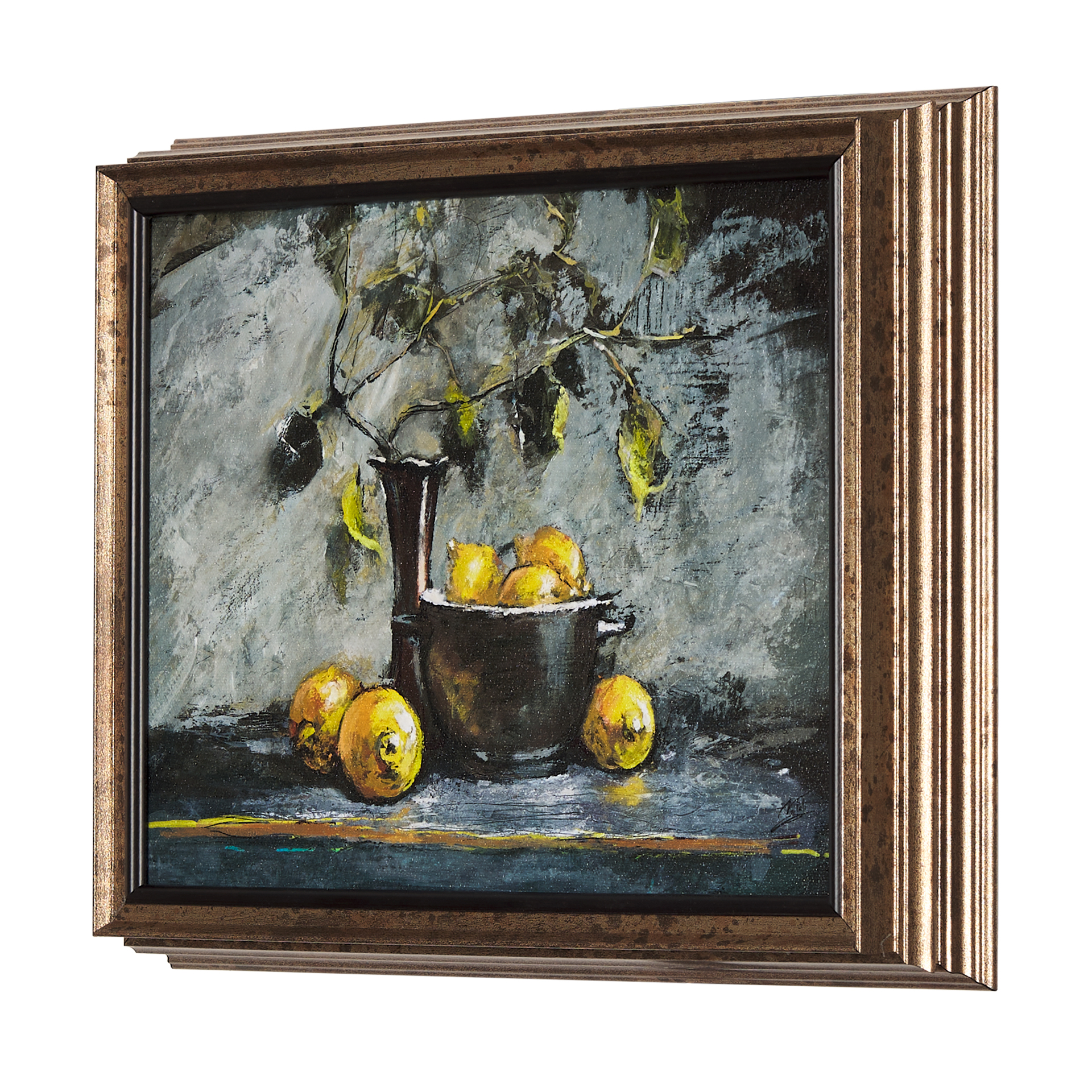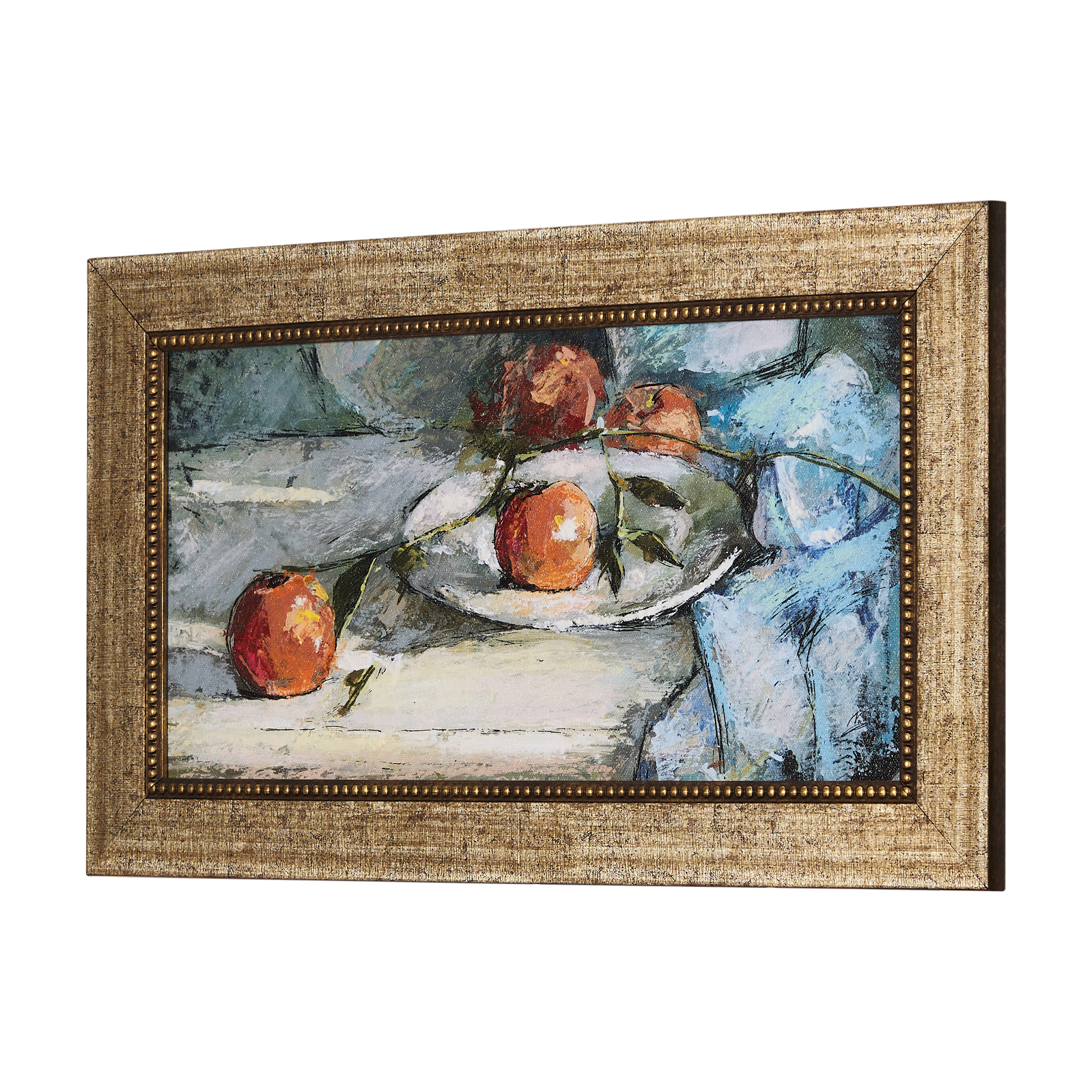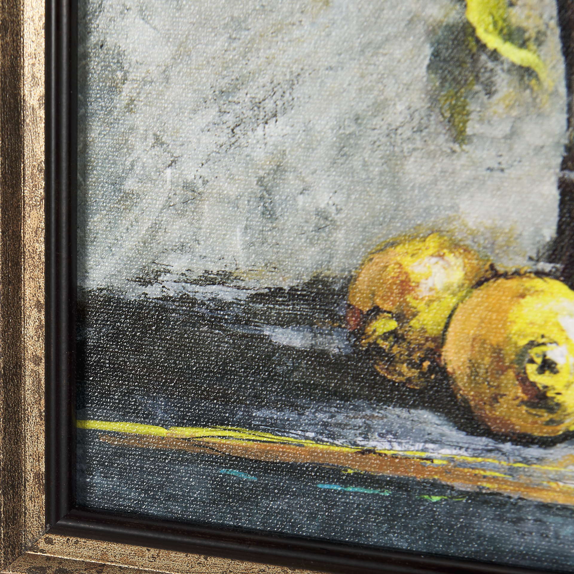 Bring classic artistry to your space with “Still Life with Tangerine.” This hand-embellished, textured framed art print offers a unique visual experience. Its rich texture and careful framing make it a sophisticated addition to any room.