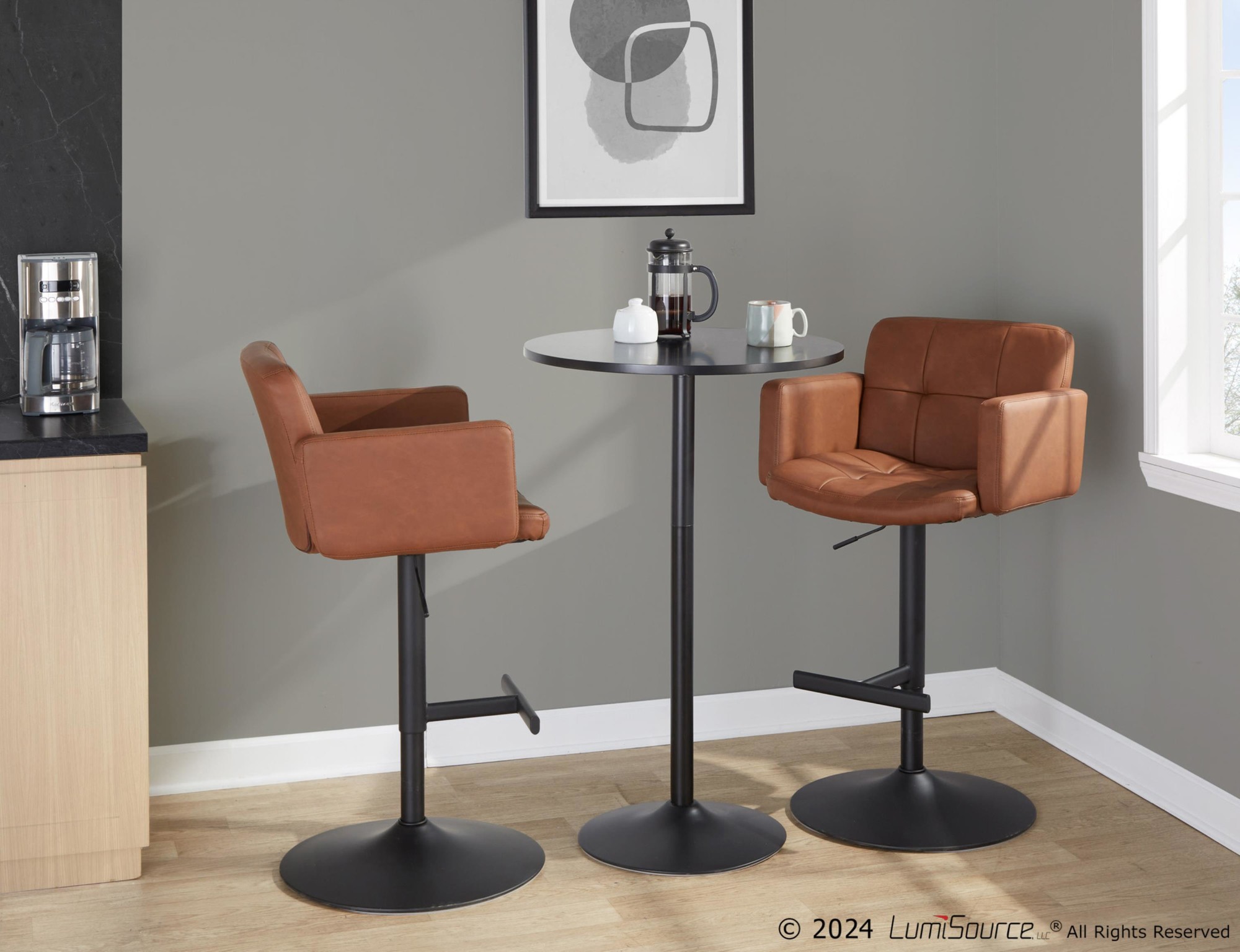 The Stout Barstool offers exceptional comfort and style. With its padded seat, high back, and armrests, this stool is designed for ultimate relaxation. Enjoy the modern styling and adjustable height for a perfect fit at your bar or counter.