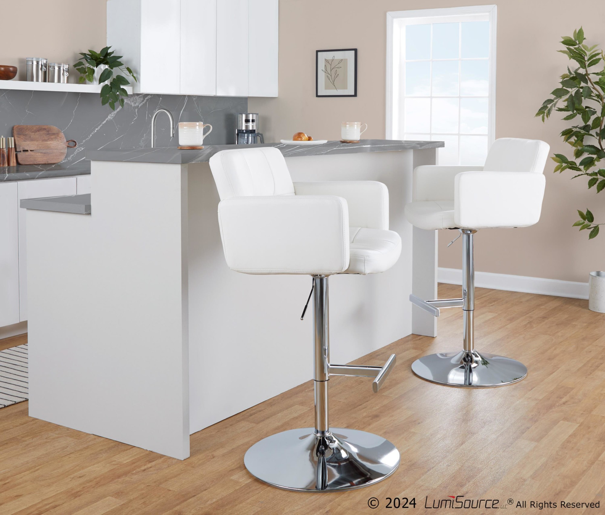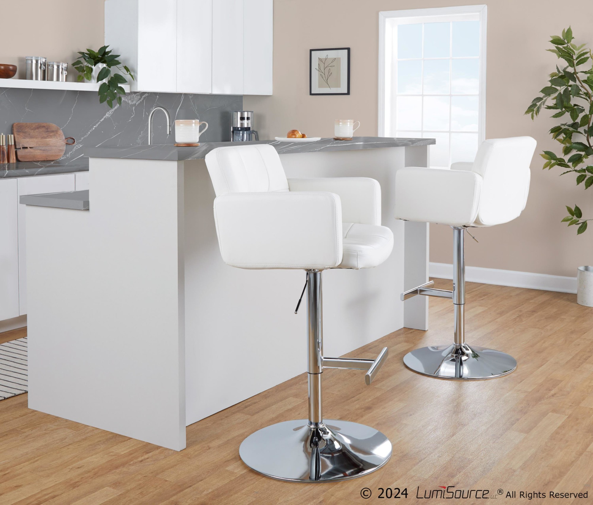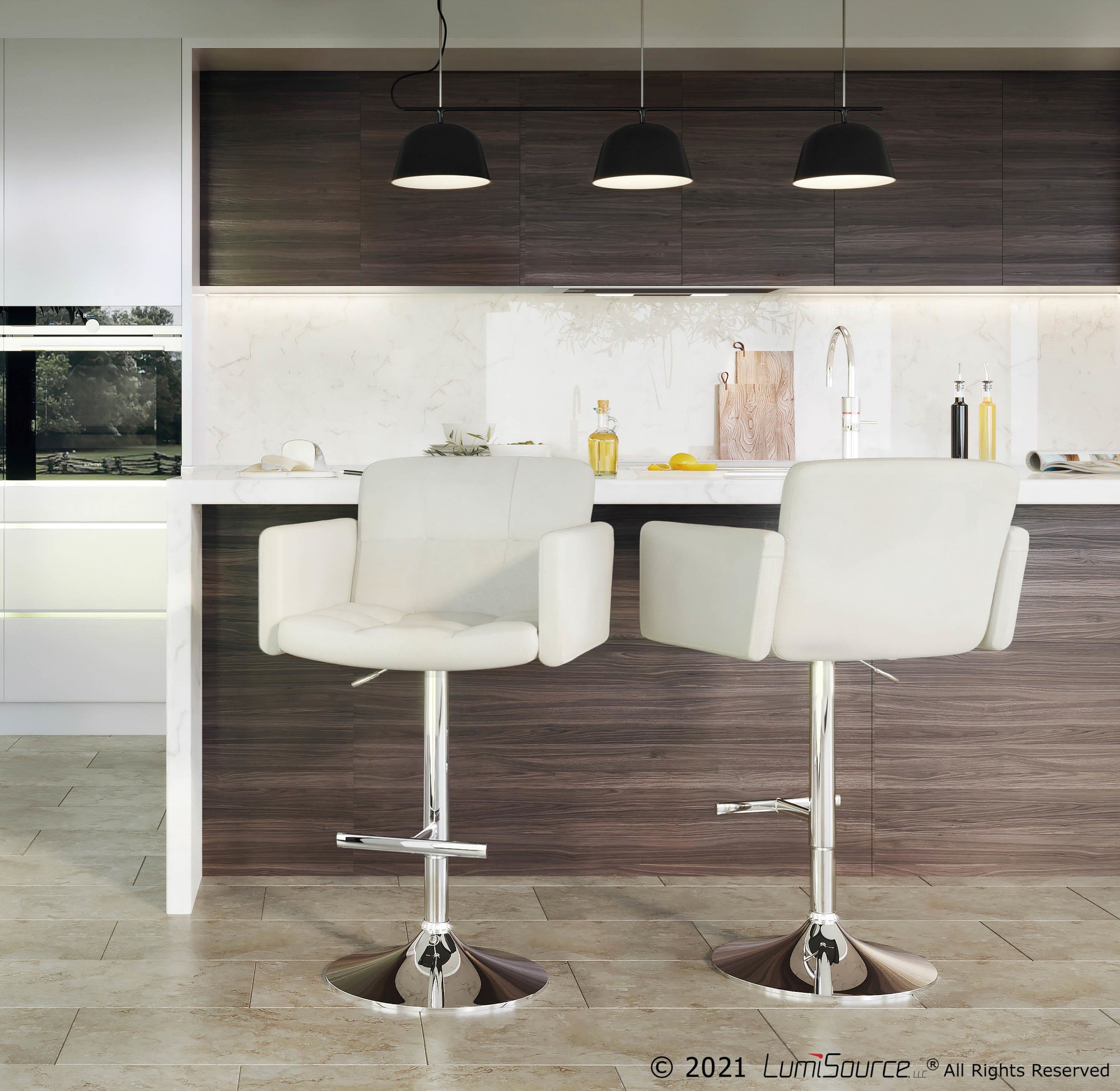 The Stout White Contemporary Adjustable Swivel Barstool is designed for ultimate comfort and style. Its features, including a padded seat, high back, and armrests, create the perfect spot for relaxation in your man cave. Enjoy the flexibility of adjusting the seat height and the convenience of a 360-degree swivel while adding a touch of contemporary flair to your space.