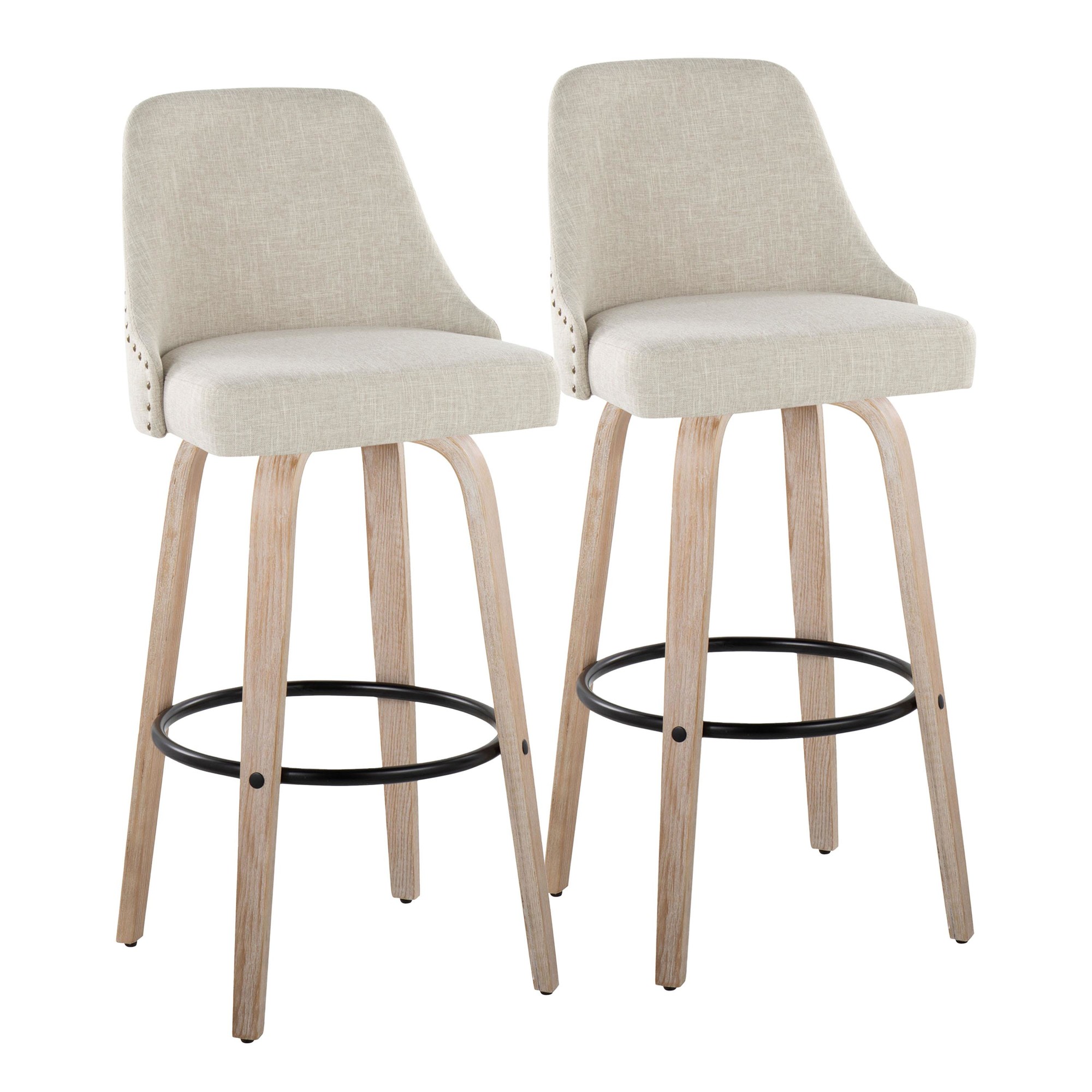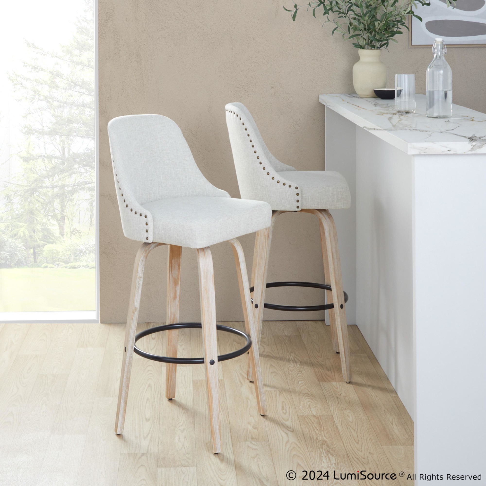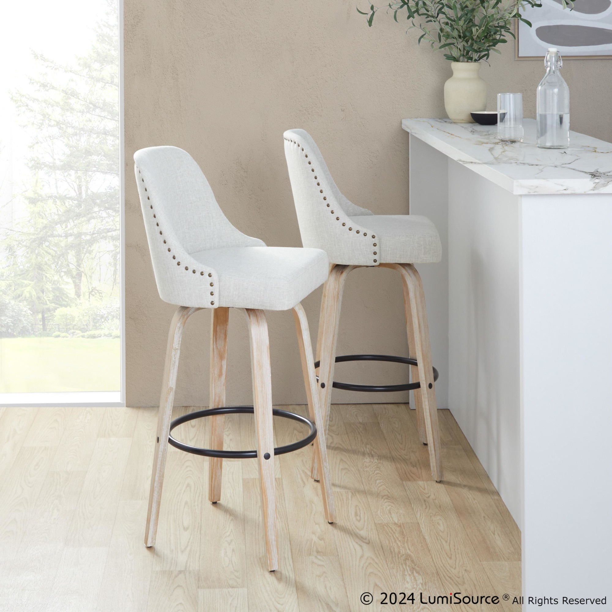 The Studded Marcel 30 Cream Swivel Barstools combine modern style with timeless charm, making them a stunning addition to any home bar or kitchen. Each stool features a plush, upholstered seat and a backrest accented with decorative studs, adding a touch of elegance to your space.