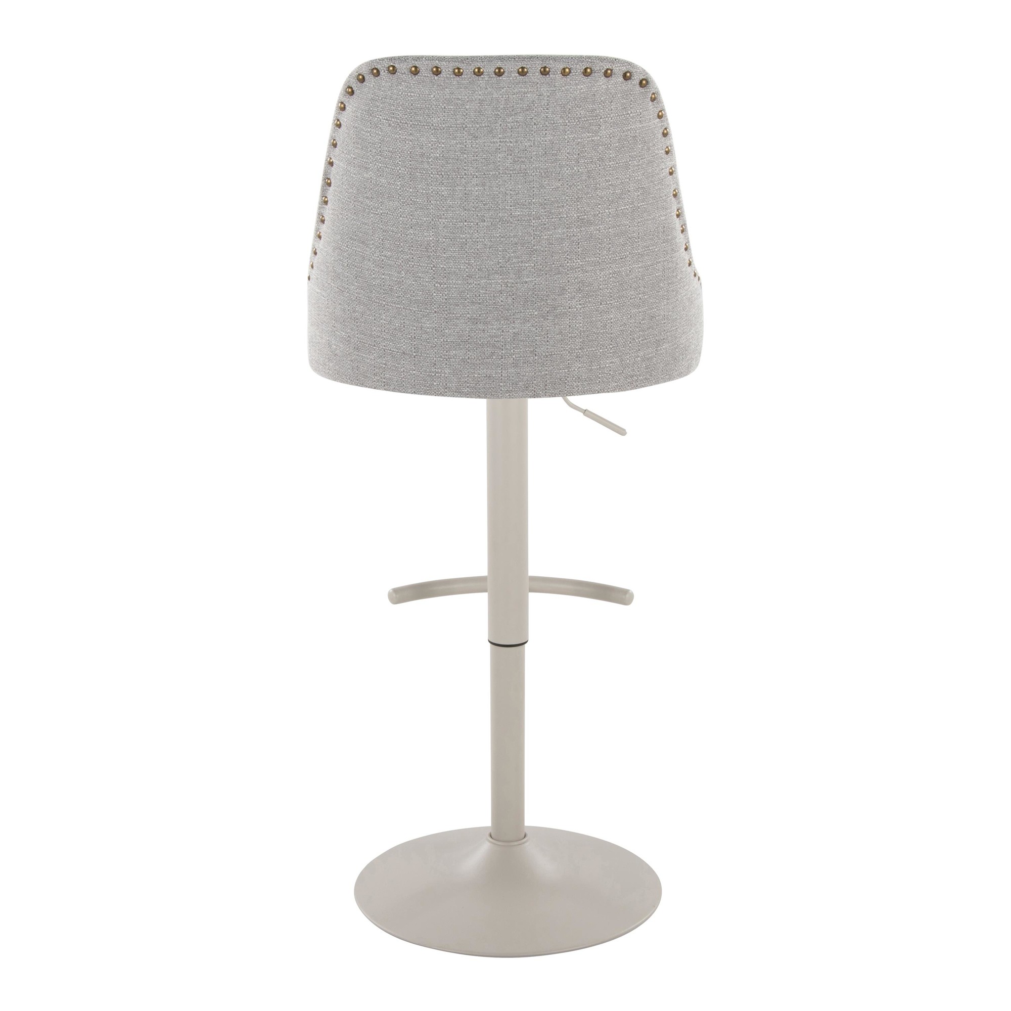 The Studded Marcel Light Grey Fabric Contemporary Swivel Barstool is a stunning addition to any space, blending modern style with timeless charm. This barstool features a plush, upholstered seat and a backrest adorned with decorative studs, adding a touch of elegance to your home bar or kitchen.