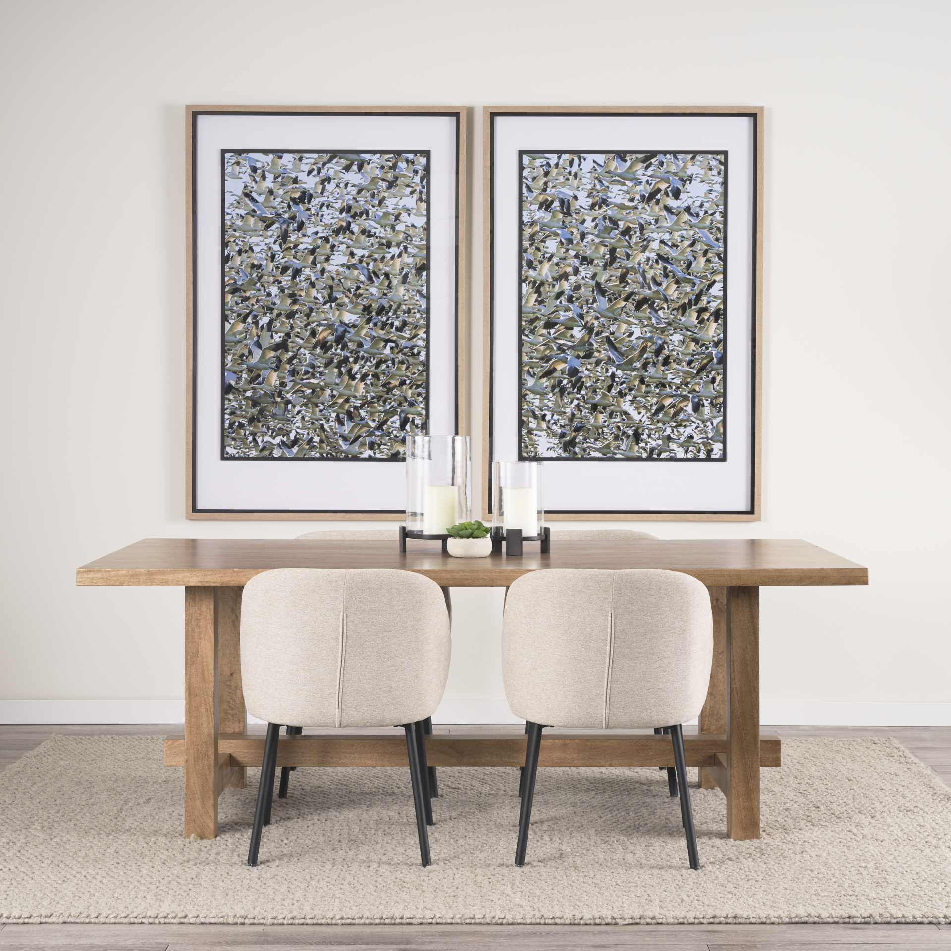 The Suke Dining Table is a substantial trestle-style rectangular dining table, perfect for enhancing your dining space. Crafted from solid mango wood with a natural finish, its design seamlessly integrates into various decor styles. The smooth texture accentuates the mesmerizing intricacies and grain of the mango wood, making its innate beauty the focal point.