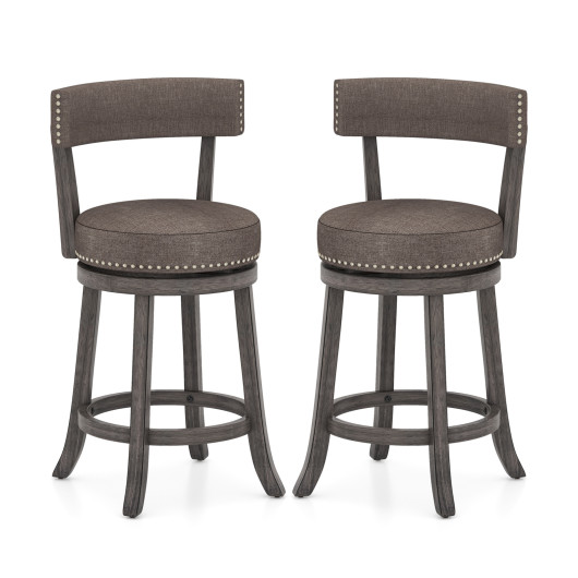 Enhance your living space with these stylish and functional swivel counter height chairs. Featuring a sturdy wood frame and a plush upholstered seat, these chairs are designed for comfort, durability, and elegance. The 360° swivel functionality allows for easy movement, making them ideal for social gatherings or casual dining. With their curved backrests and integrated footrests, these chairs provide exceptional support and relaxation, elevating the ambiance of your kitchen, bar, or dining area.