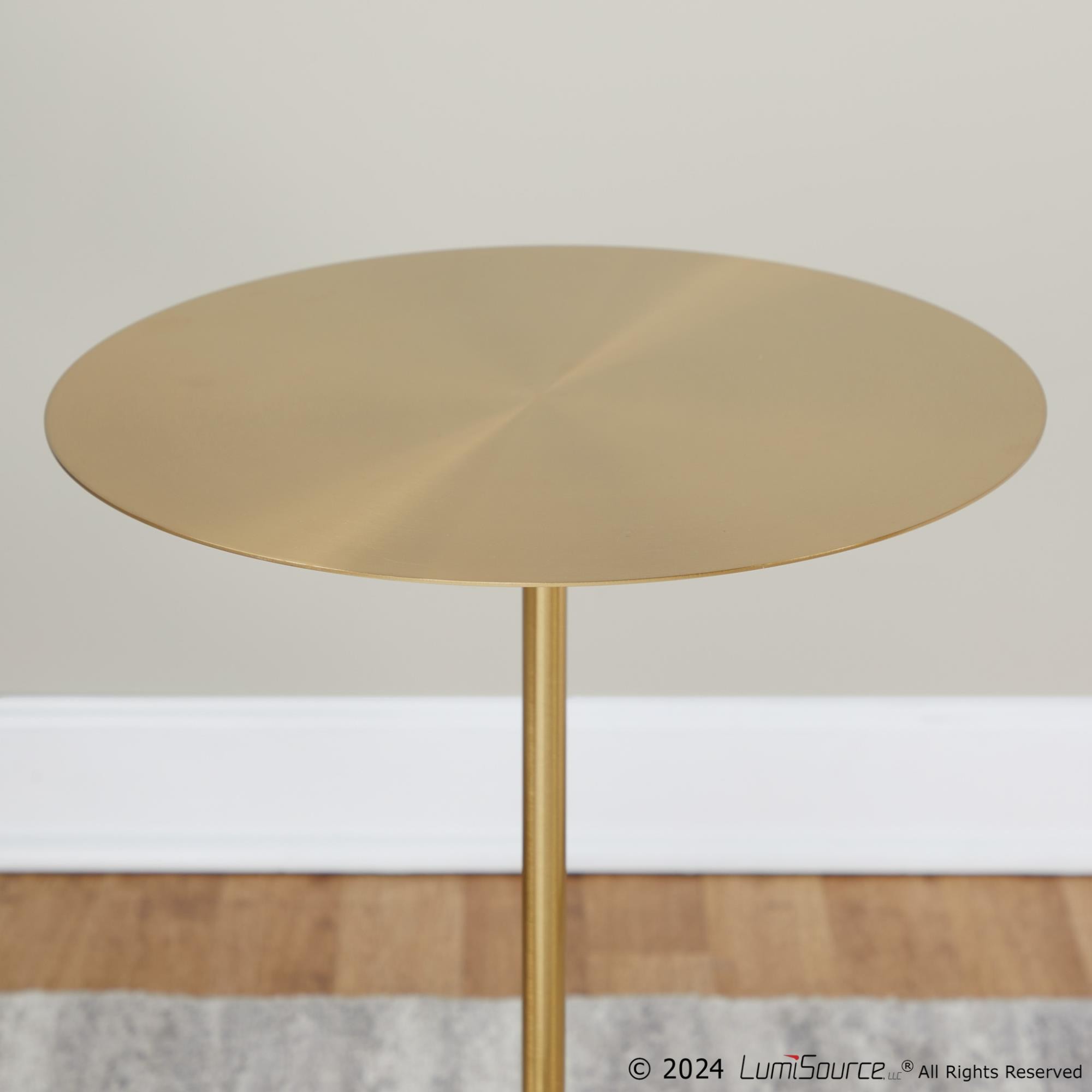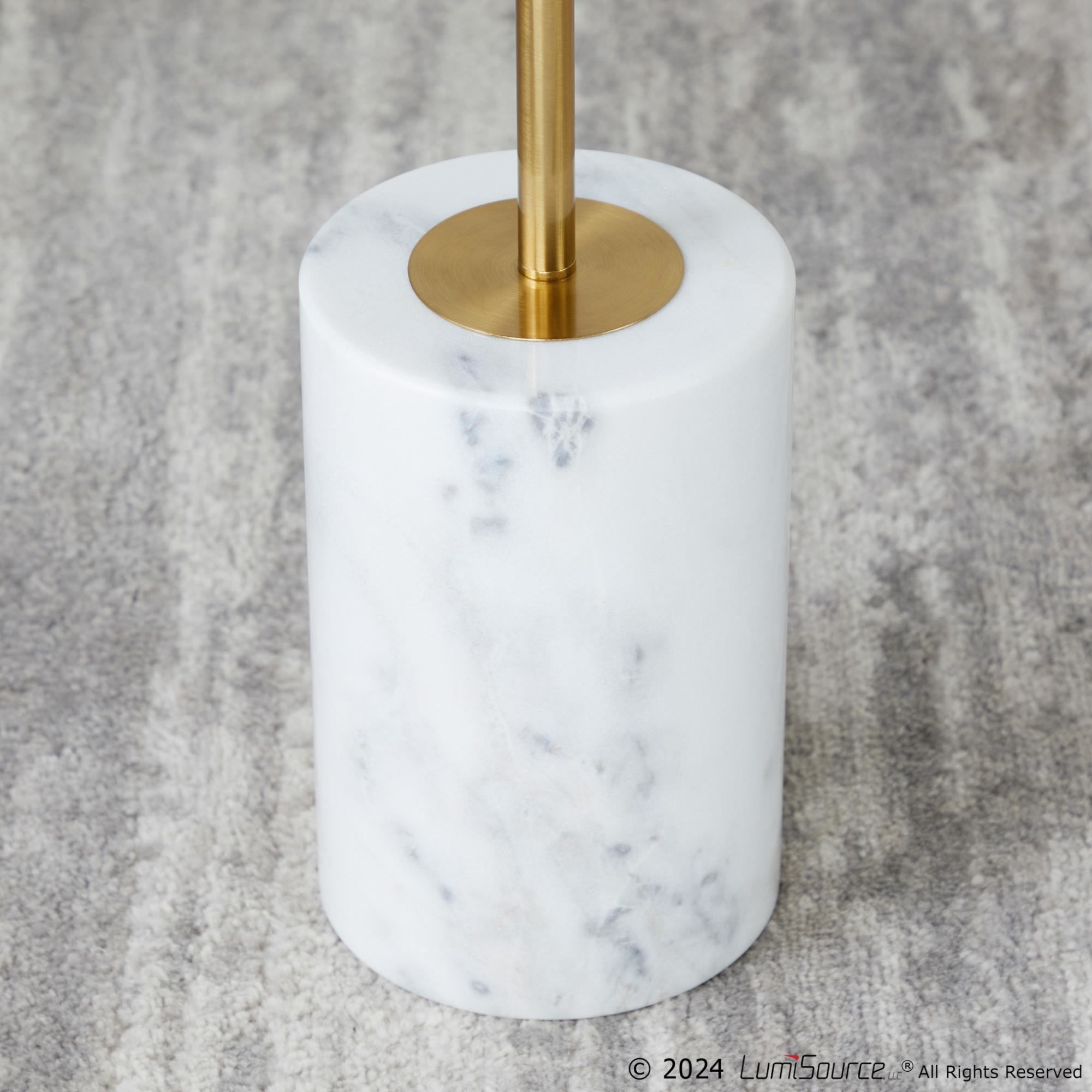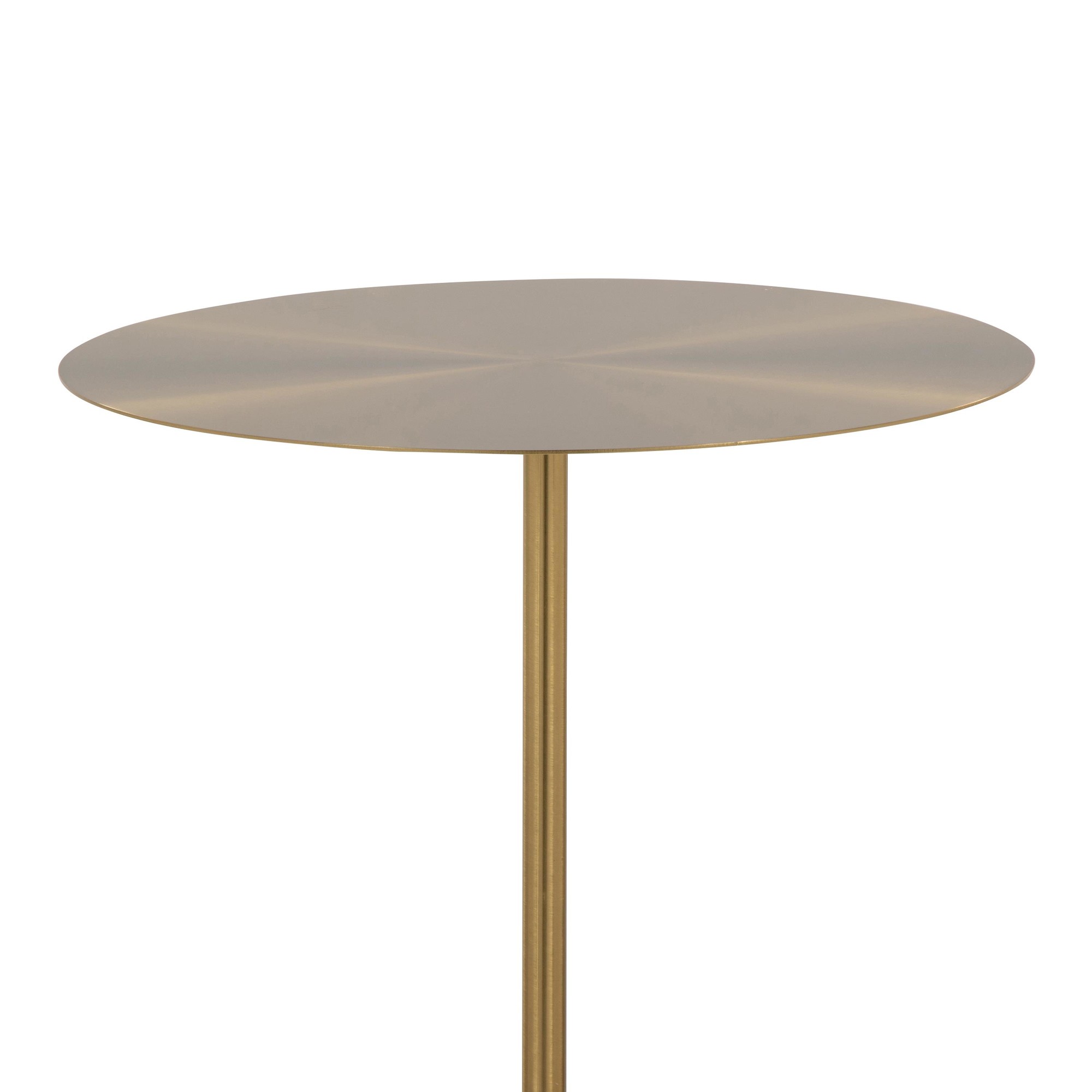 Featuring a gold metal top and a white marble base, this side table complements sofas, accent chairs, and bedrooms. The sleek gold finish and marble base create a sophisticated look.