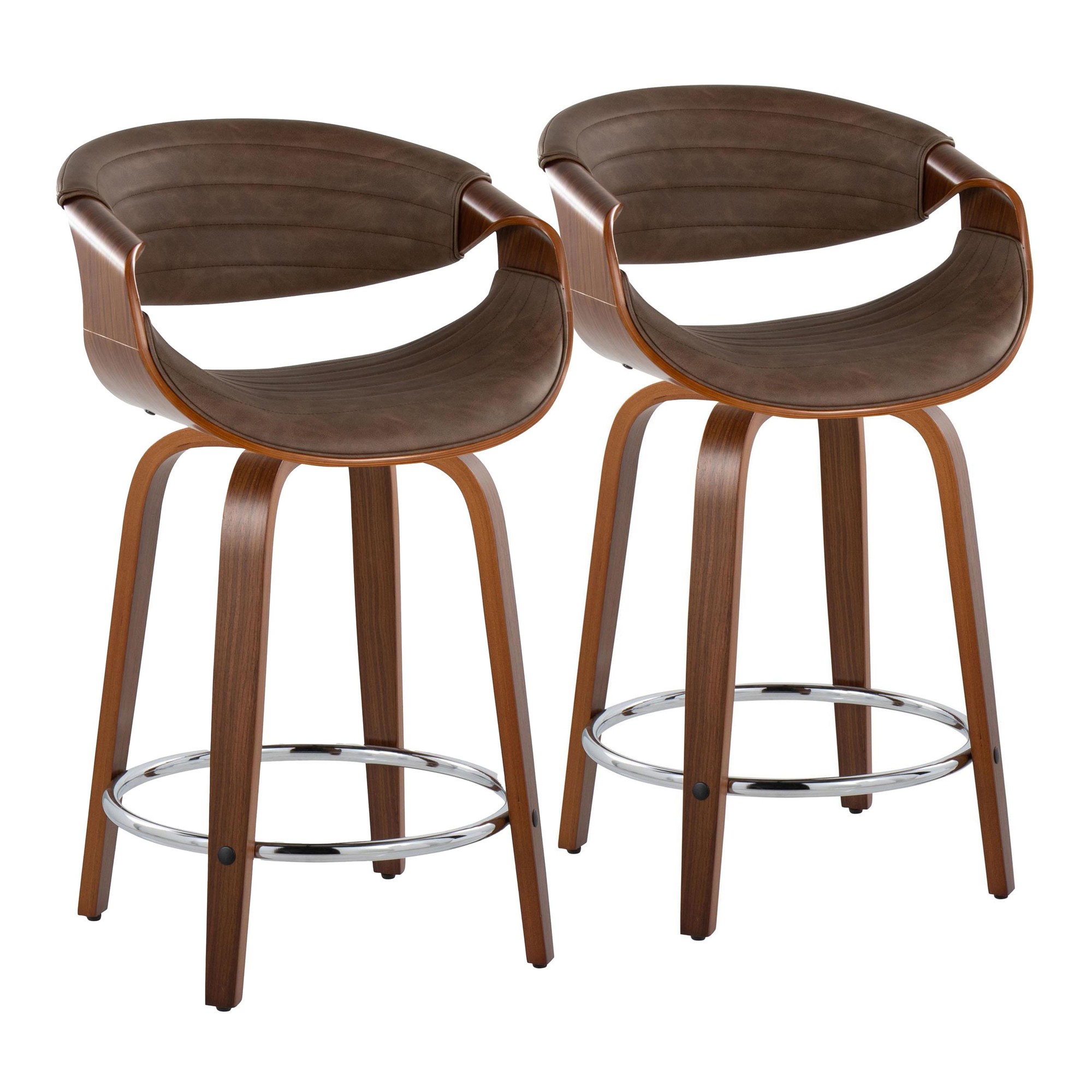 Symphony 24 Mid-Century Modern Swivel Counter Stools, Walnut (Set of 2)