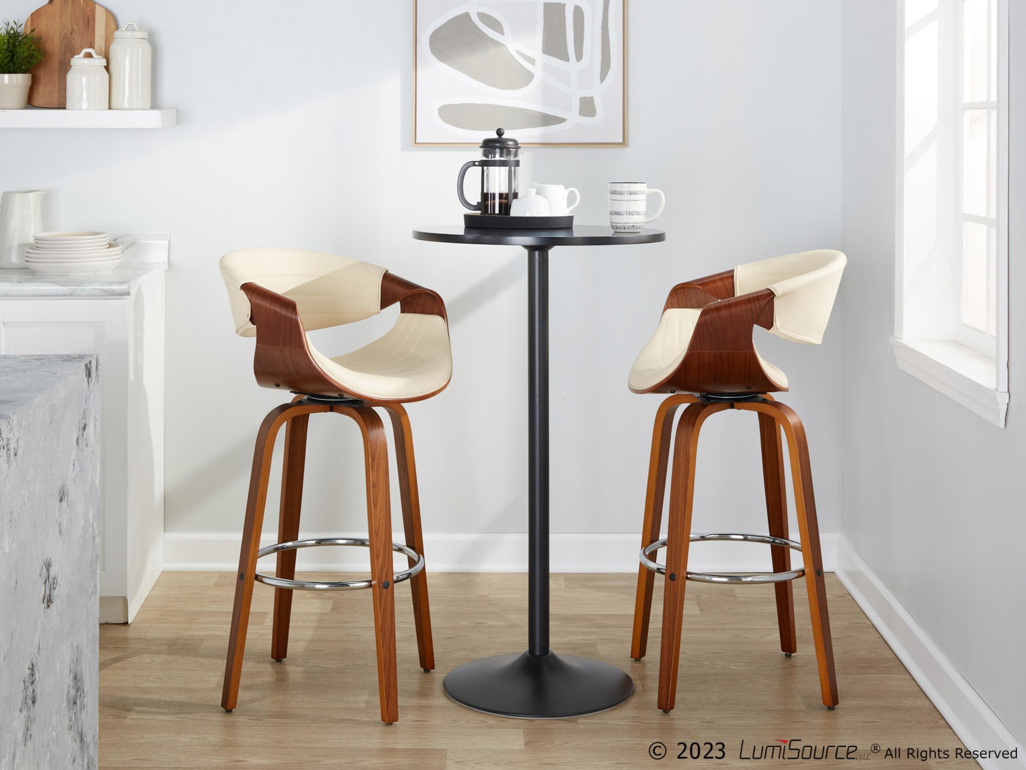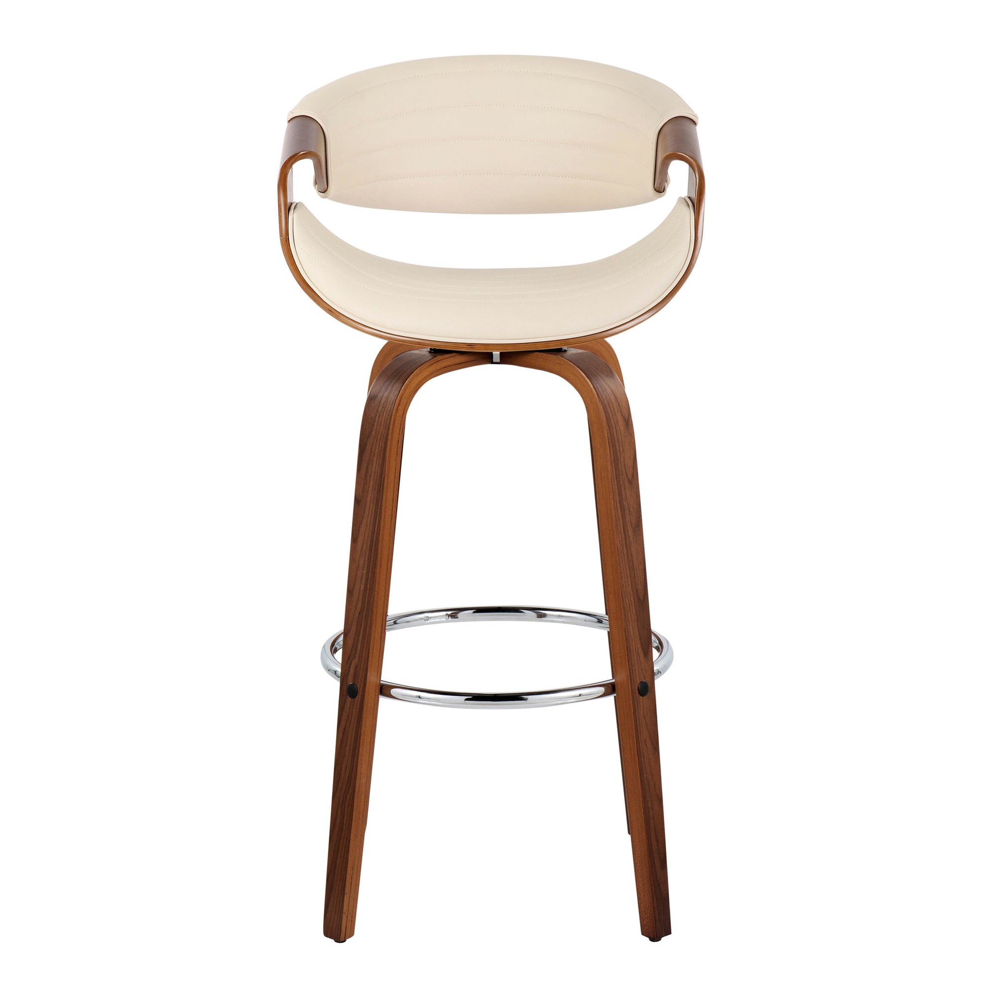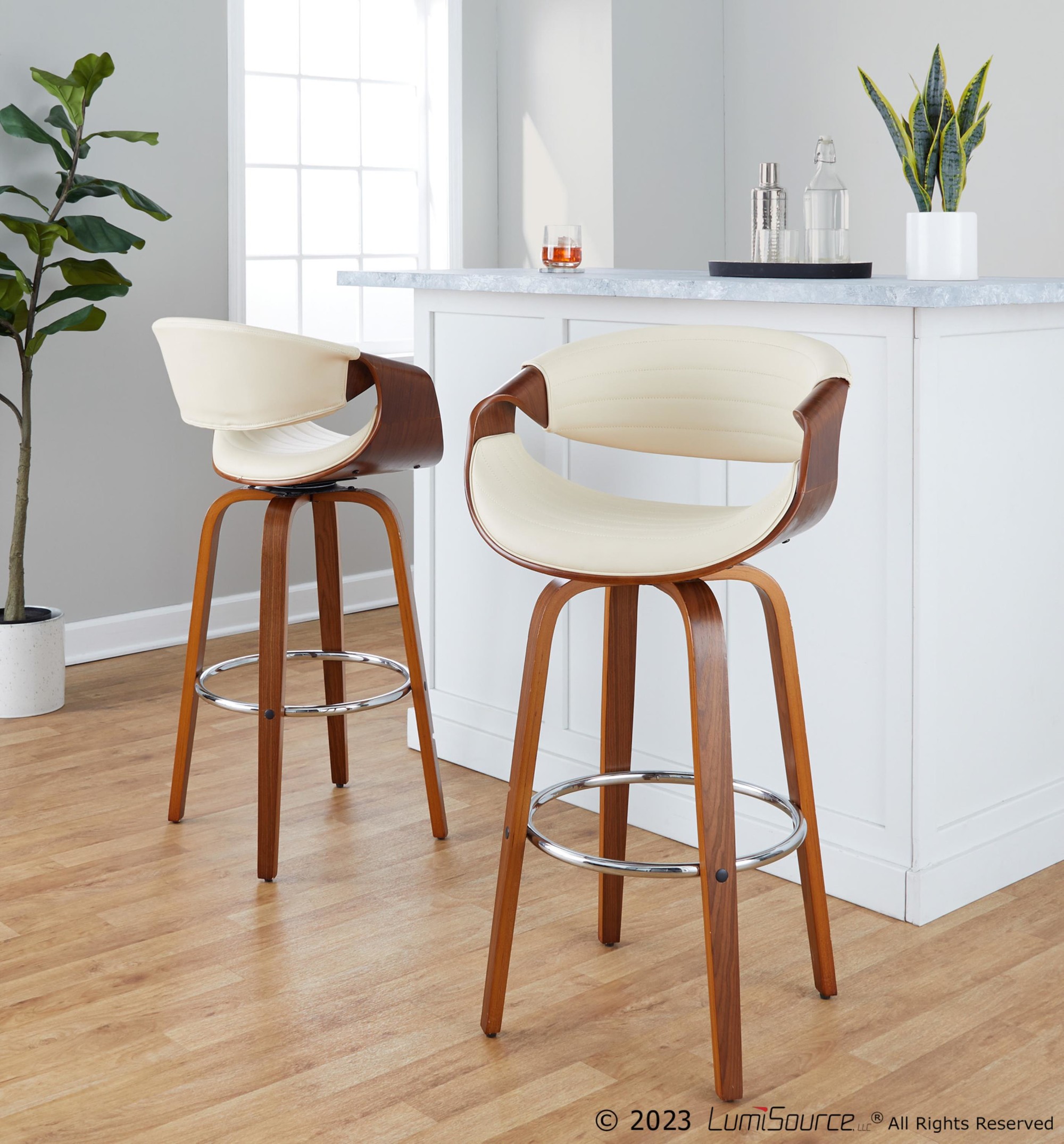 The Symphony 30 Walnut Cream Swivel Mid-Century Barstool offers a unique design that enhances any space. Its vertical tufting and swivel functionality combine practicality with style, providing both comfort and visual appeal.
