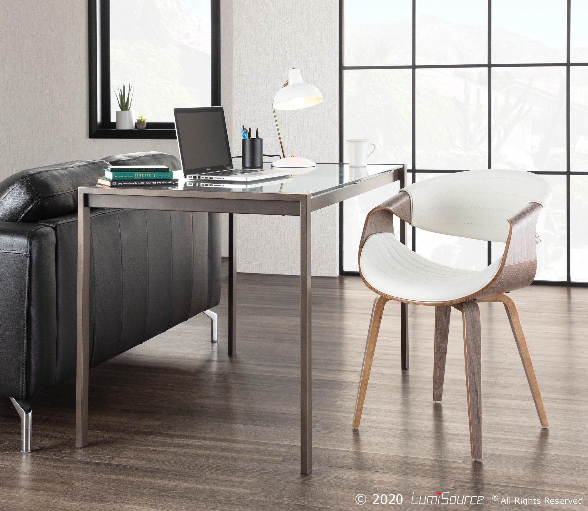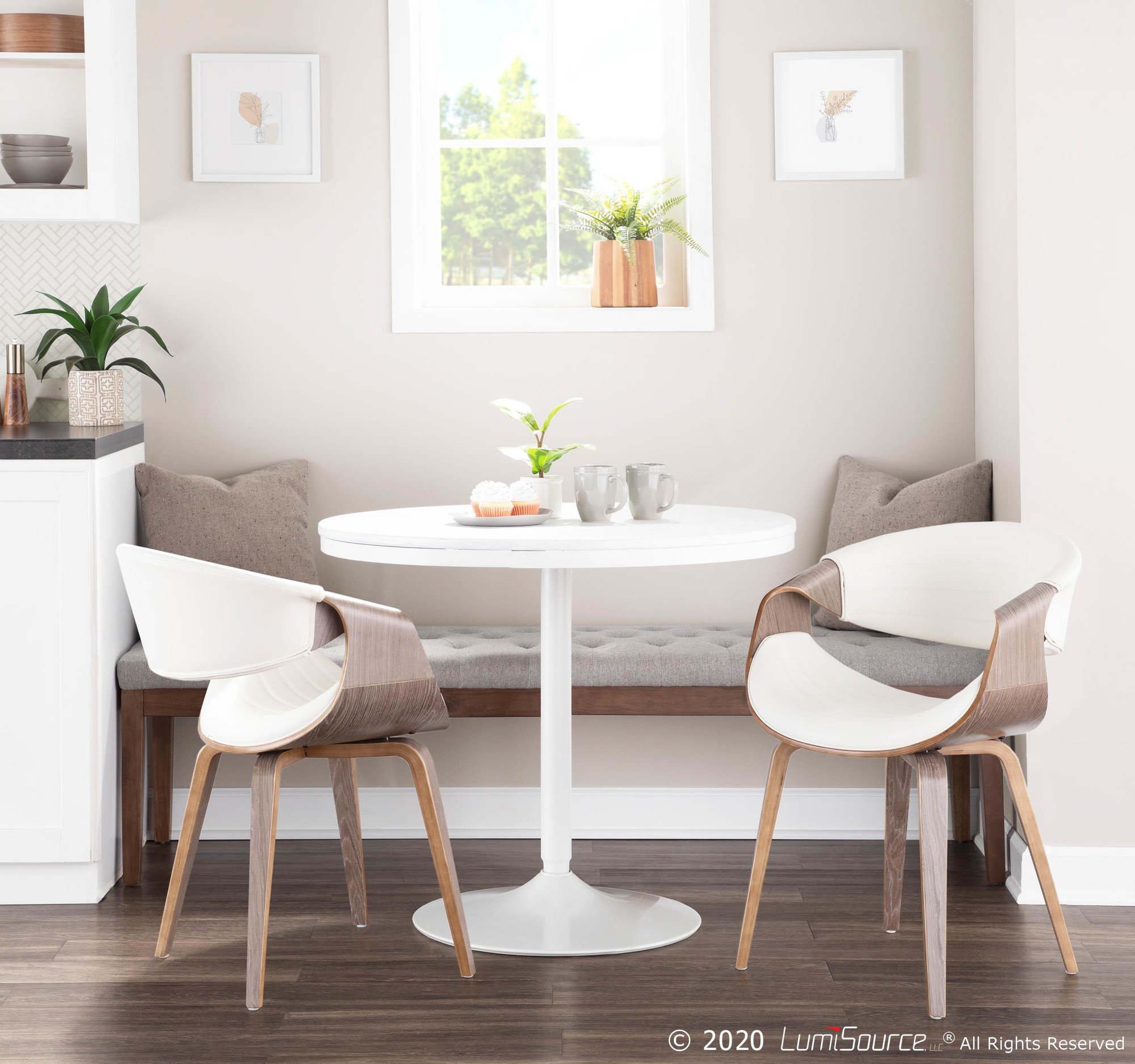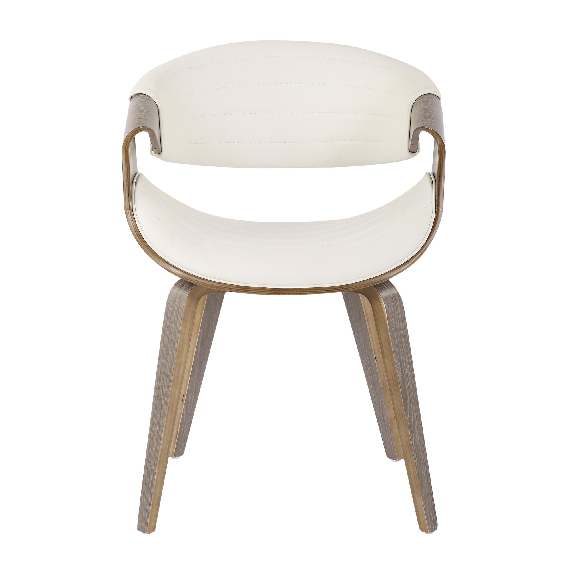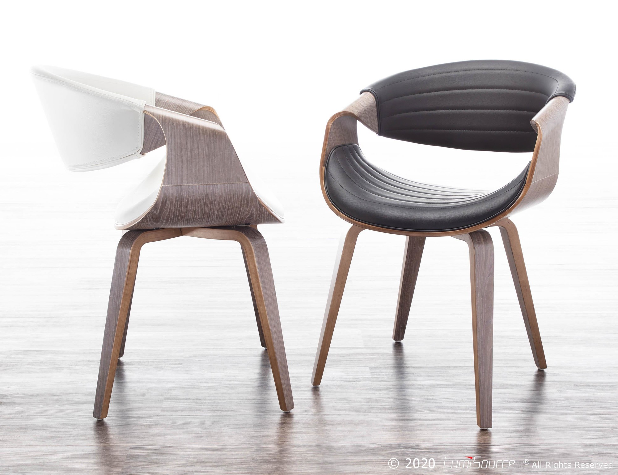 Add a curvaceous dose of Mid-Century style to your space with the Symphony Accent Chair! Its unique design and silhouette make it a fantastic addition to any table or as a stylish accent piece. Upholstered in sleek faux leather, this chair features vertical tufting and bent wood legs, creating a stunning visual appeal.