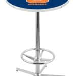 Enhance your bar, game room, or man cave with this high-quality 42-inch pub table. Designed for durability and style, this pub table combines a sleek chrome finish with a vibrant, full-color laminate top that is scratch-resistant and easy to clean. The sturdy, commercial-grade base features a triple chrome-plated finish and adjustable floor glides, ensuring stability even on uneven surfaces. Perfect for entertaining guests or showcasing your loyalty, this table offers an exceptional blend of functionality and design.