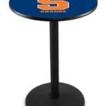 Elevate your bar, game room, or man cave with this premium 42-inch pub table featuring a 36-inch diameter top, round base, and sleek black wrinkle finish. Designed for durability and style, this table combines a vibrant, full-color sublimated laminate top with a sturdy, powder-coated base, ensuring longevity and stability. The table’s adjustable feet accommodate any floor surface, making it a versatile and practical addition to your space. Easy to clean and assemble, this pub table is perfect for creating a polished and functional entertainment area.