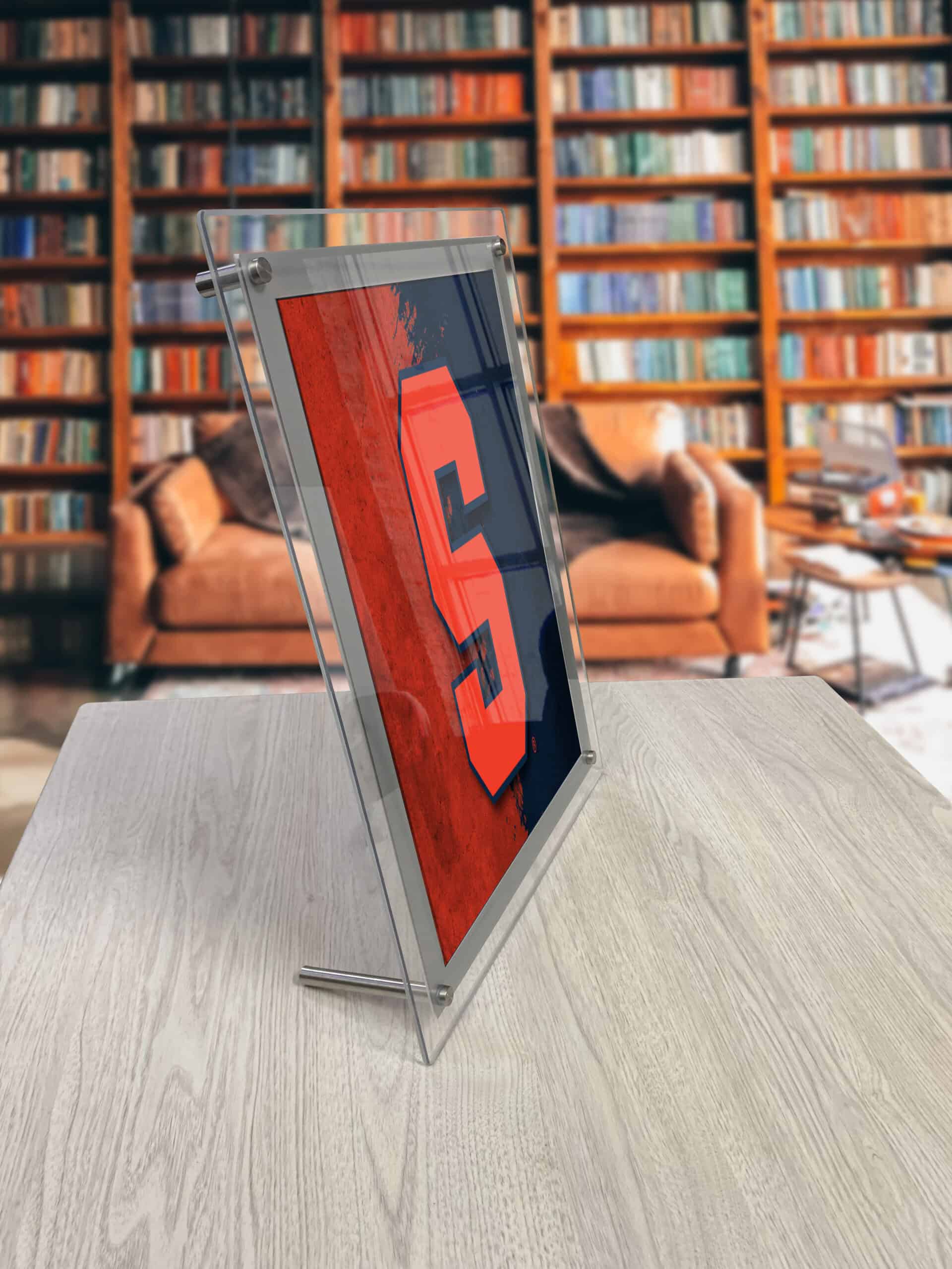 - Mounting: Includes hardware for wall mounting (1″ stand-offs) or desktop display (3 3/4″ foot).
