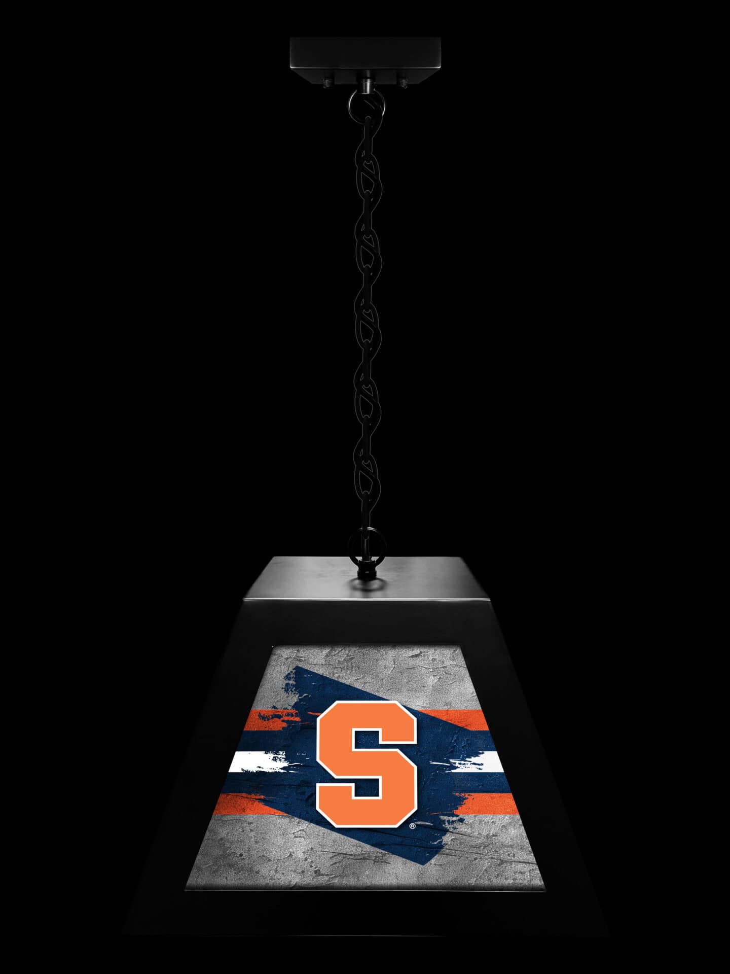 Add some team spirit to your game room with the Syracuse University Pendant Box Light! This stylish light fixture is perfect for illuminating your billiard table, game table, bar, or pub table. It features a durable metal frame, vibrant graphics, and easy installation, making it a must-have for any Syracuse fan.