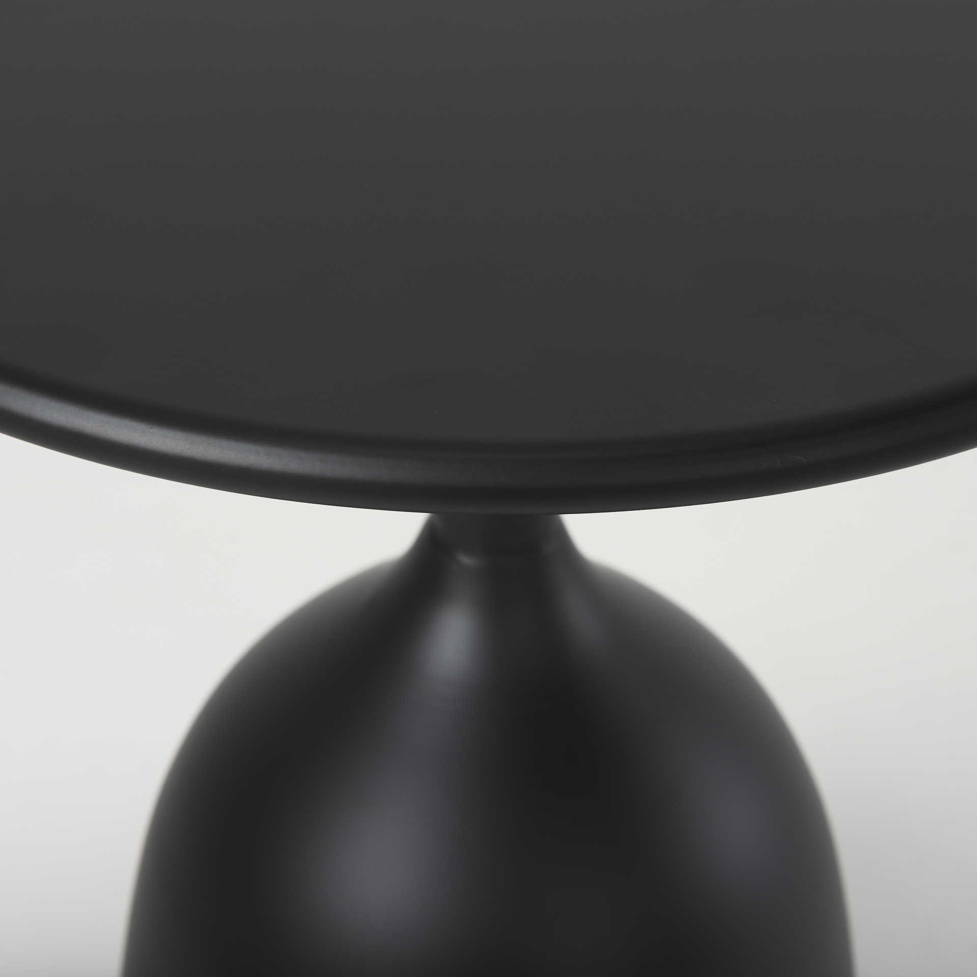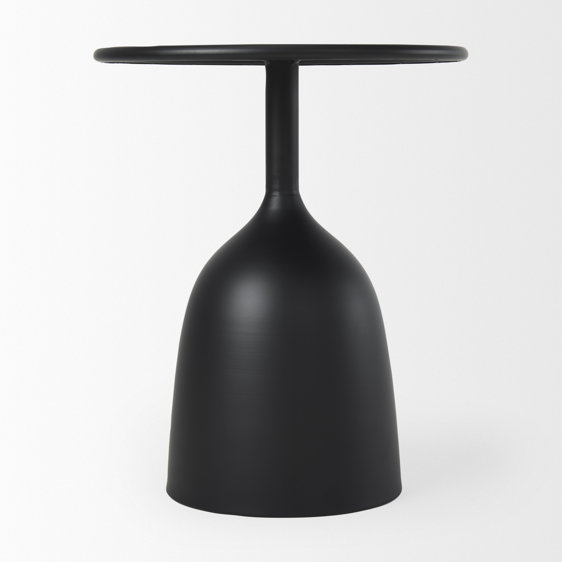 Add a touch of modern magic to your space with the Talulla Accent Table! This sleek, matte black table is crafted from sturdy iron, featuring seamlessly clean lines and a fluid design. Its round top rests elegantly on a chalice-like base, making it a perfect addition to any contemporary home or office.